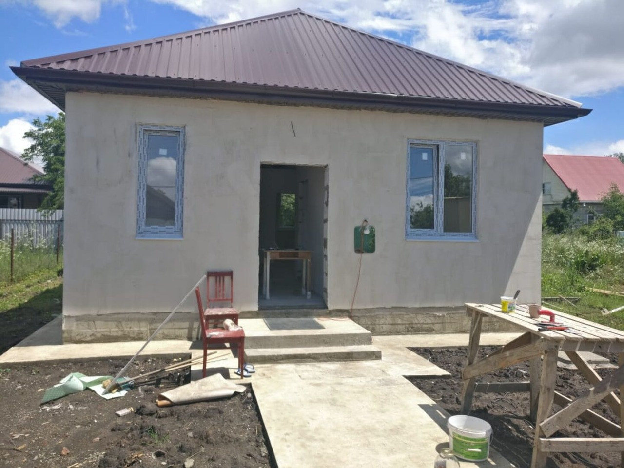 Продам дом: 3 комнаты, кухня-гостиная, с\у, котельная, прихожая. Материал- пеноблок + штукатурка "Короед".