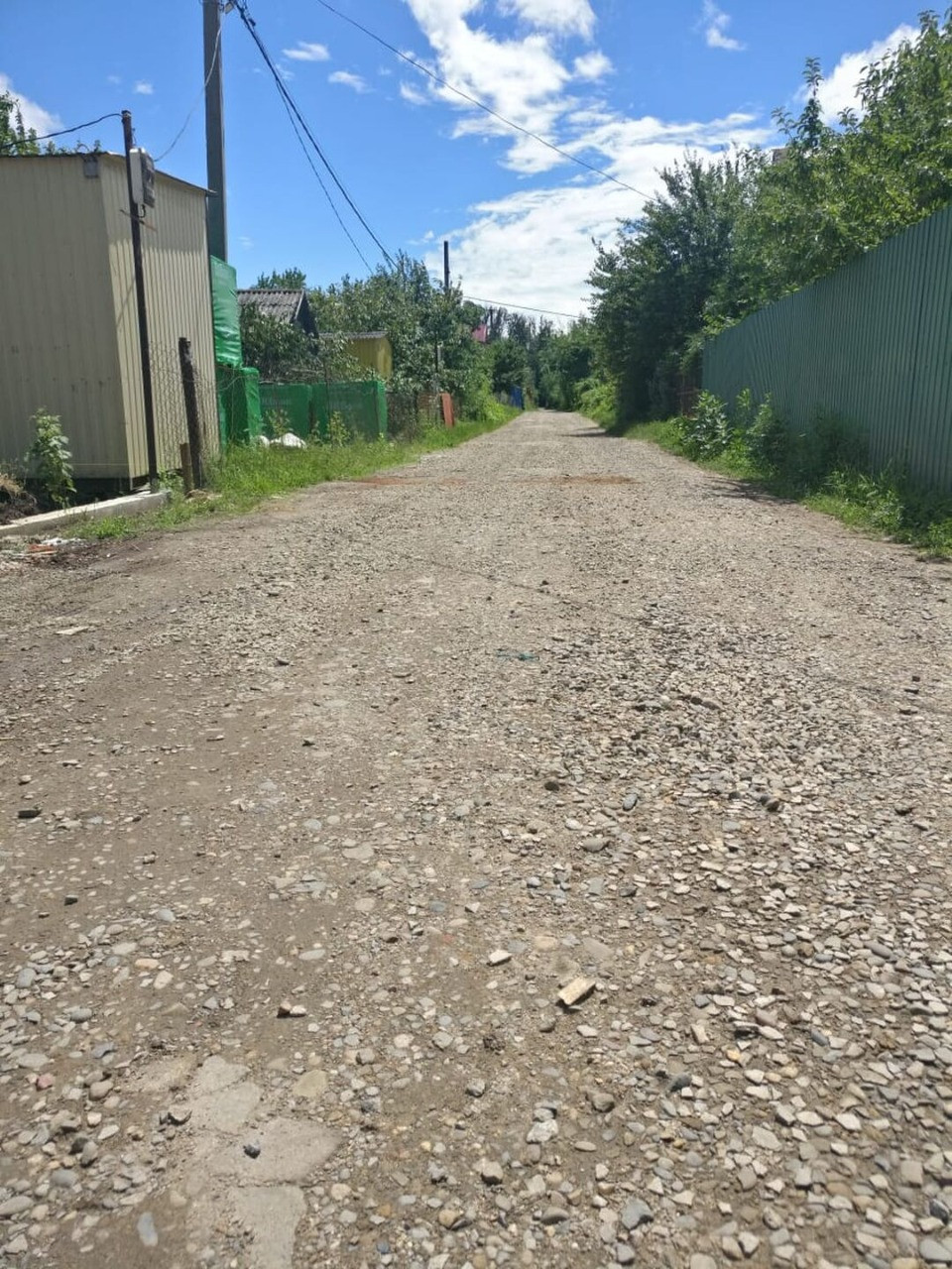 Крыша, ограждение - профлист. Ворота - откатные. Кабельный интернет.