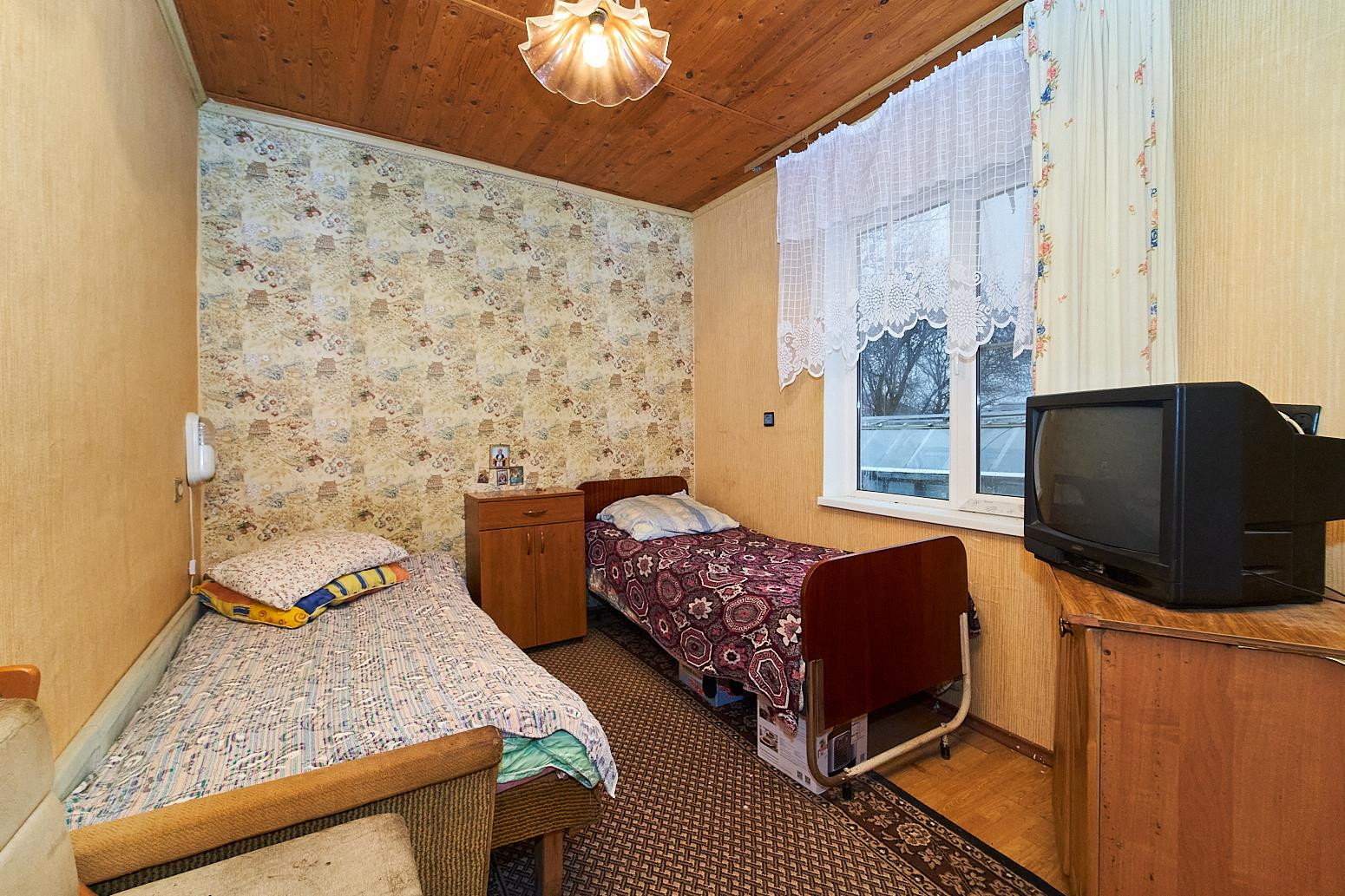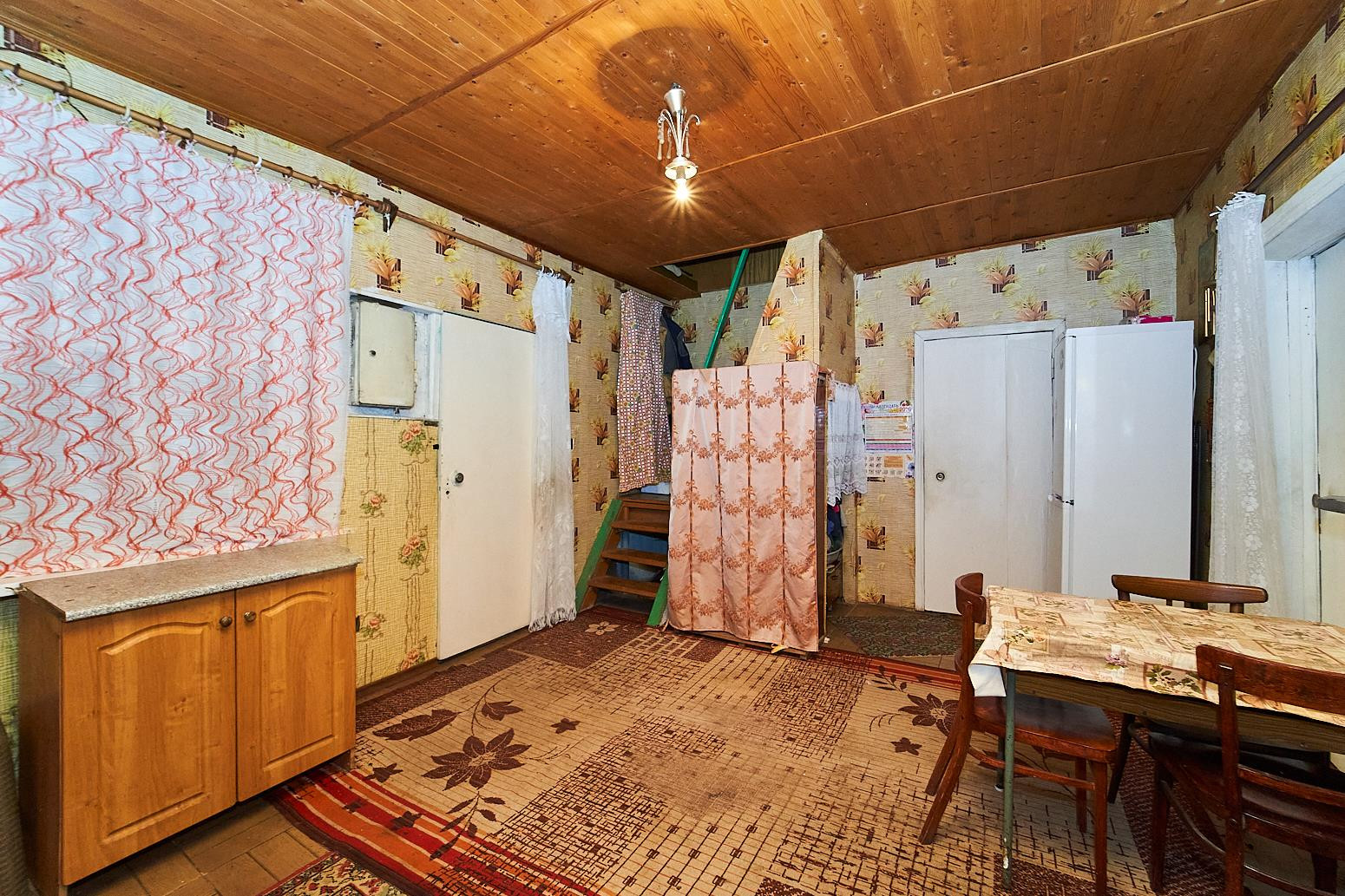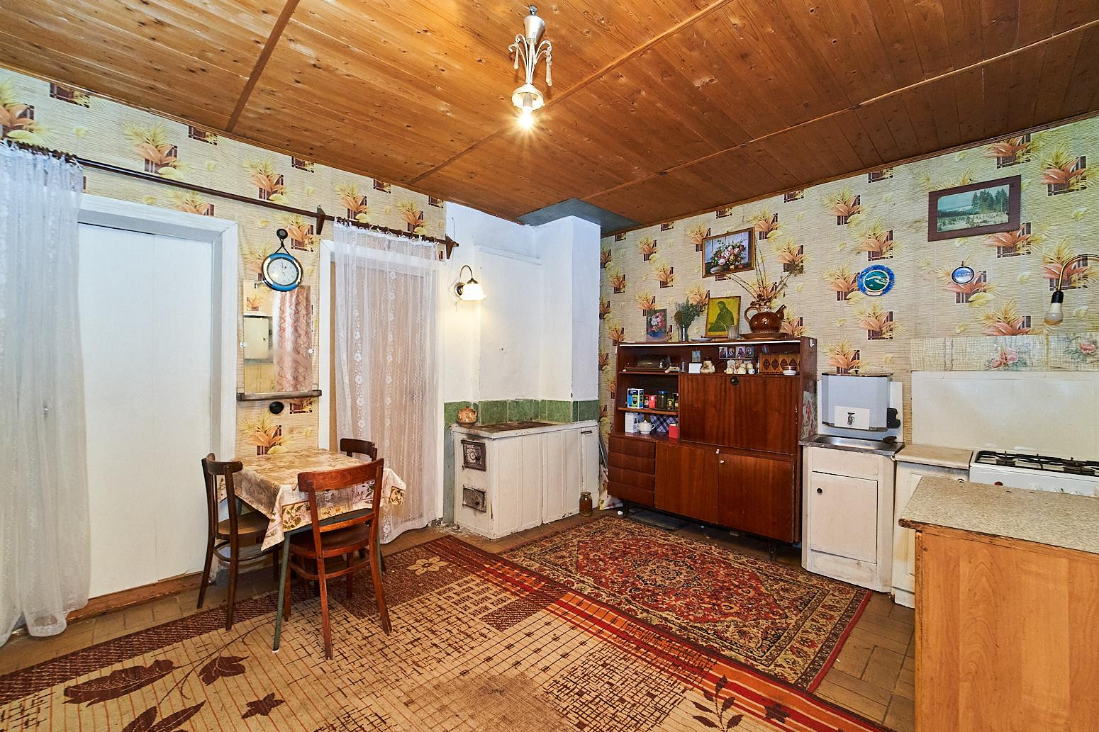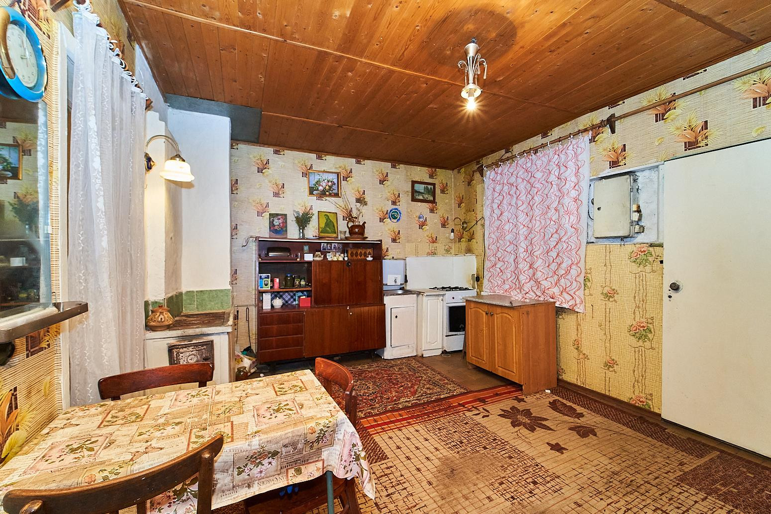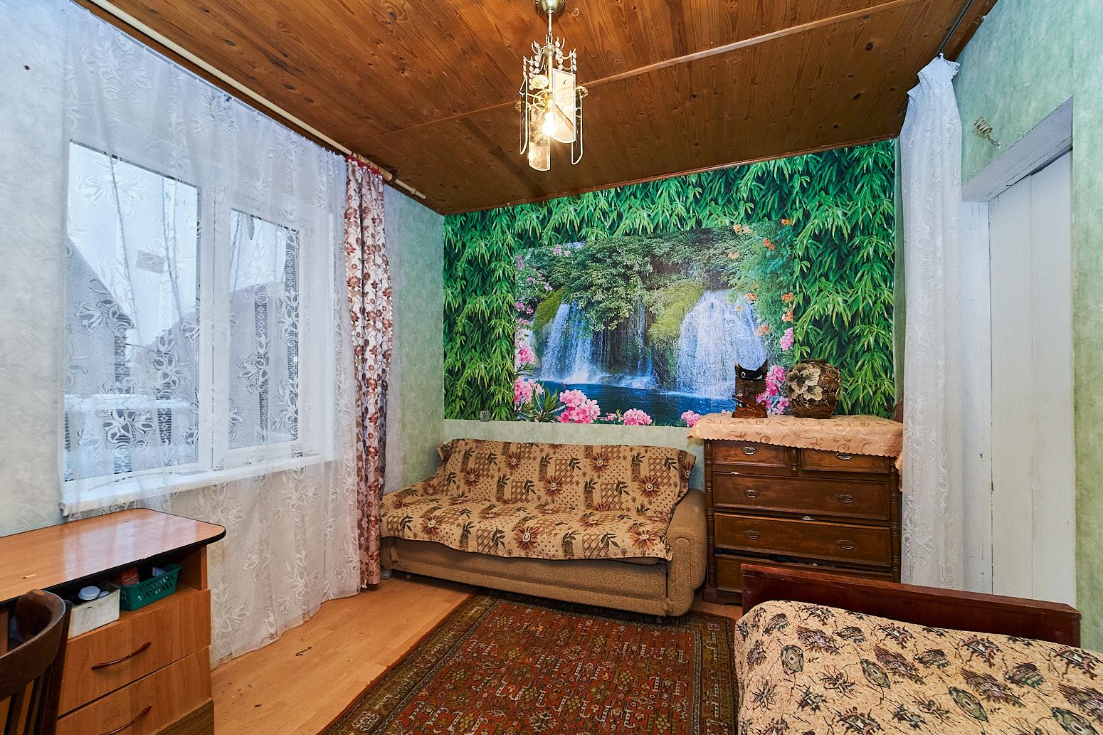 В доме большая кухня-гостиная, три жилые комнаты, очень просторная комната в мансардном этаже.