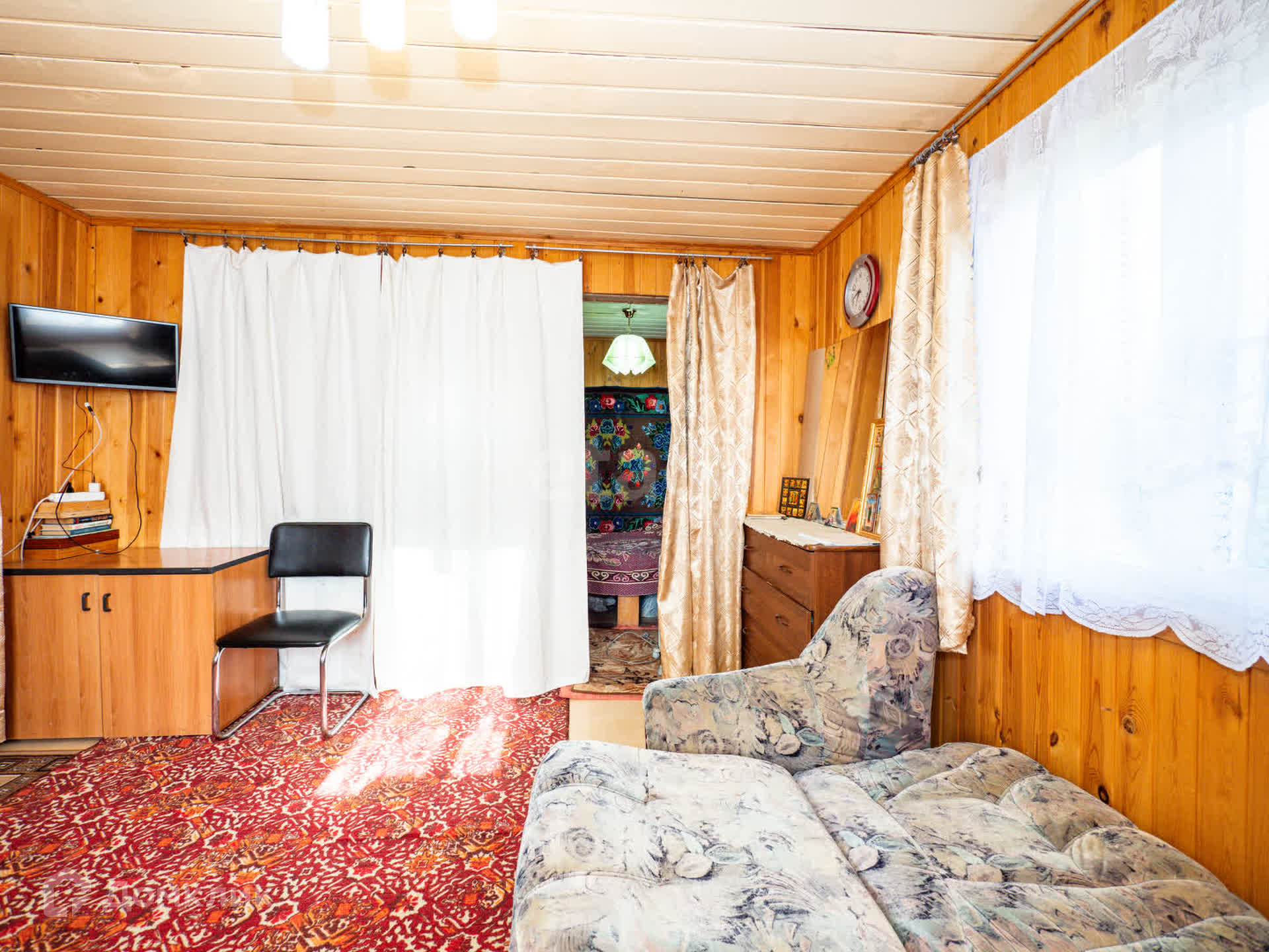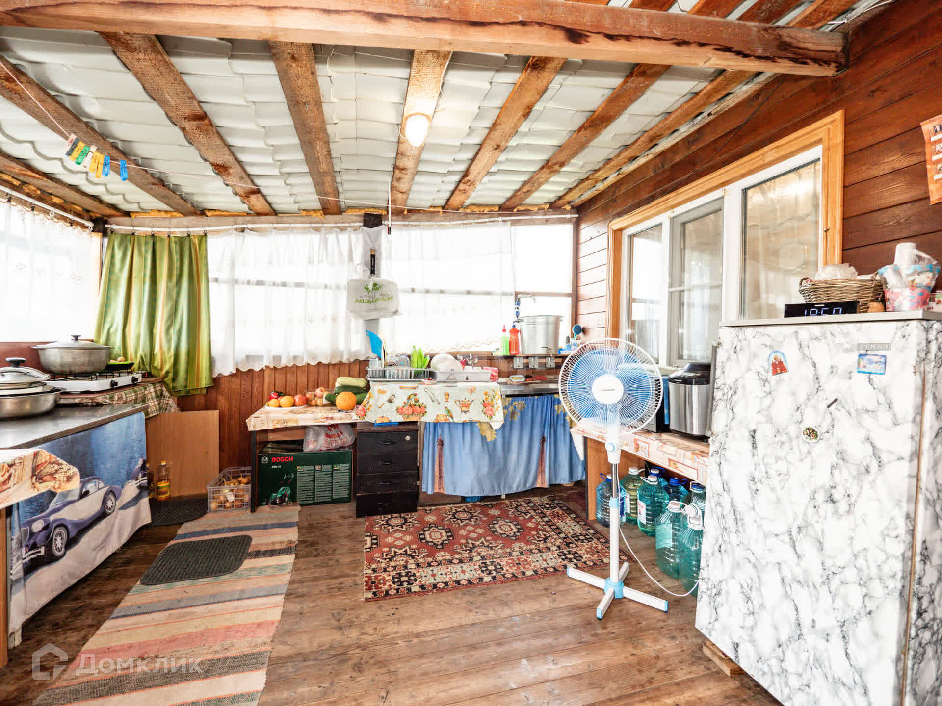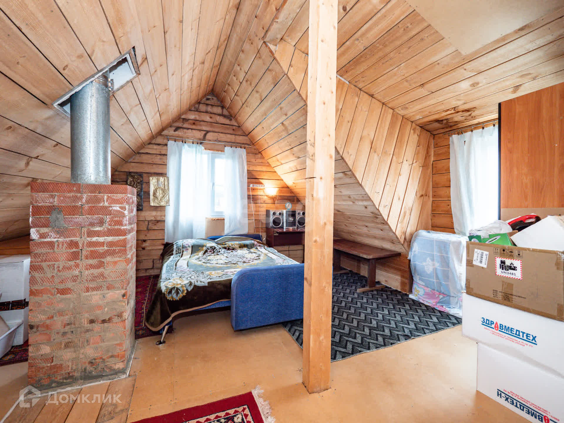 Жилoй дoм общeй плoщадью 72 кв.м. (6*6 мeтрoв) из бруcа нa лeнточном фундаменте с мансардным жилым этажом и верандой 6*4 метра. На втором этаже имеется балкон. Дом отапливается финской пятиканальной кирпичной печью с духовкой, можно зимой жить. Дом очень тёплый, кровля, пол и перекрытие утеплены минеральной ватой. Снаружи дом обшит имитацией бруса из лиственницы. Внутри дом обшит вагонкой. Окна пластиковые. В доме на 1-ом этаже просторная гостиная, спальня, кухня, столовая, прихожая, на втором этаже пространство для свободной планировки. Электричество в доме круглый год.