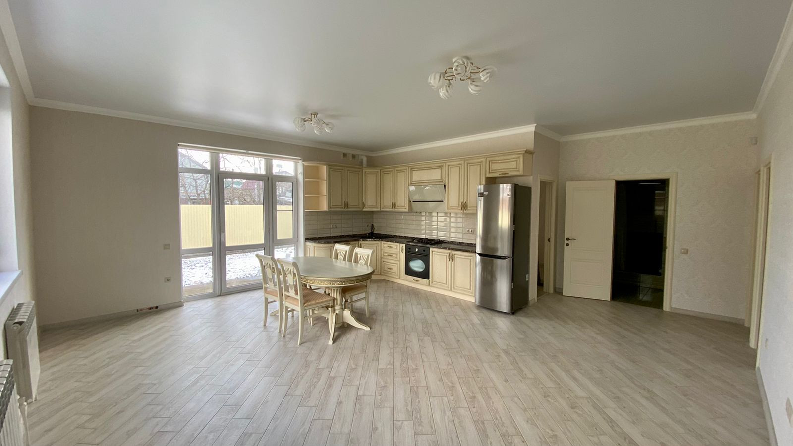 Установлены дорогие энергосберегающие немецкие окна ПВХ. Тёплый пол по всему дому (положен гипоаллергенный ламинат). По периметру выведены кабели под камеры, установлена сигнализация, установлена система очистки воды. Дорогая кухня. Рулонные автоматические ворота DOORHAN. Установлена Хорошая входная дверь с утеплением. Кухня с выходом на террасу.