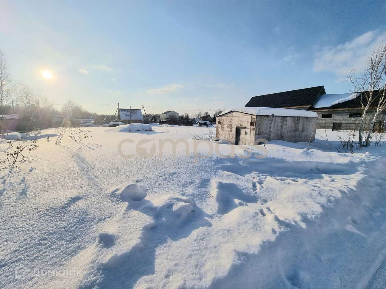 На участке сваи 6м на 6м 9 шт, планировали под баню. Также есть гараж железный 6м на 3м.