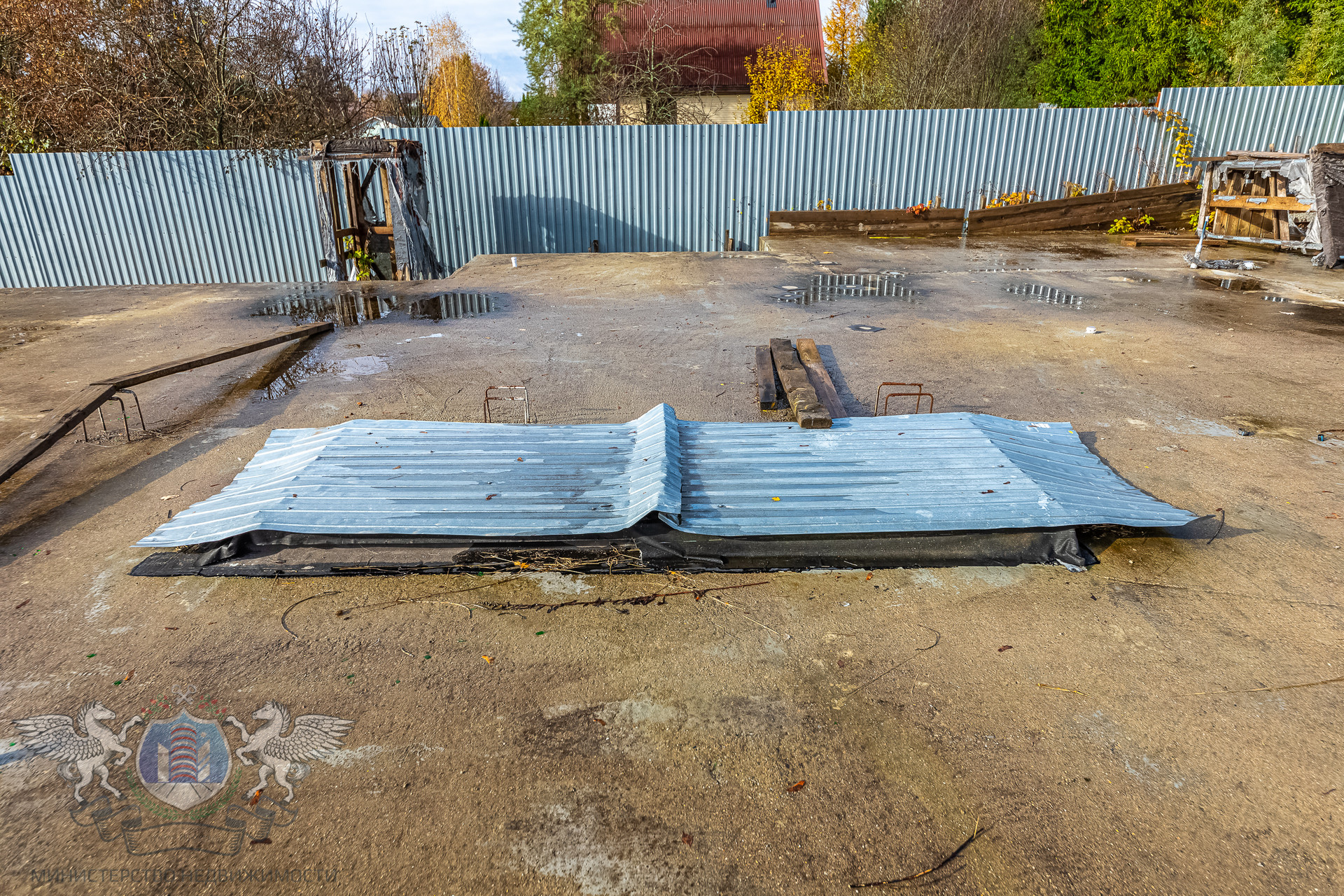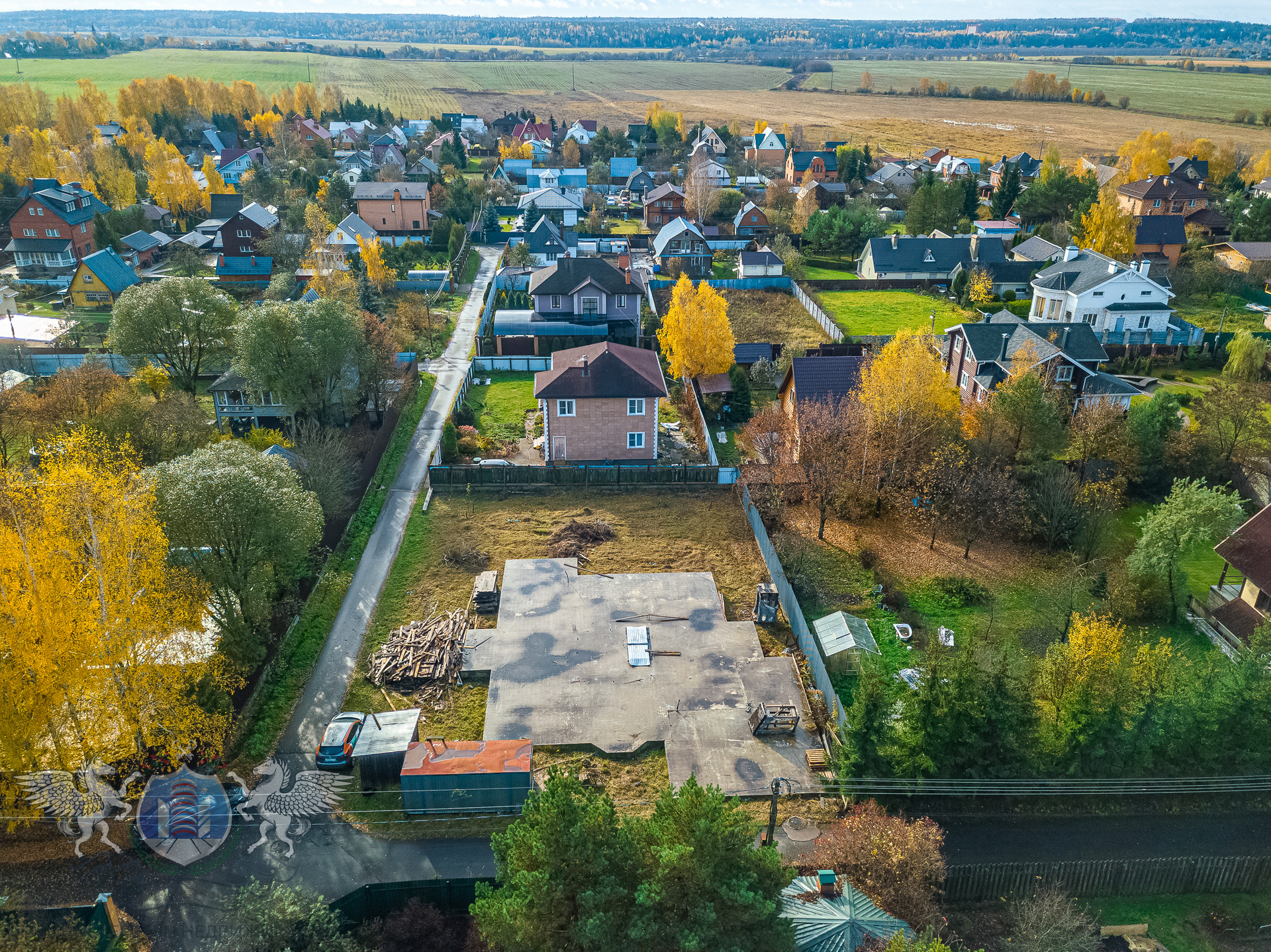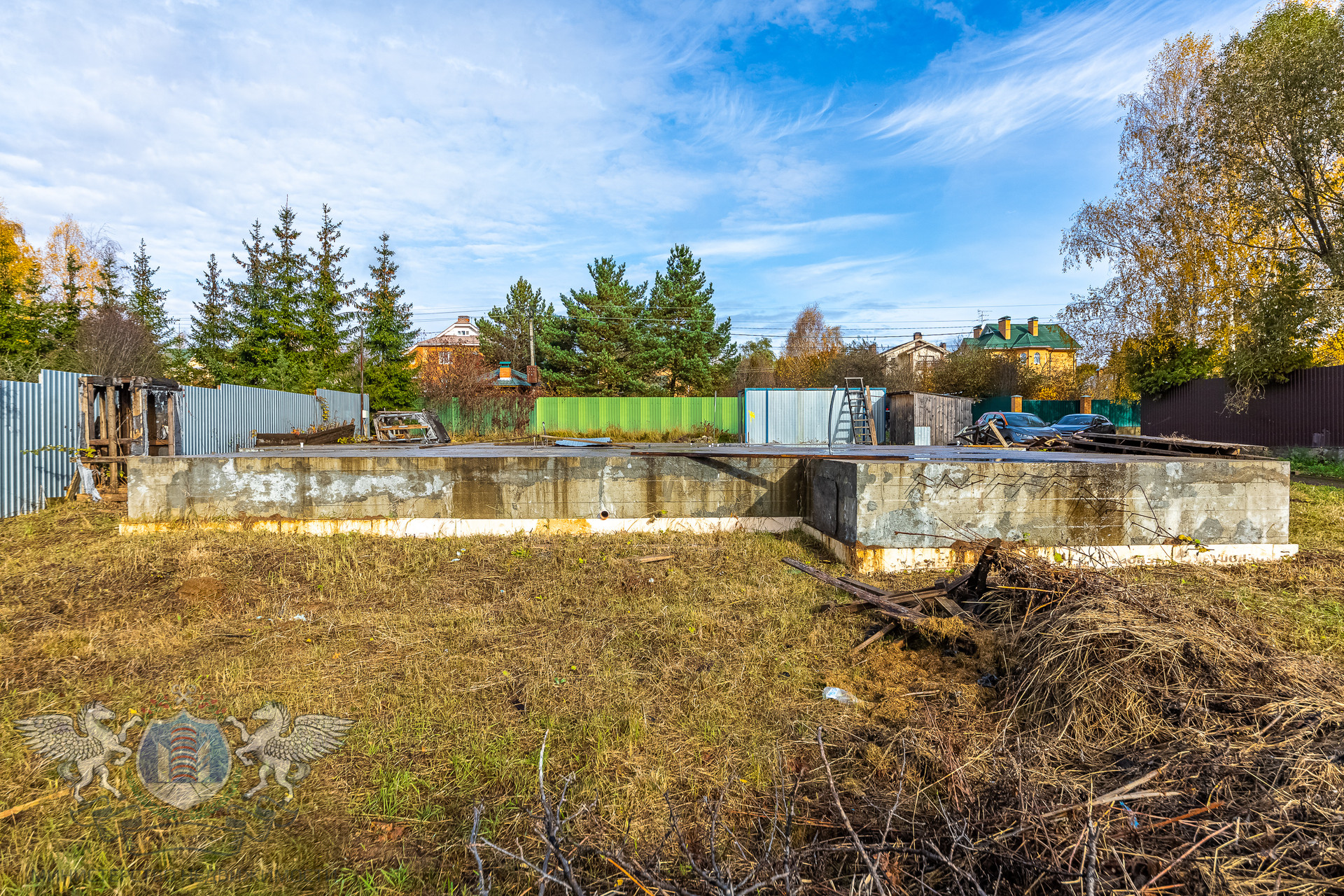- На участке возведен качественный, мощный монолитный фундамент площадью 16х18 м., способный выдержать 6-этажный дом, имеется погреб.