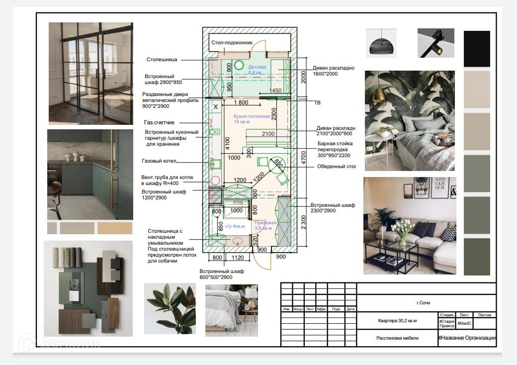 Жилая площадь 30.9 м2