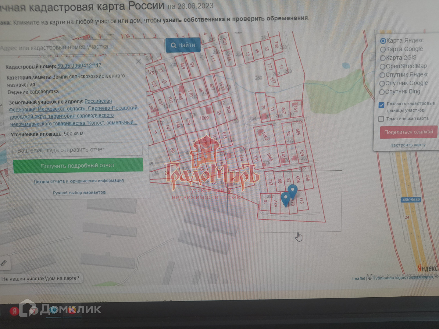 Кадастровые номера участков : 50:05:0060412:117, 50:05:0020101:270