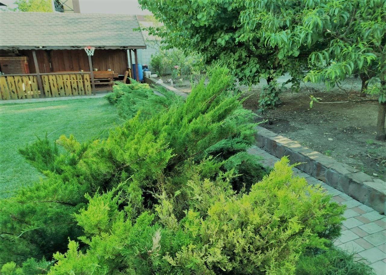 ✅ Ухоженная территория – прекрасно обустроенный участок, покрытый качественной плиткой, оборудованный большим тенистым навесом, декоративными насаждениями и плодовыми деревьями для свежего воздуха и приятного времяпровождения на свежем воздухе. Беседка с зоной барбекю. Фруктовые деревья и кустарники (перечислять долго)). Автоматические ворота, забор со всех сторон.