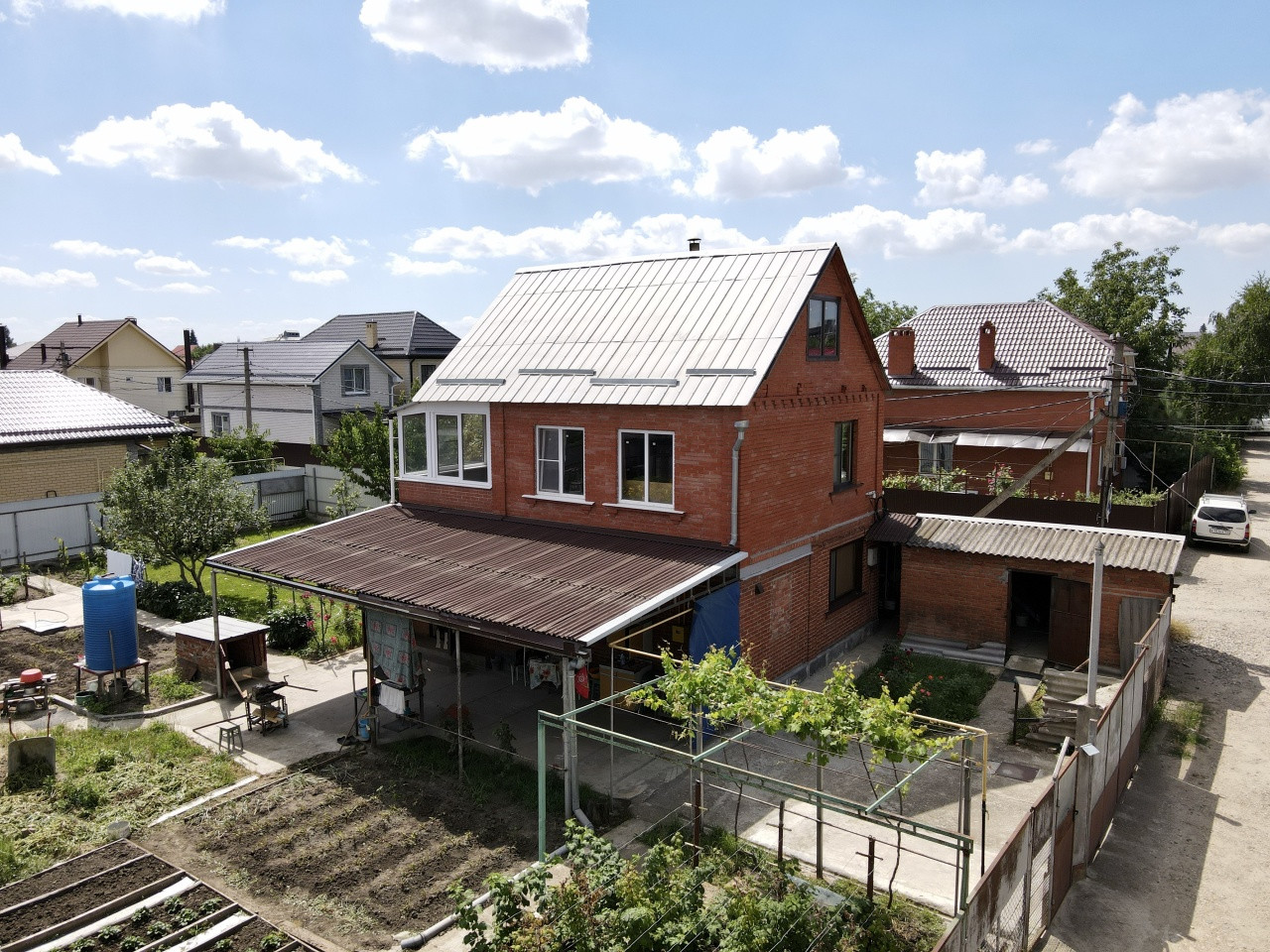 ВНИМАНИЕ! В продаже ДОМ-ДАЧА, в уютном, тихом месте С/Т "Краснодаргорстрой". Дом общей площадью 85.5 м/2 в два этажа, расположен на, почти квадратном угловом участке, площадью 609м/2. В дом заведен сетевой ГАЗ. Вода, скважина, 2й водоносный слой. Канализация локальная, переливной септик 8м/3. Первый этаж дома отремонтирован и пригоден к проживанию. На первом этаже: прихожая с лестницей на второй этаж, кухня, 2-е комнаты и совмещенный сан-узел. Второй этаж: застекленная терраса и помещение свободного назначения, разделенная кирпичной перегородкой, выходы для сан-узла проведены. Есть пару машино-мест, под большим навесом и кирпичный гараж. Территория участка ухожена и разбита на зоны, оставлено место под баню. Есть плодовые деревья, виноградник. Географическое положение участка, позволяет в 2-3 минуты выехать как на Ростовское шоссе, так и на Ейское направление, а близость микрорайона "Молодежный", который изобилует филиалами банков, большими сетевыми магазинами, детскими садами и школами, позволяет ими пользоваться без всякого труда. В семи минутах езды от дома находится Ледовый дворец и Баскет-холл, а в пятнадцати минутах, крупнейший торговый центр Юга России- Красная Площадь. Звоните, с удовольствием отвечу на все вопросы и организую показ.