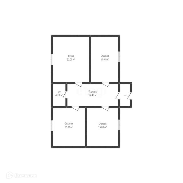 Три комнаты по 15 м.кв., кухня-столовая 22 м.кв., коридор 15 м.кв.,с/у 5 м.кв.