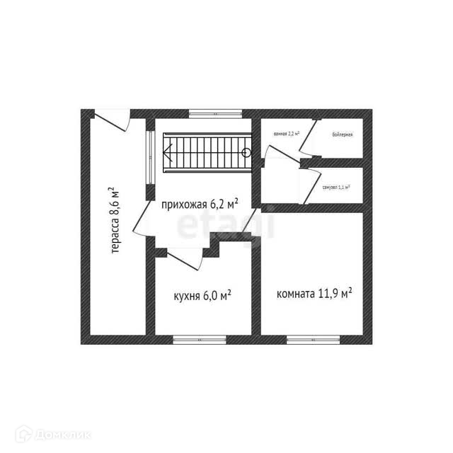 1 этаж - гостиная, коридор, кухня, раздельный сан.узел, бойлерная комната.