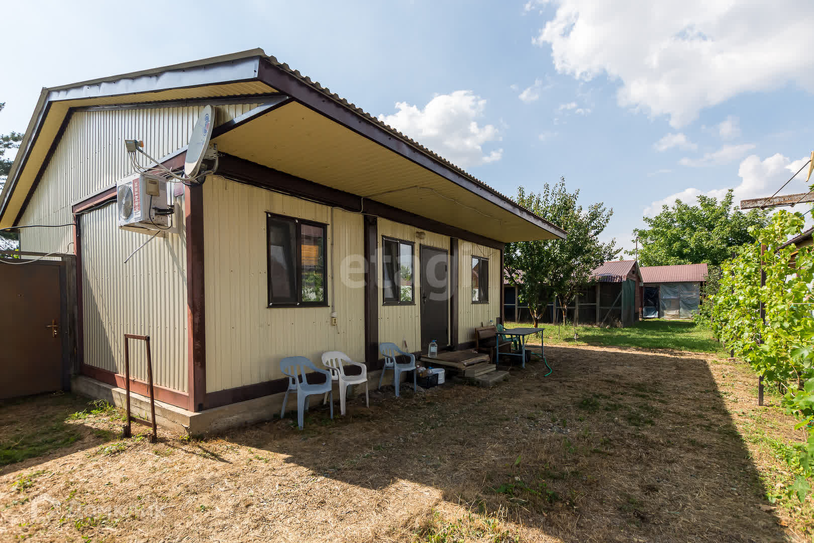 Хороший, молодой, плодоносящий сад, большой вкусный виноградник.