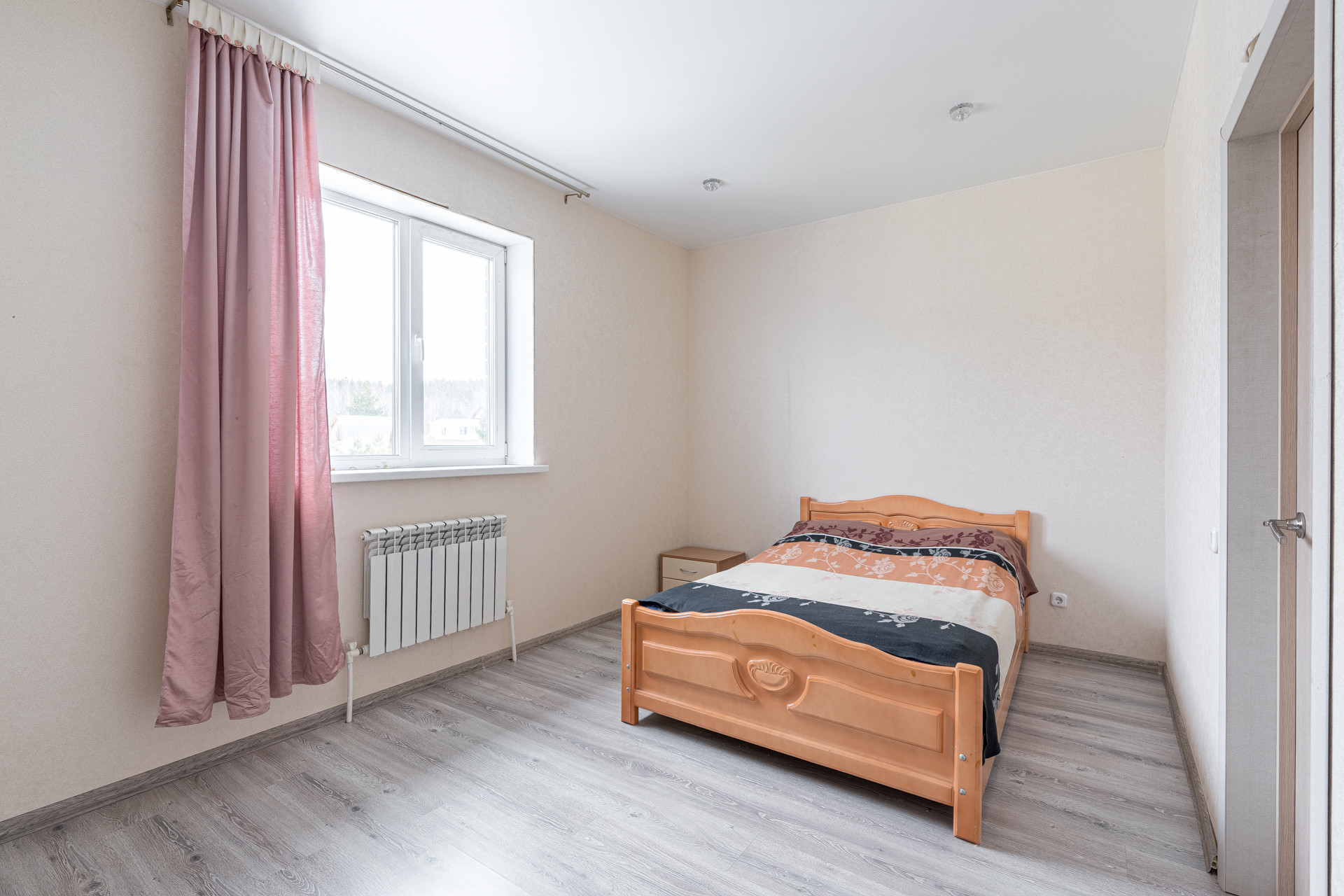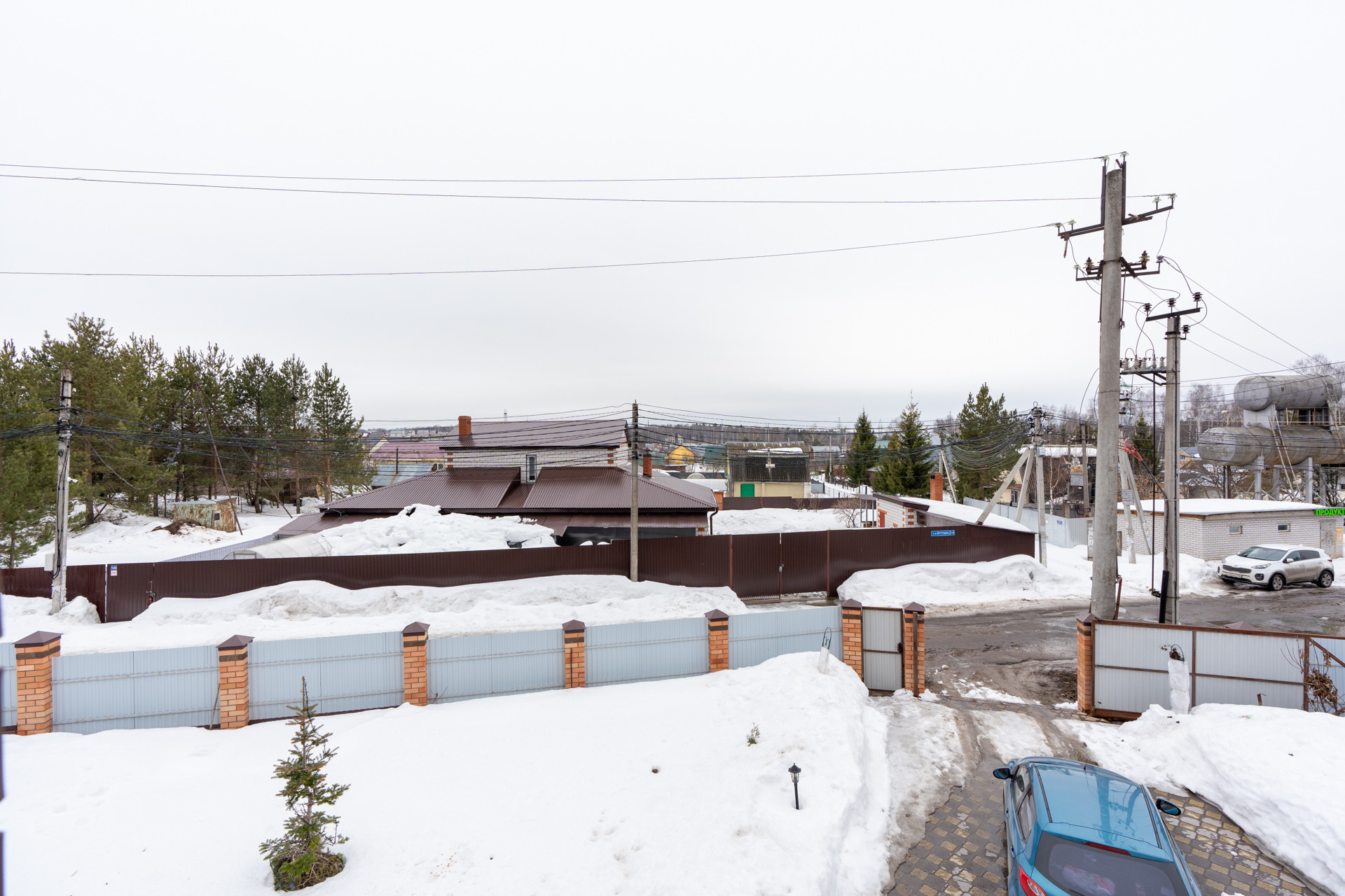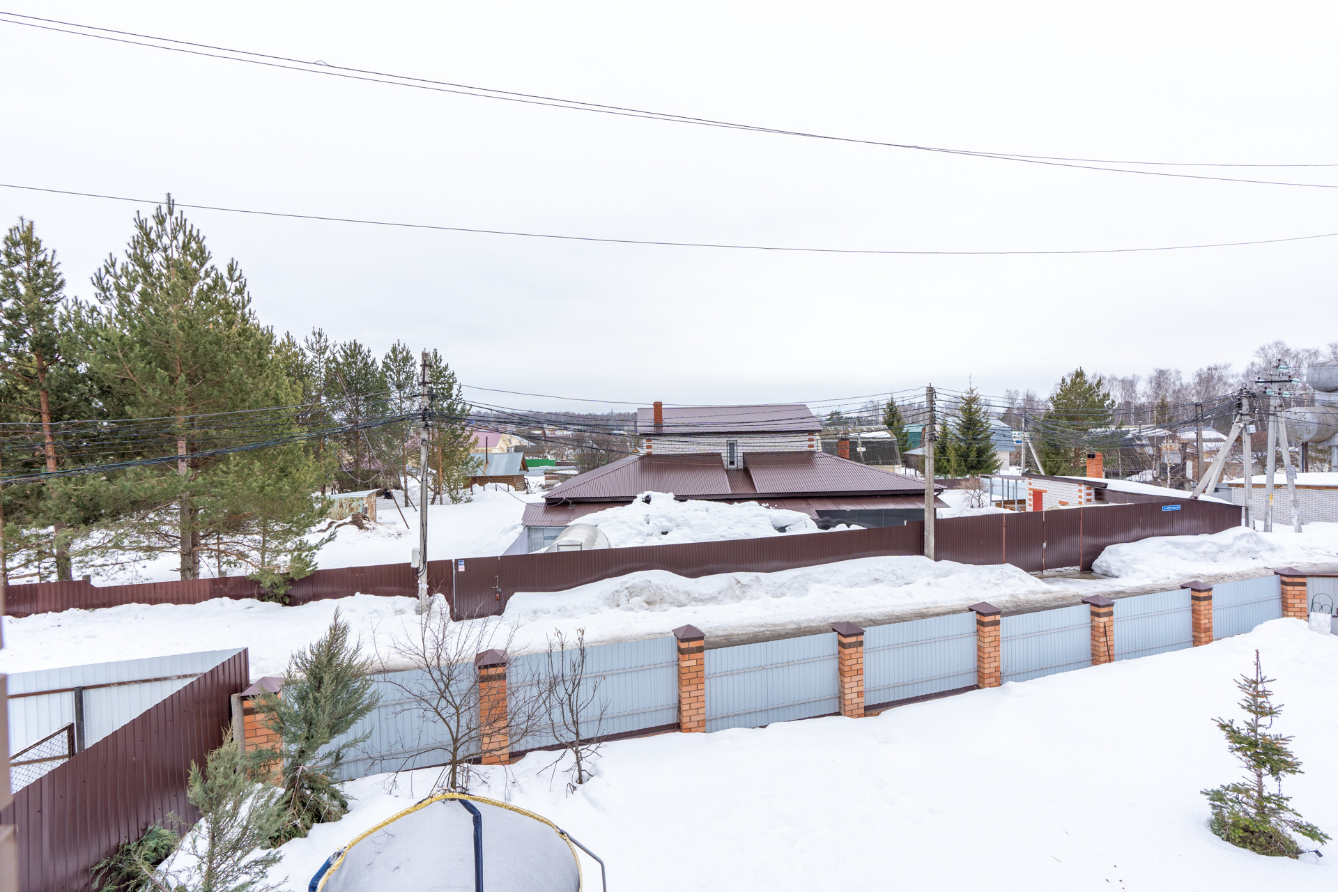 До участка, который огорожен хорошим забором, ведёт асфальтированная дорога. На участке есть место под парковку 5-6 машин, есть отдельно стоящая баня из сруба на дровах, размером 3 на 6, с верандой. На участке посажены разнообразные растения, такие как яблоня, груша, можжевельник, малина, клубника, туя и многолетние цветы.