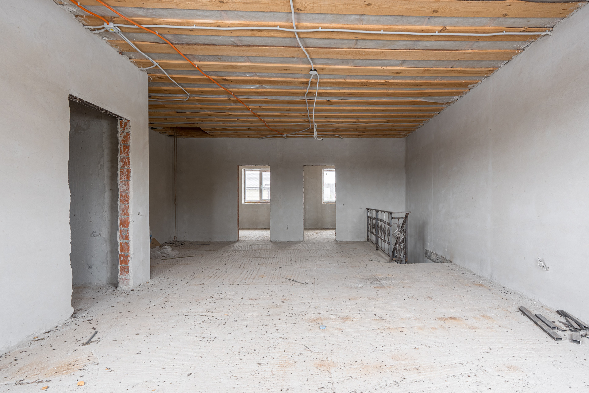 Сам дом отличный – посмотрите на фото. Здесь все сделано качественно и современно. Дом монолитно-кирпичный, 2019 года постройки. Собственники разделили дом на 3 части с отдельными входами и коммуникациями у каждого. 1 и 2 часть дома одинаковые по планировке, полностью с ремонтом, 3-я в черновой отделке (она самая большая по площади). На первом этаже 1 и 2 части дома: просторная кухня-студия 27,5 кв.м., жилая комната 13,4 кв.м., ванная и туалетная комнаты. На втором этаже: большая комната свободной планировки 28,8 кв.м. и отдельная комната – 13,4 кв.м, и туалет.