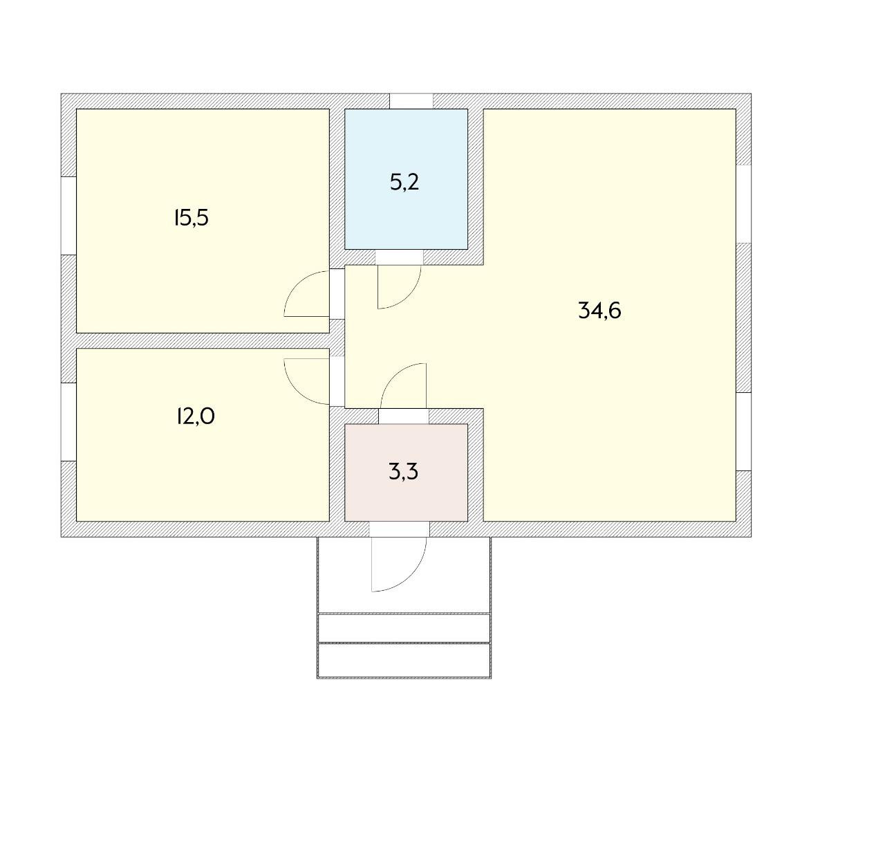 Планировка: просторная кухня, 2 большие изолированные комнаты, прихожая, санузел.