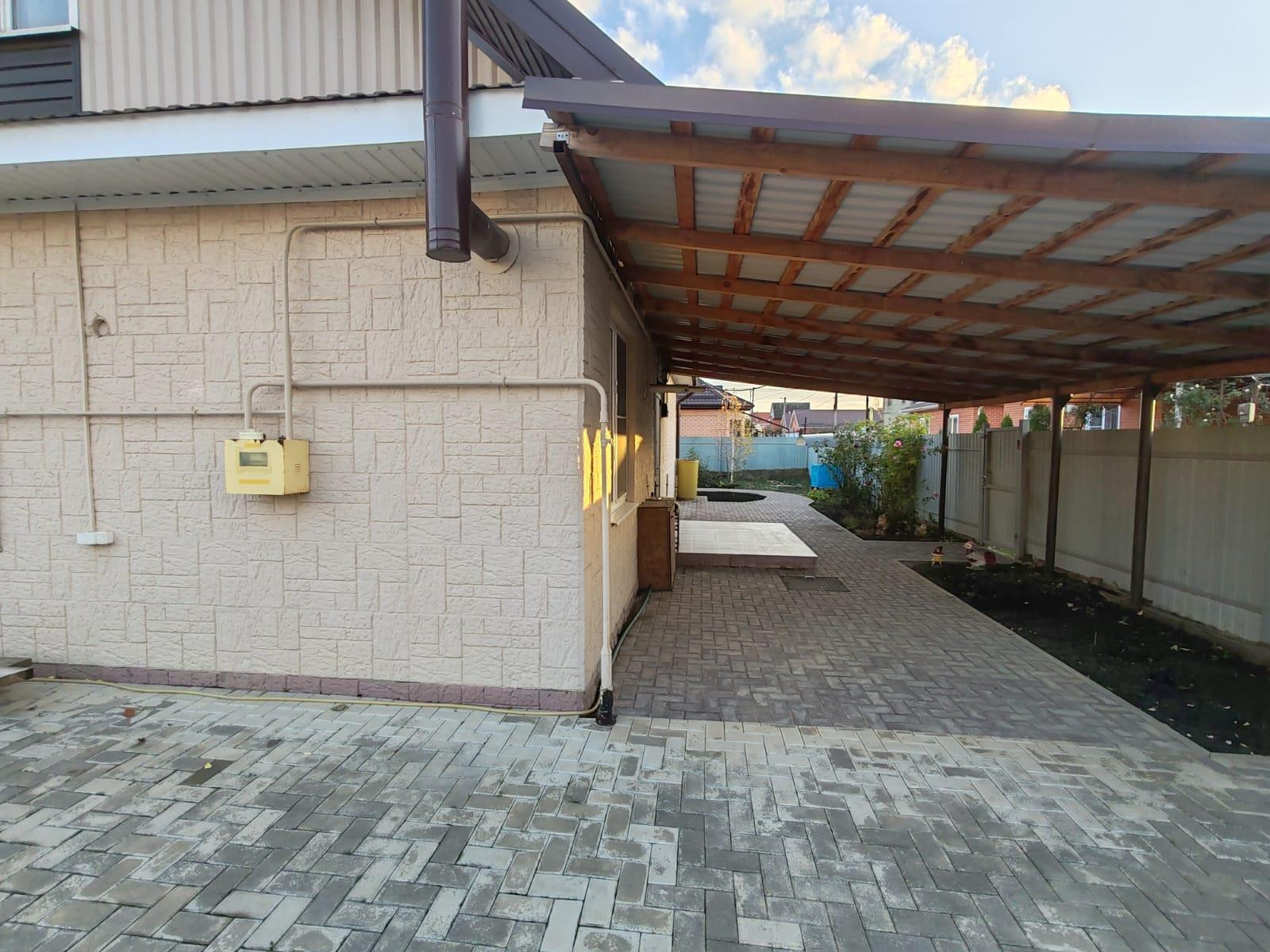 Во дворе построена очень хорошая банька  с русским паром, двор ухожен, есть теплица, грядки, взрослые деревья приносят плоды по сезону. Двор вымощен брусчаткой, железный забор по периметру участка скрывает двор от посторонних глаз. В этом доме все продуманно и оконченный вид этого дома вас обрадует. остается кухня и бытовая техника.
