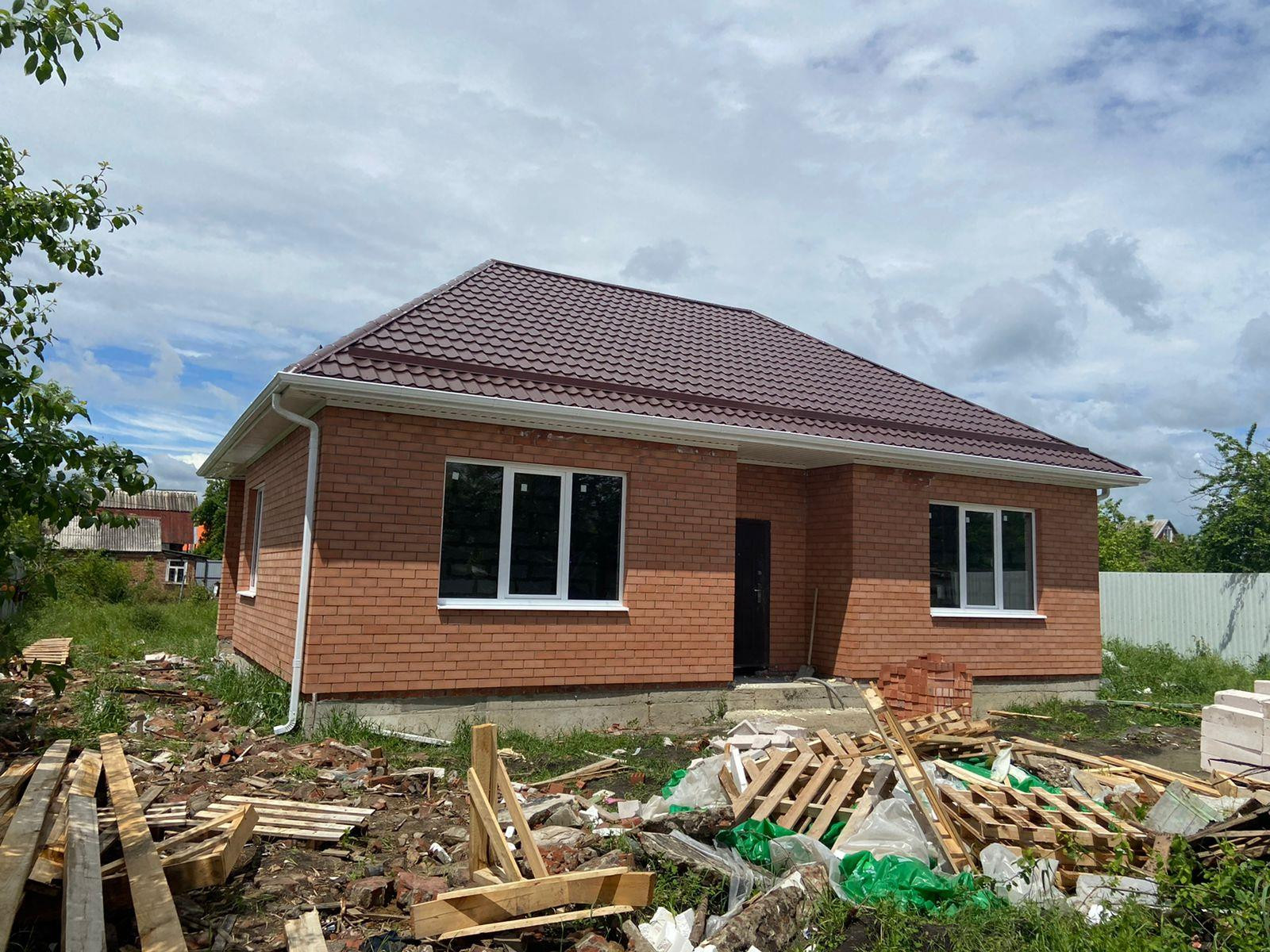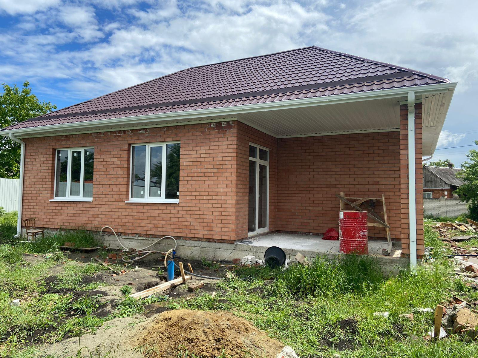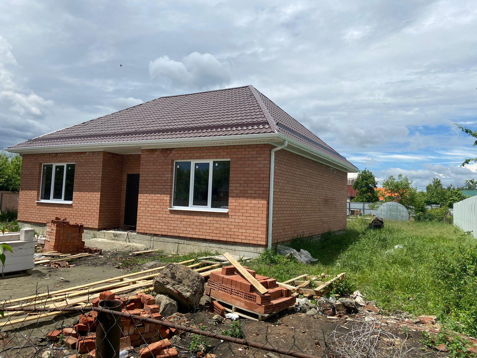 В продаже одноэтажный, шикарный дом, исполненный в современном стиле, на земельном участке 6.5 соток. Построен из облицовочного керамического кирпича. Внутренние стены из газобетонного блока, в черновой отделке.