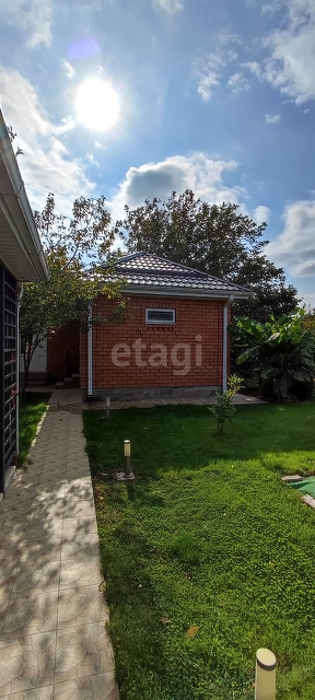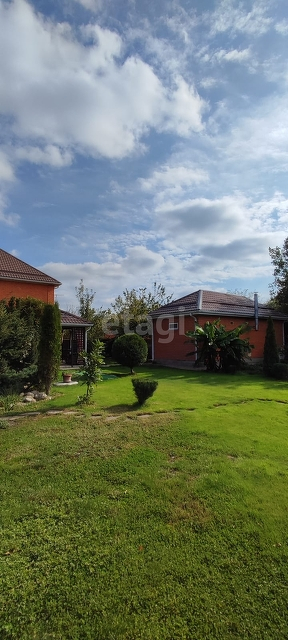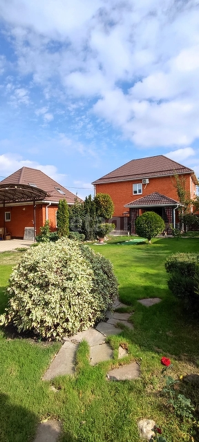 На участке дизайнерское озеленение, газон с автополивом, плодовые деревья и кустарники, выделено место под огород 1.5 сотки.
