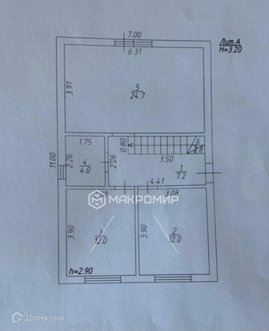 Высота потолка 3,2 м