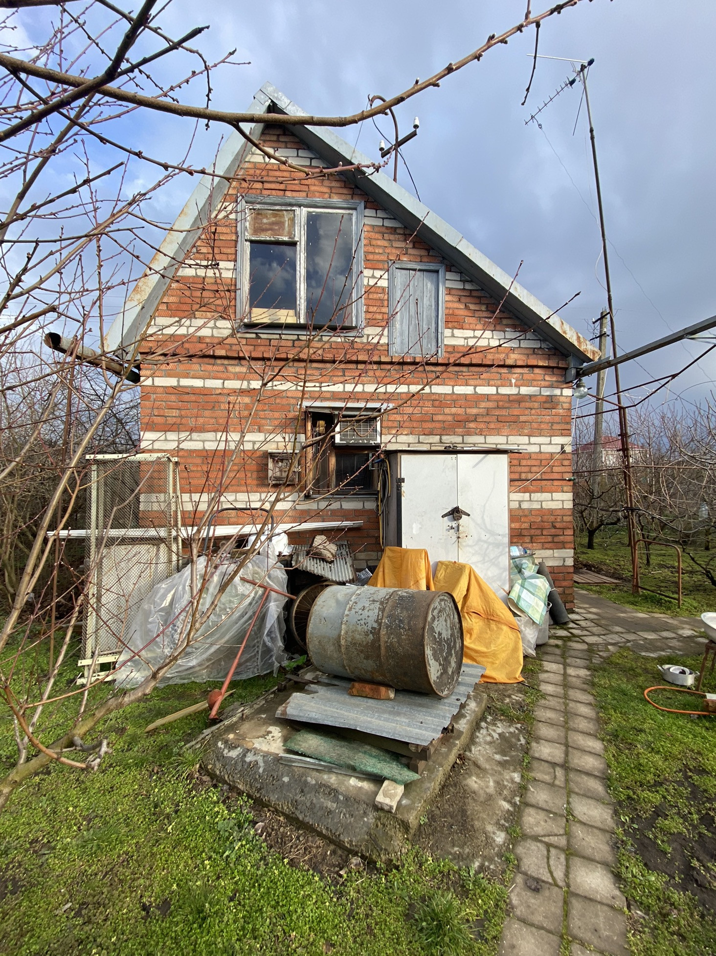На участке плодовые деревья и виноград, к которым подведён капельный полив.
