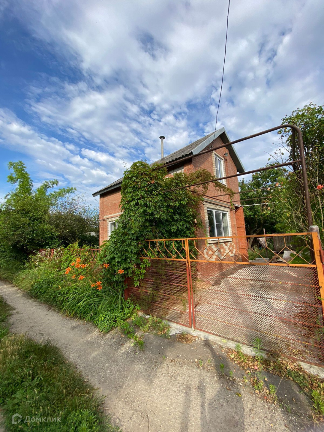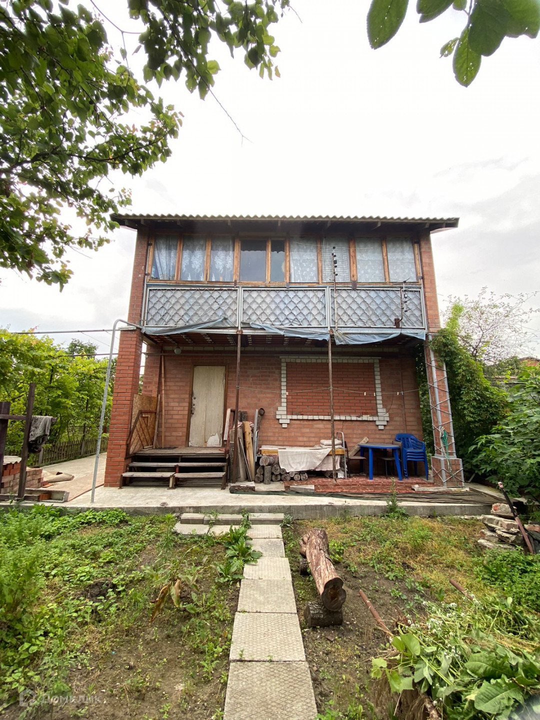 На участке 2х этажный кирпичный дом, металлопласт окна, на первом этаже комната, кухня, на втором этаже комната, большая лоджия, отопление электрокотел