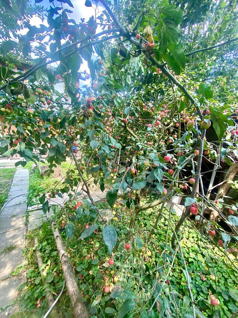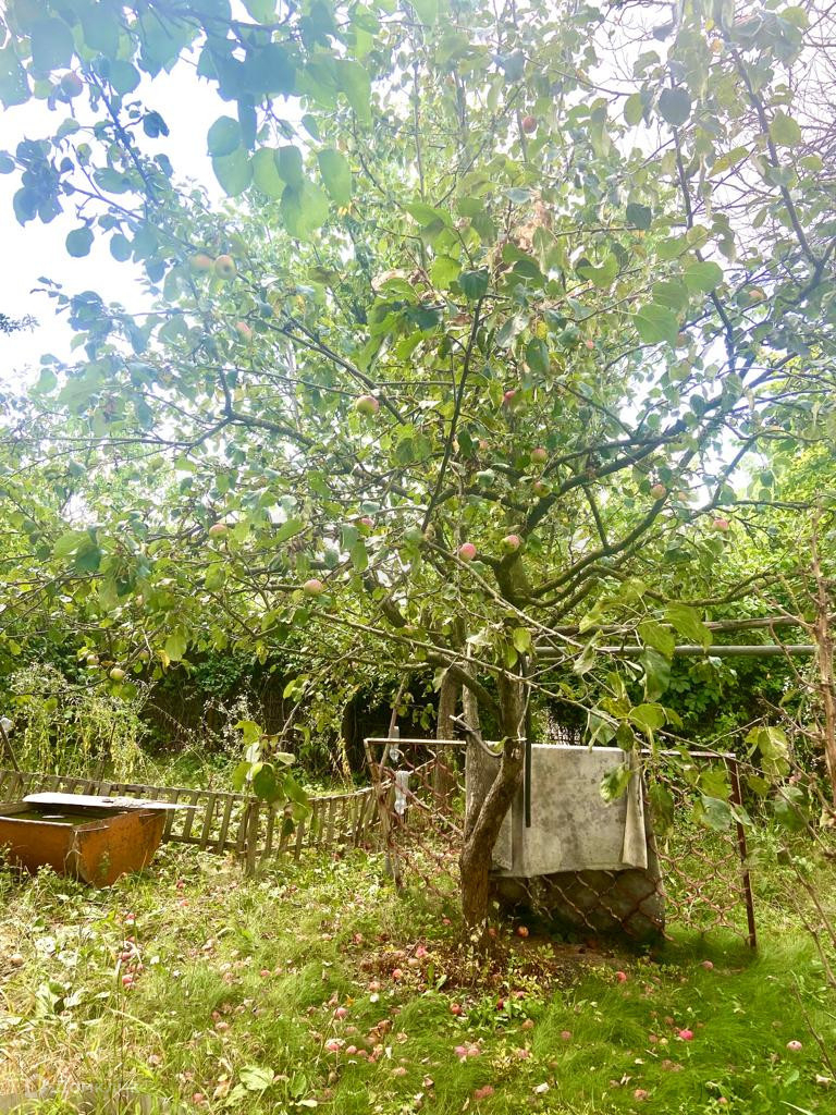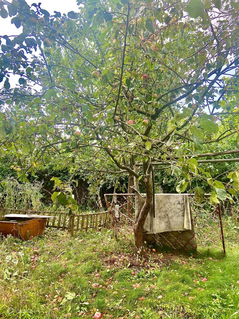 Участок огорожен забором, растут плодовые деревья (яблони, слива, персик, инжир, фундук, виноград и т.д)