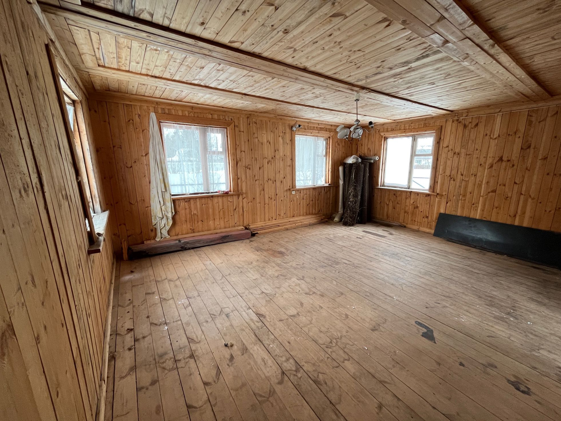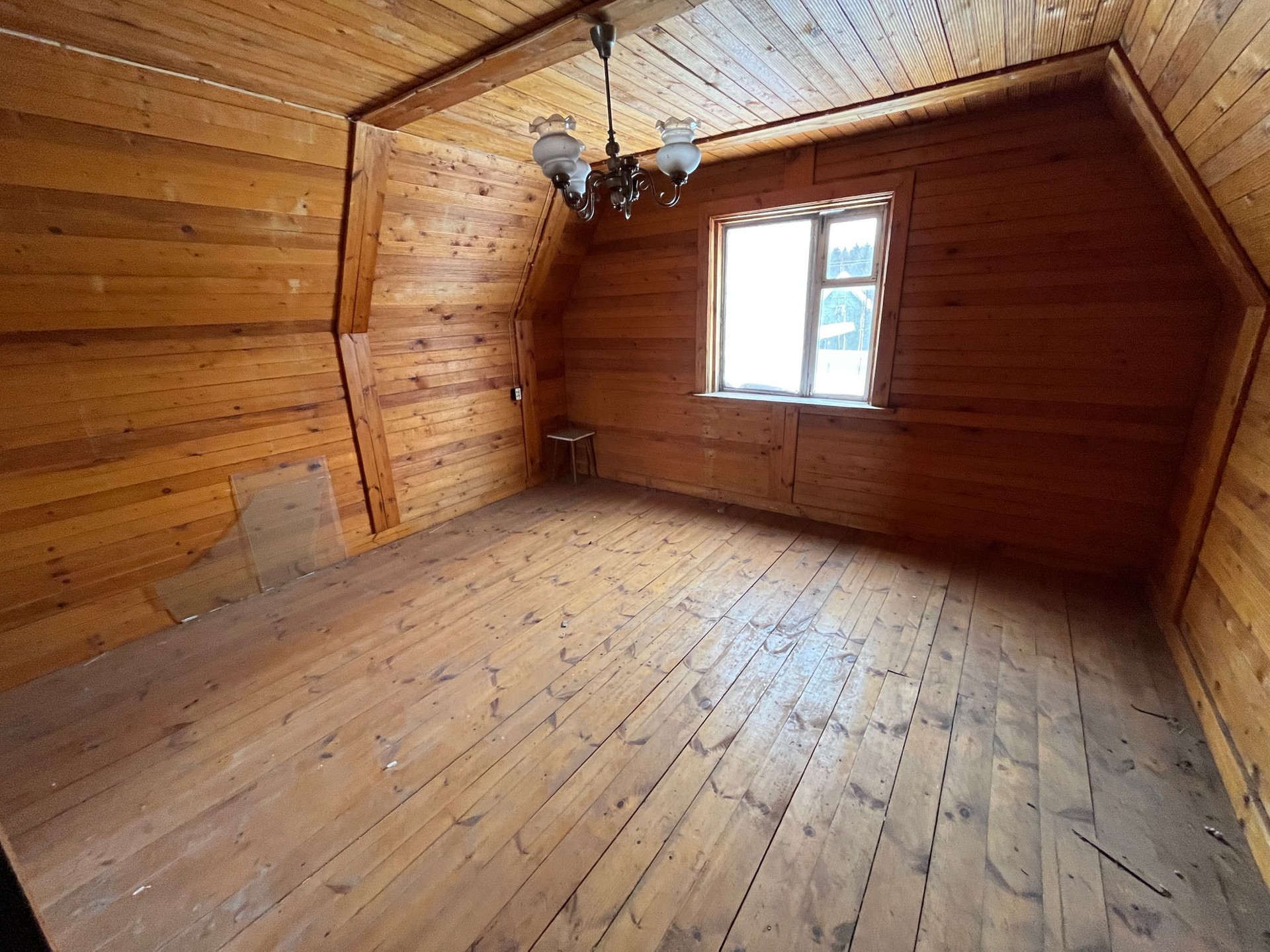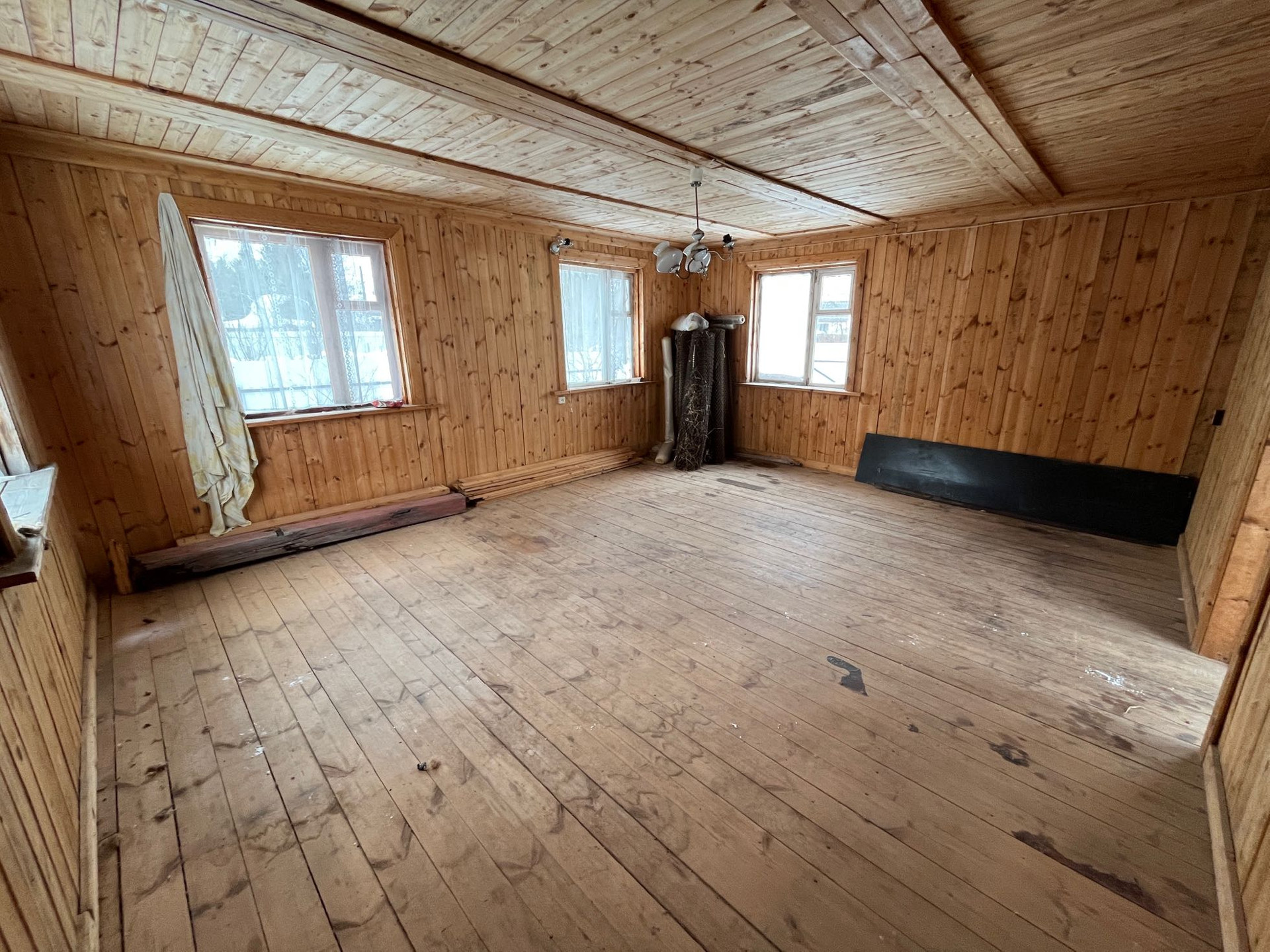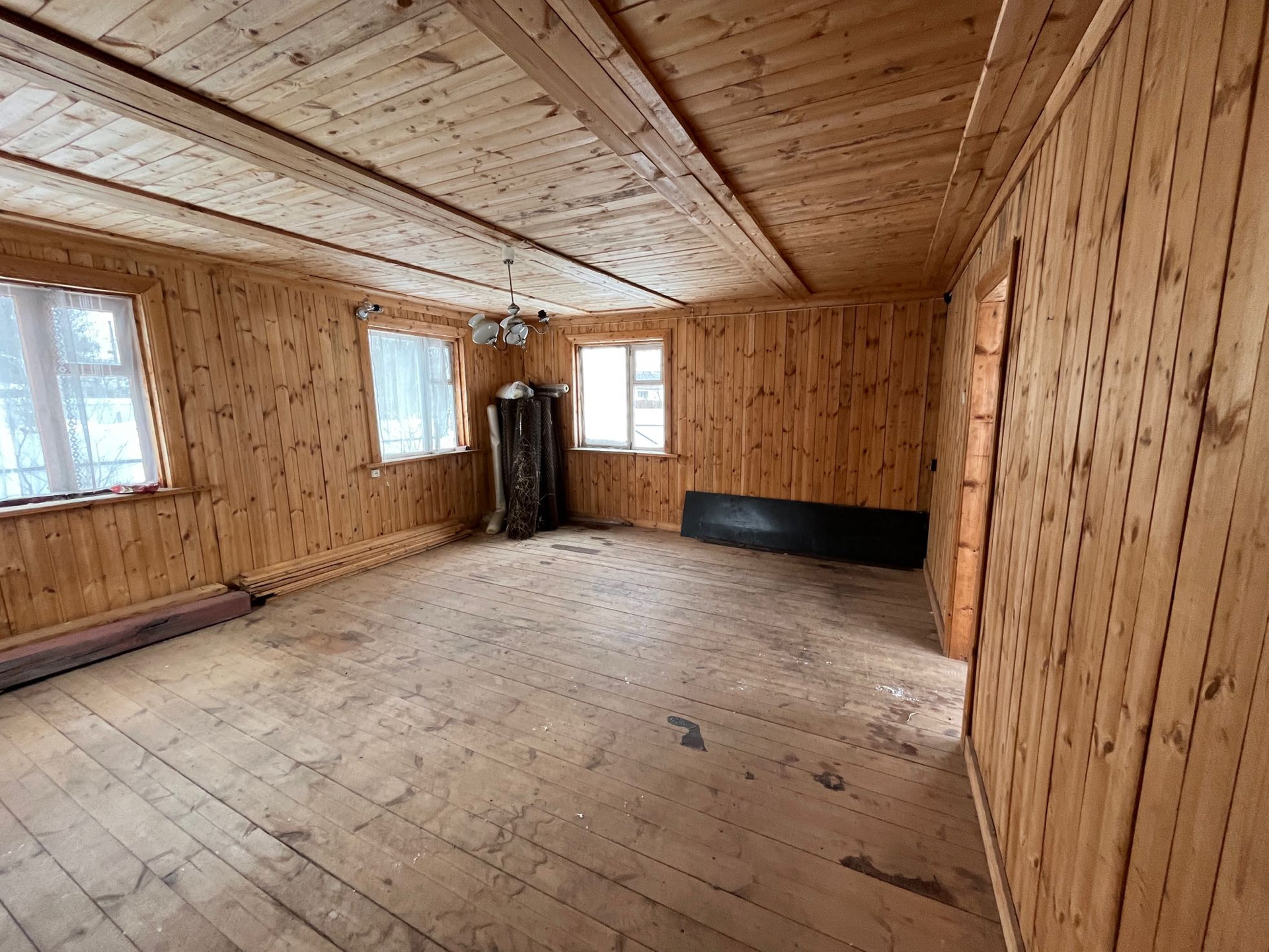 Внутри дом отделан вагонкой, пол доской.