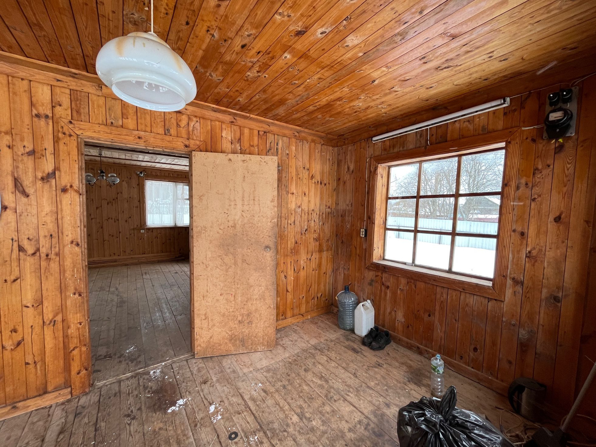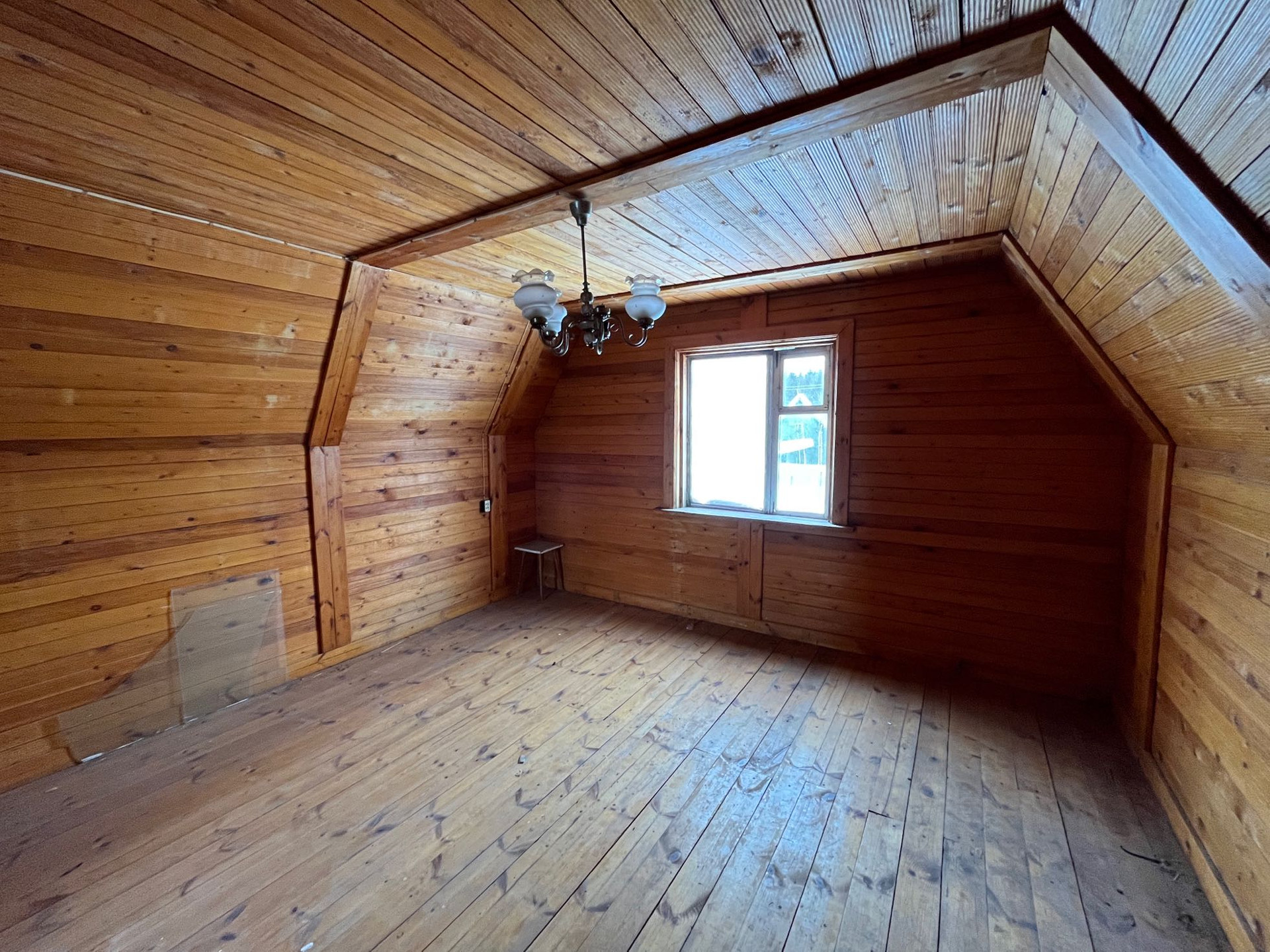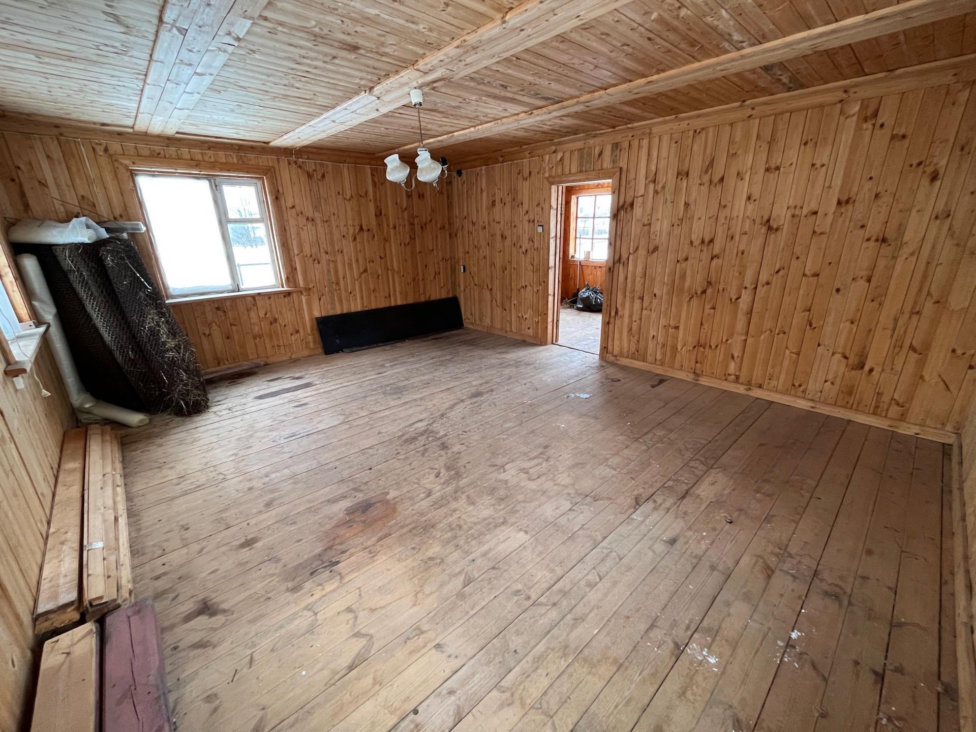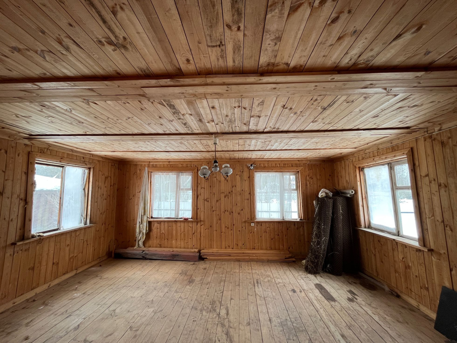 Внутри дом отделан вагонкой, пол доской.