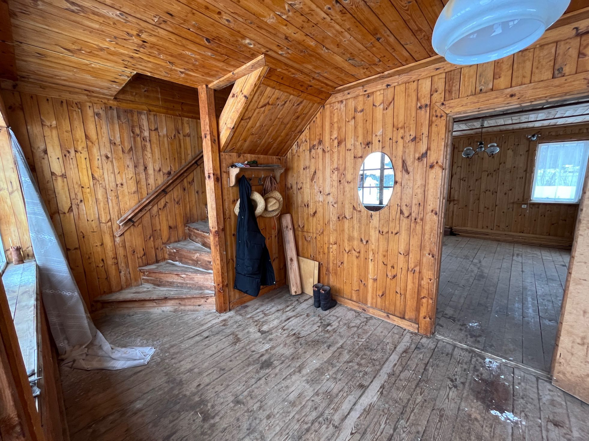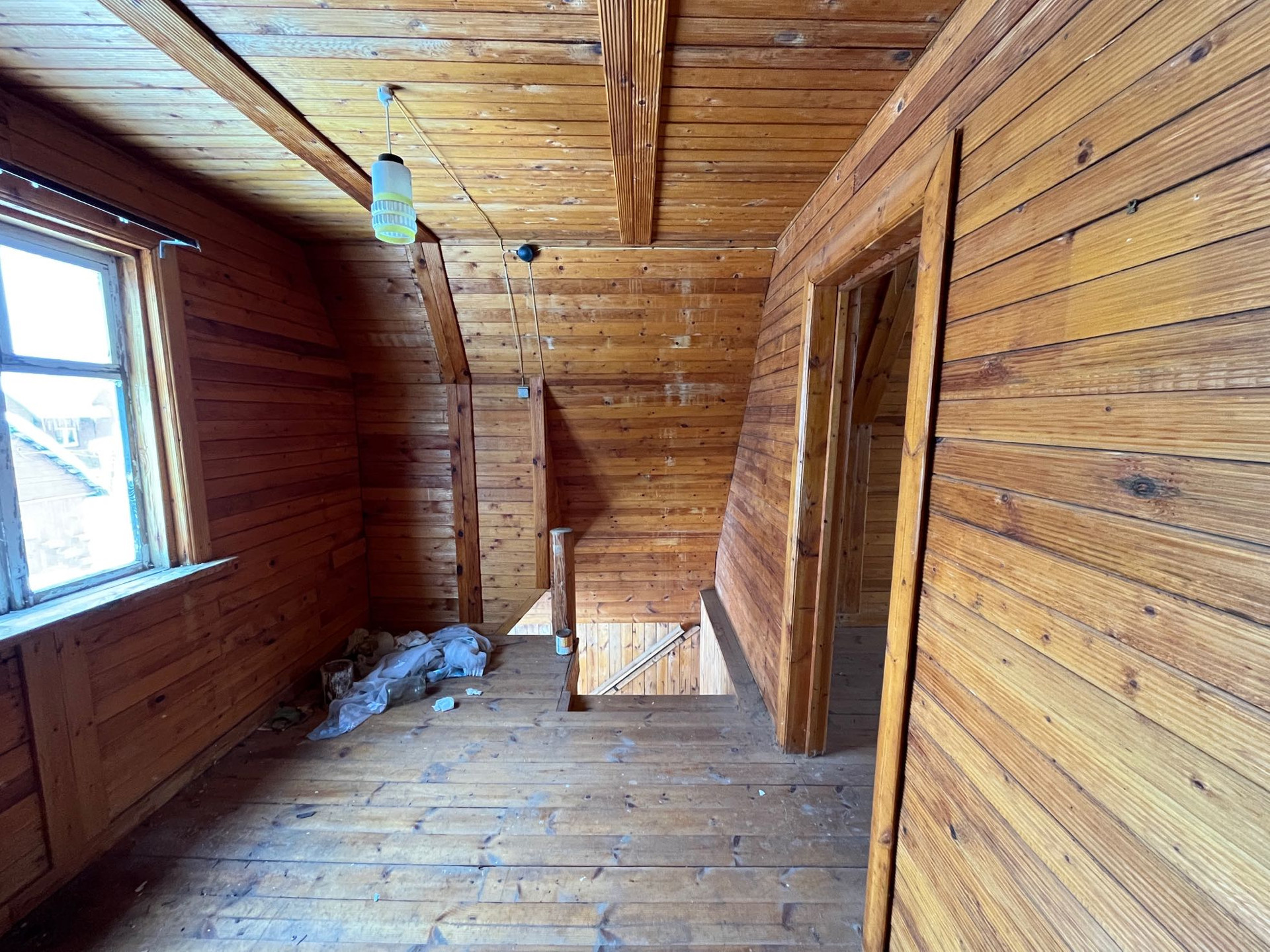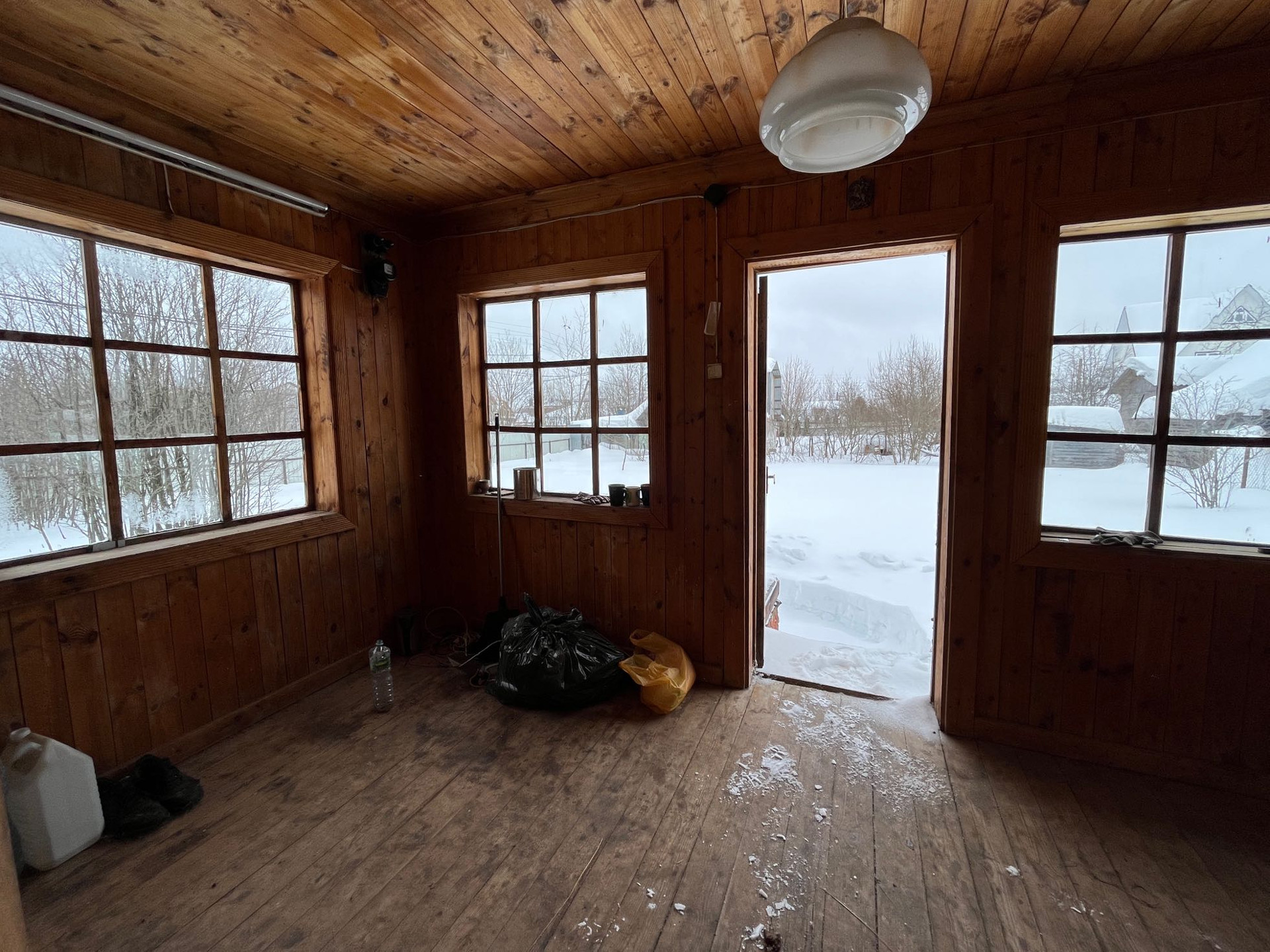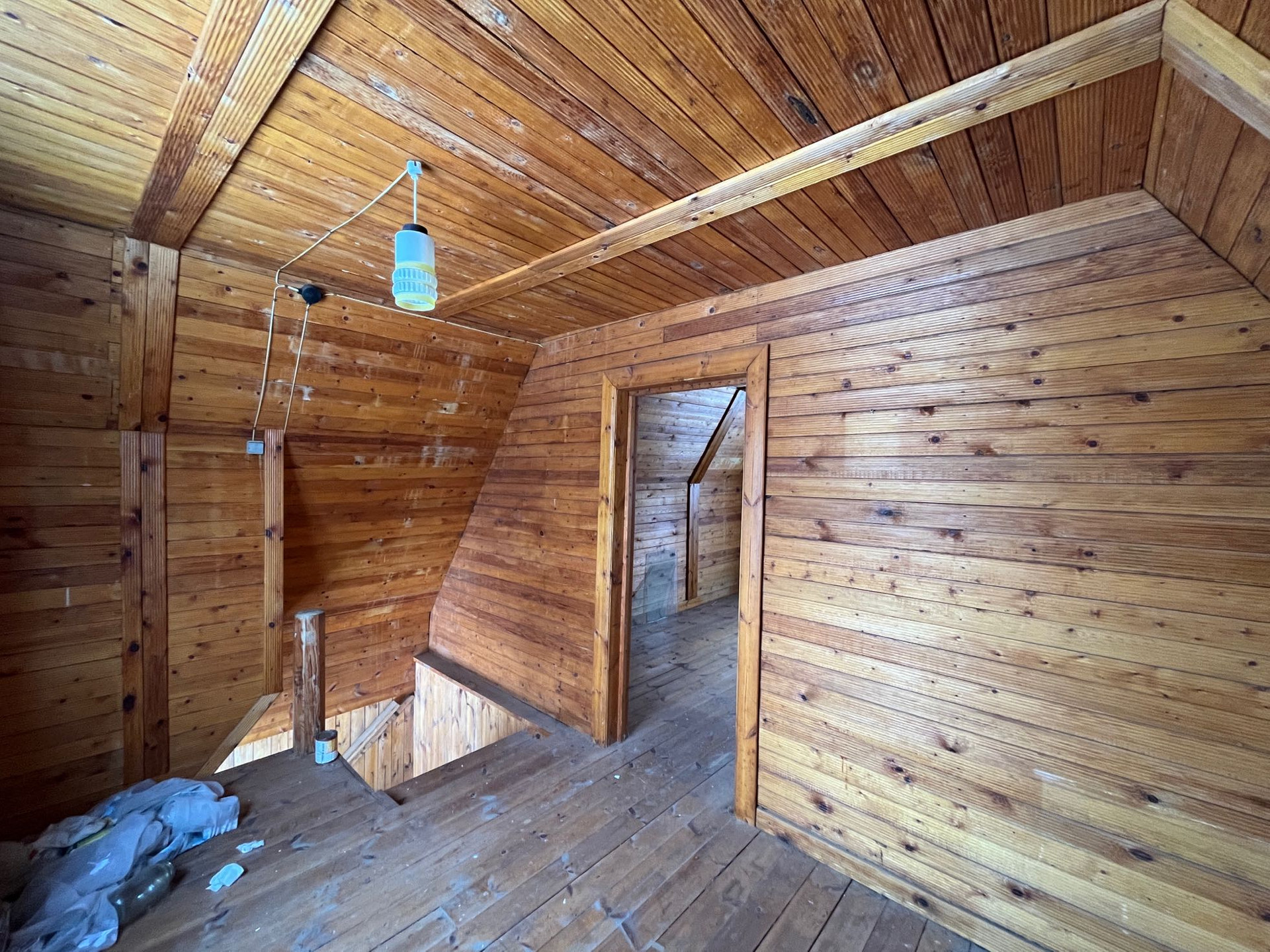Внутри дом отделан вагонкой, пол доской.