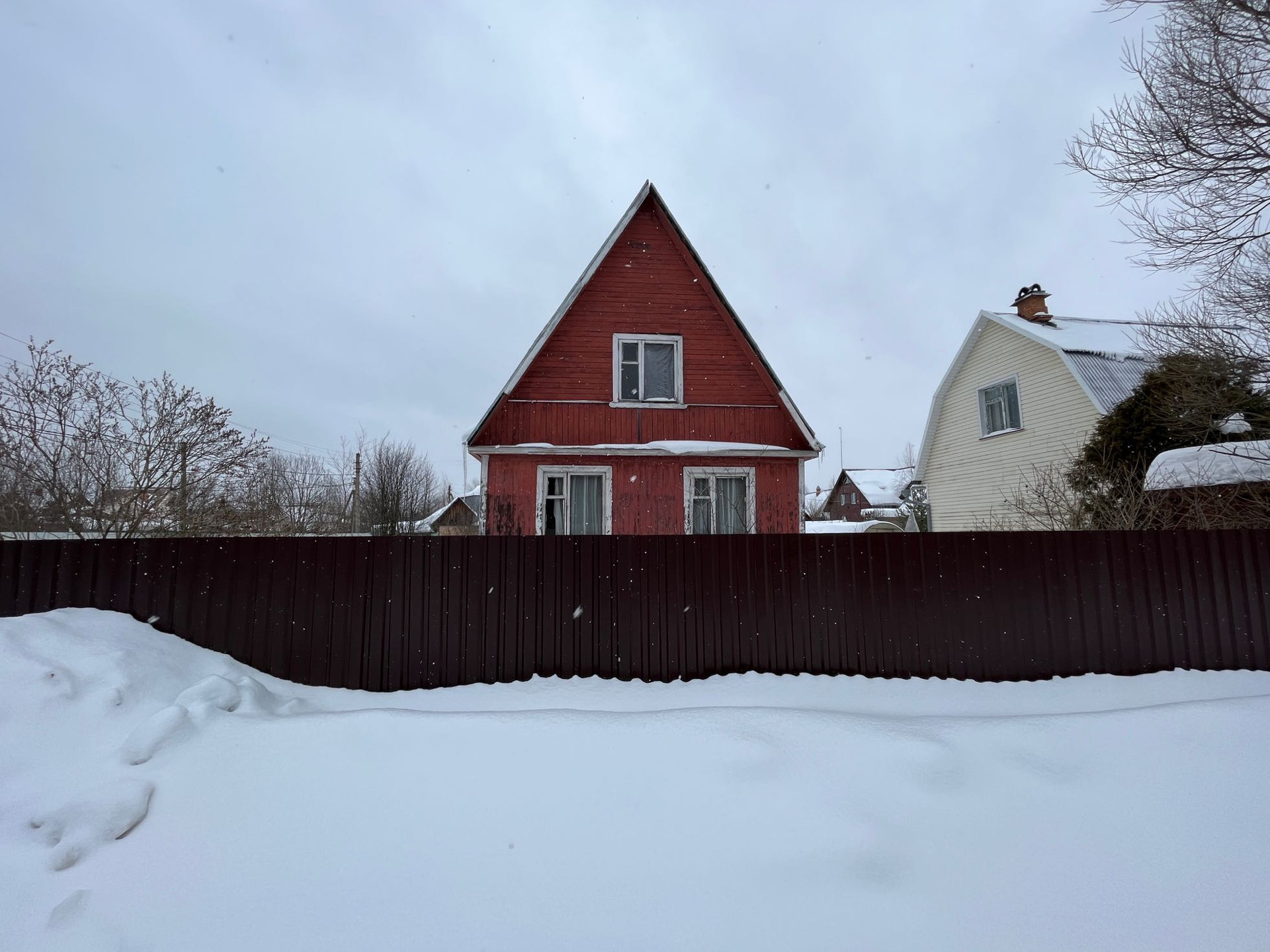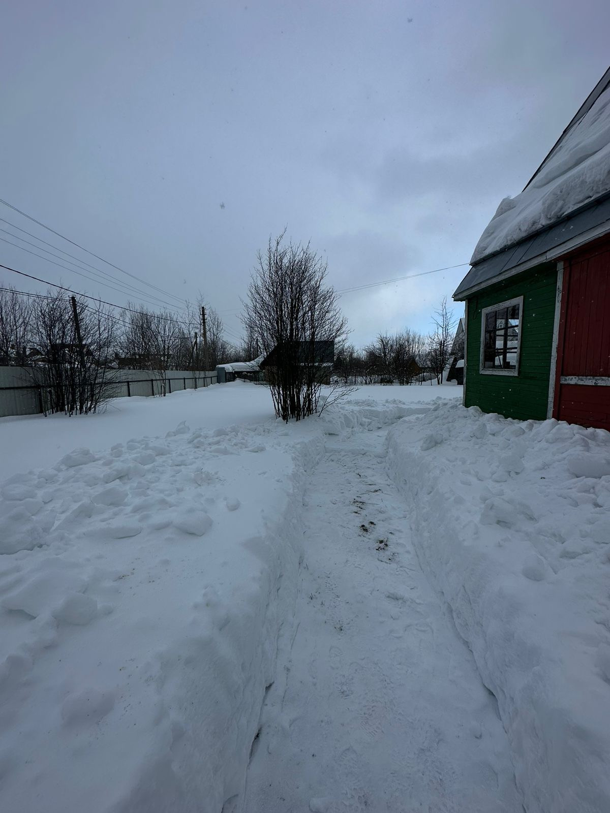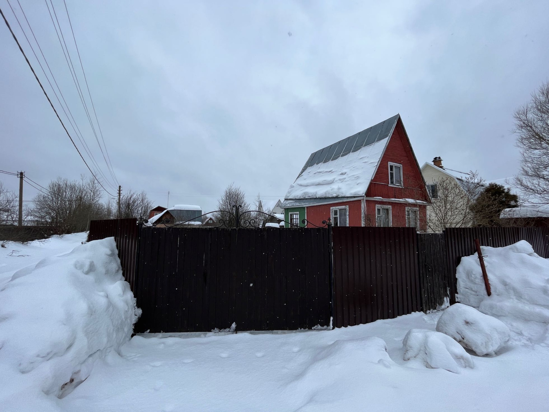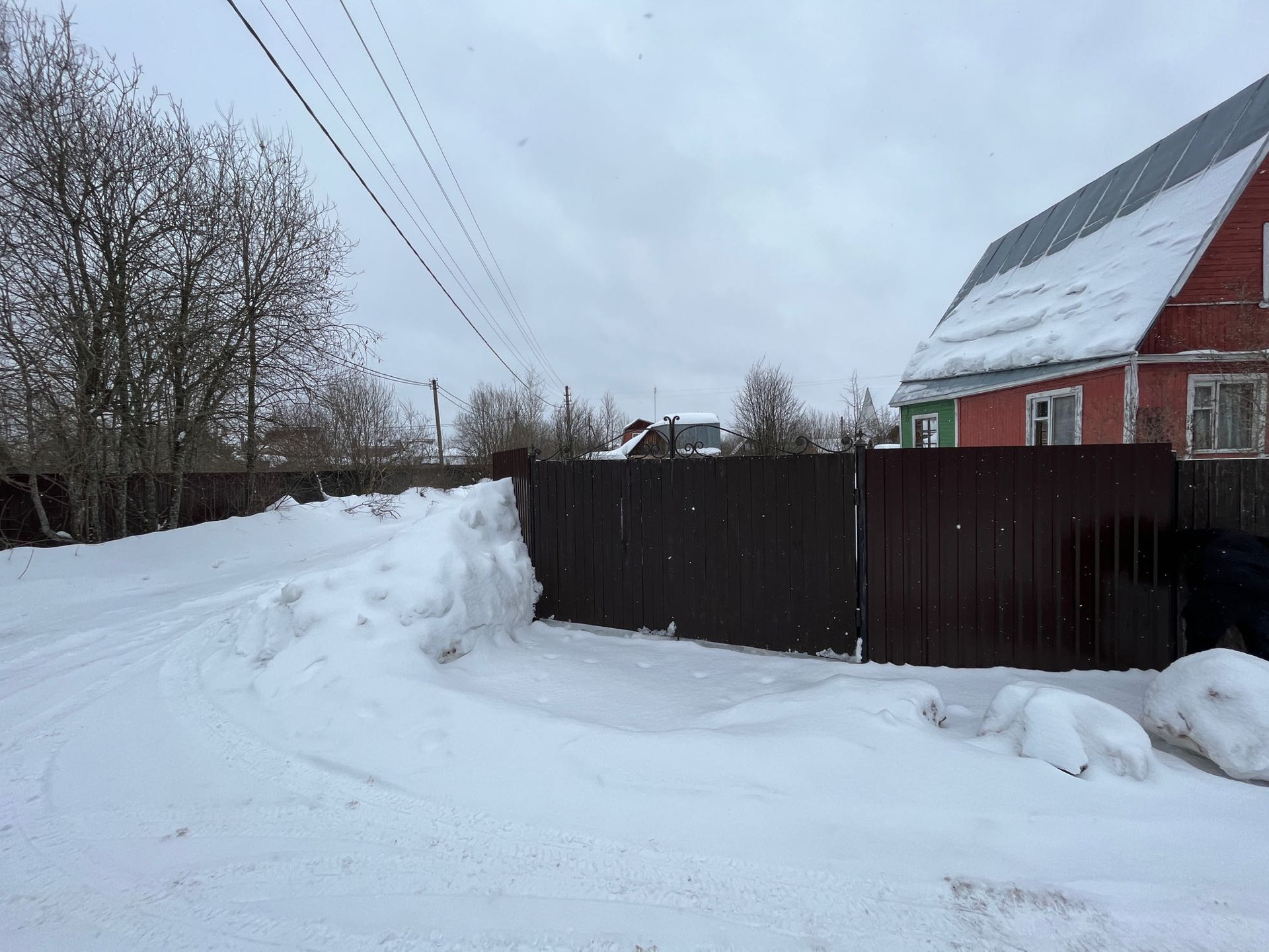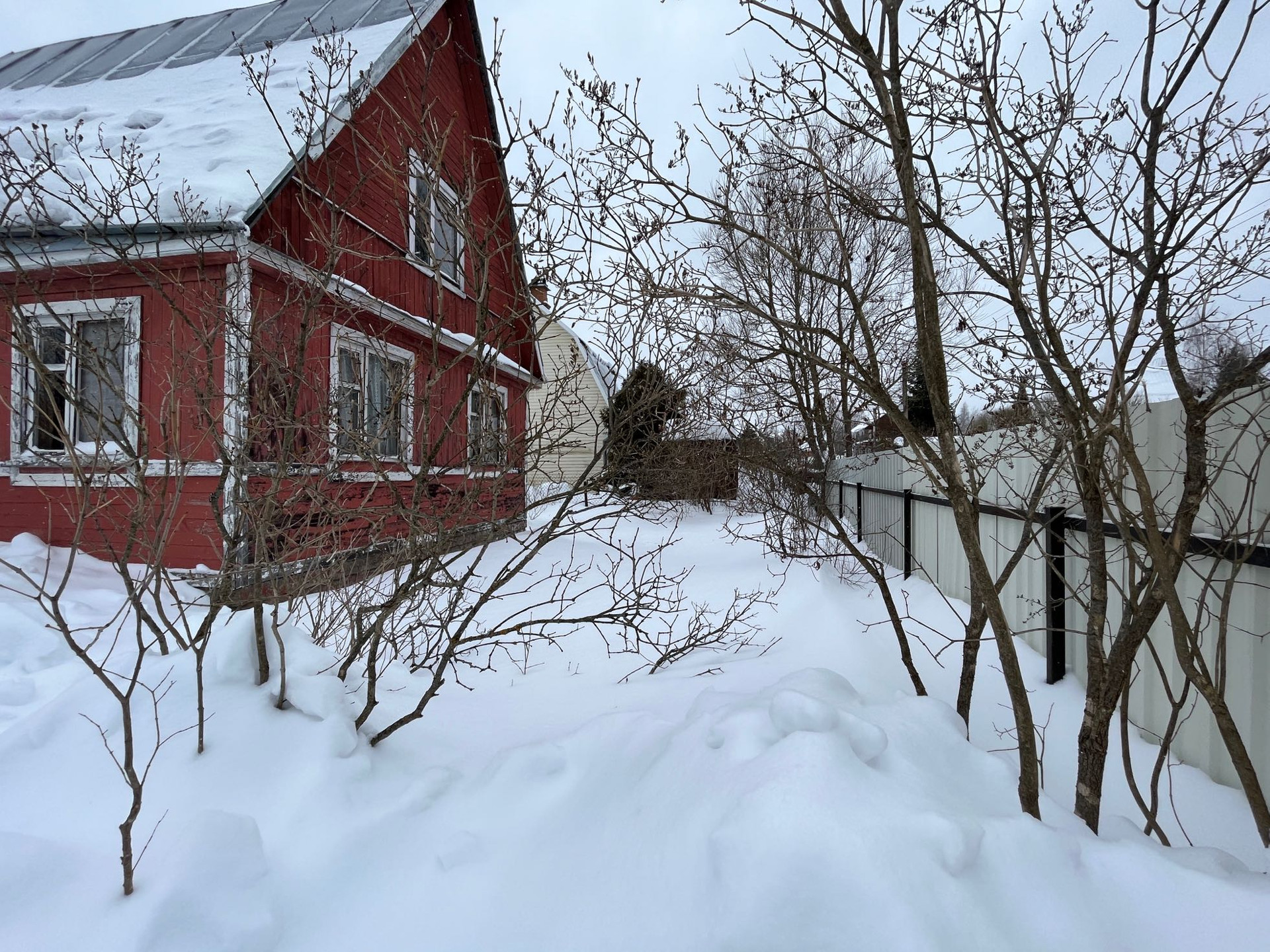 По границам с соседями забор из сетки рабицы .