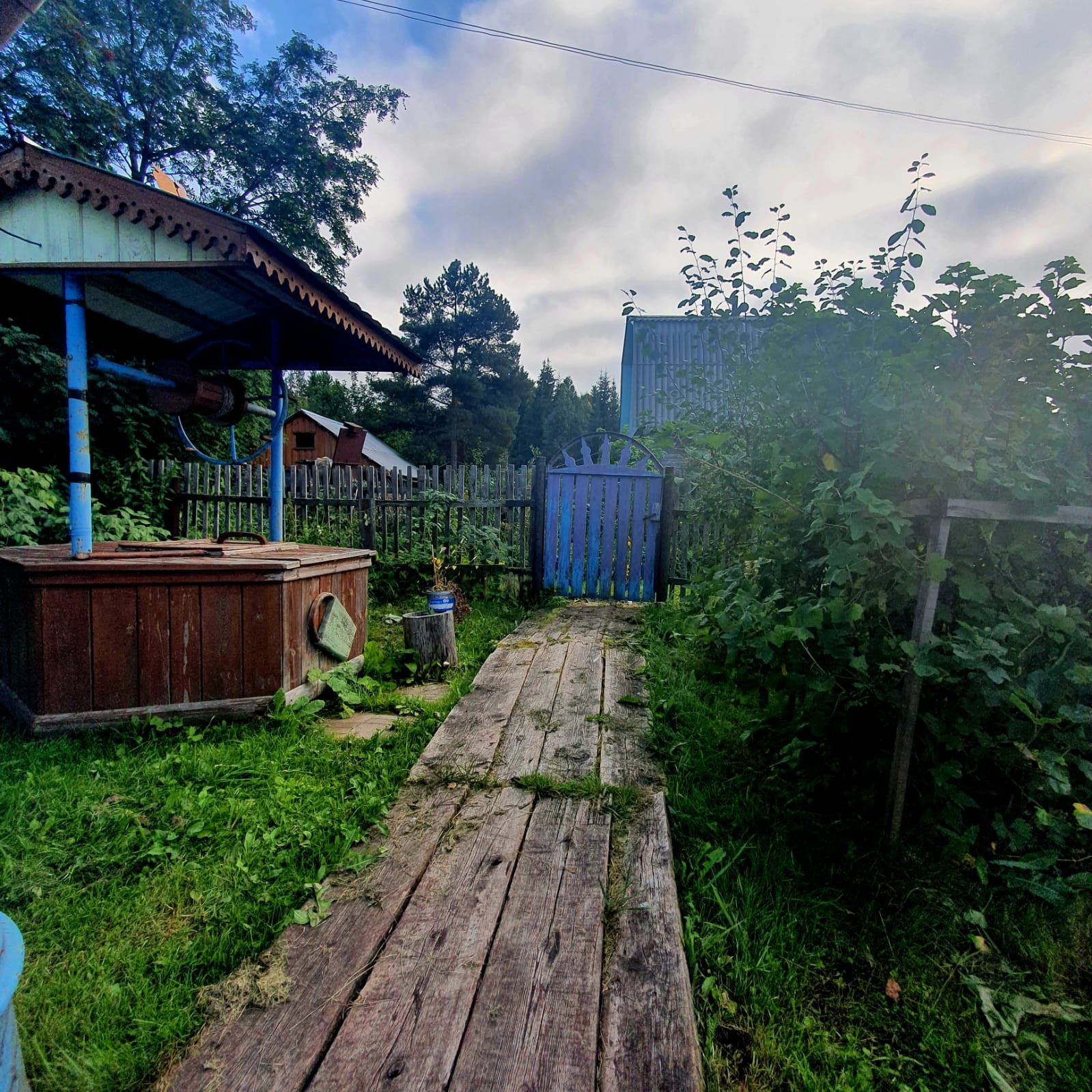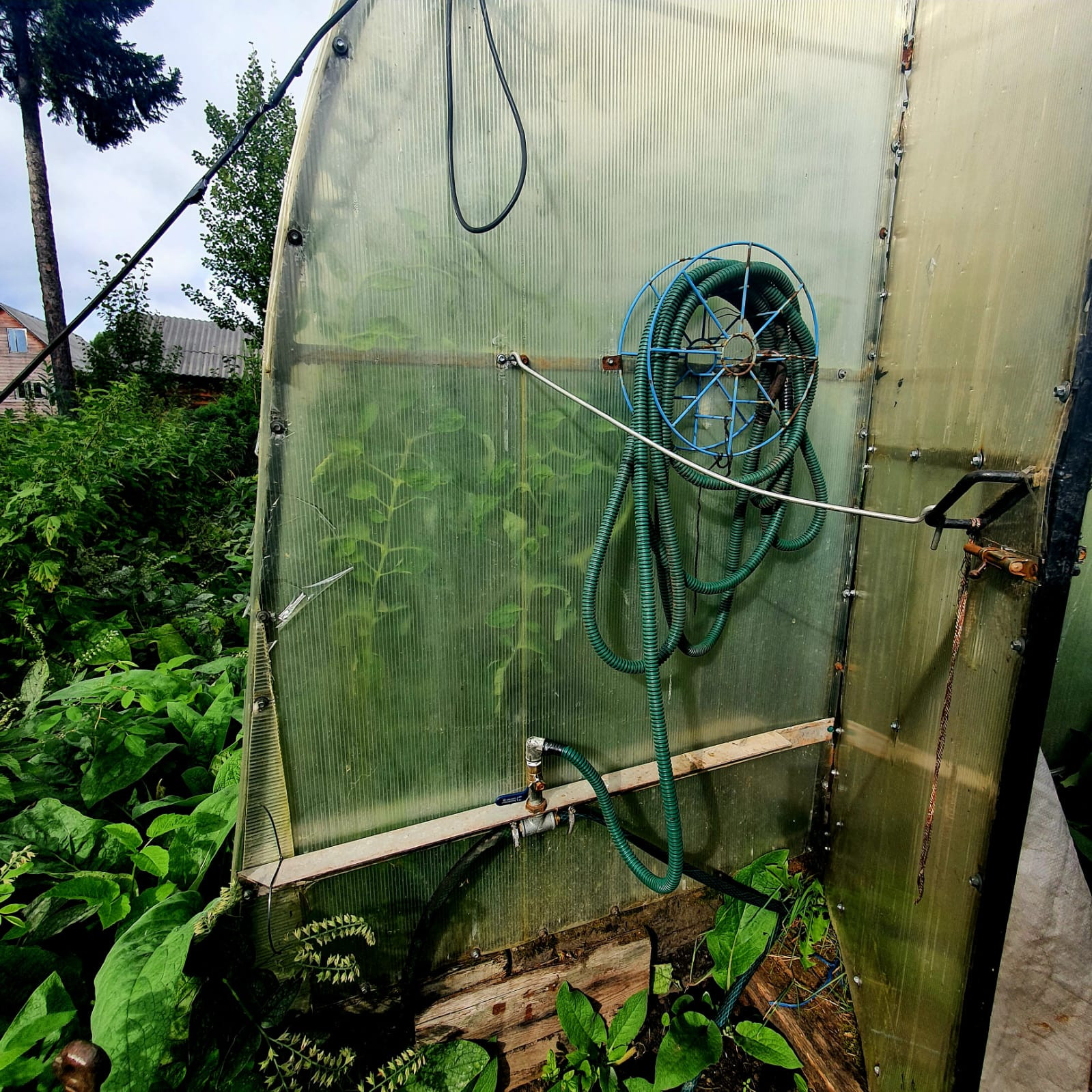 По территории участка проведены трубы и установлен насос, что позволяет без труда произвести полив из шланга.