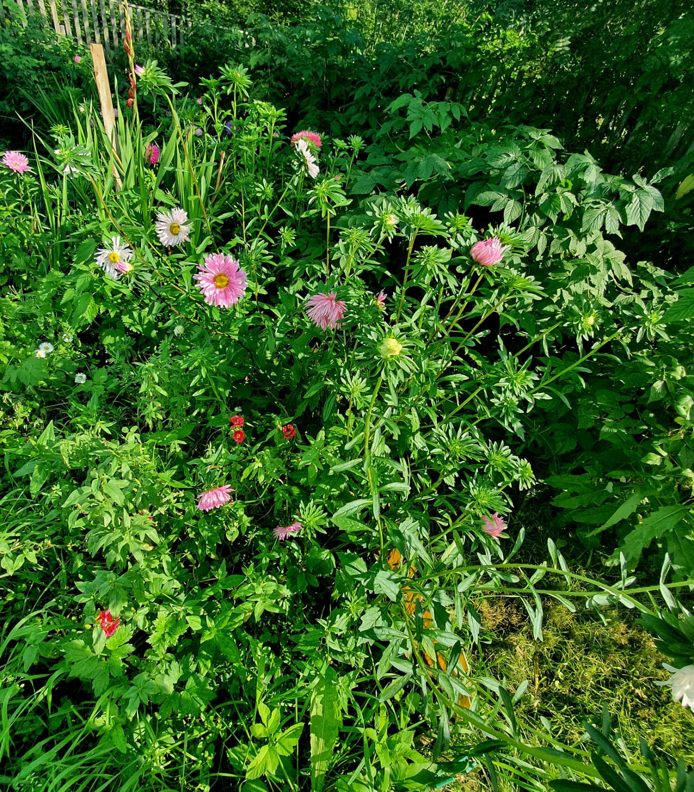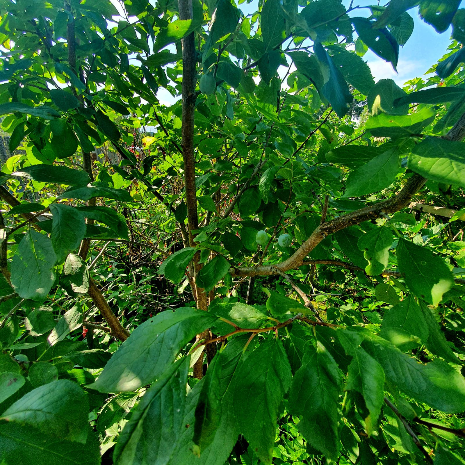 На участке высажены плодоносящие кустарники: красная и черная смородина, малина и дерево вишни.