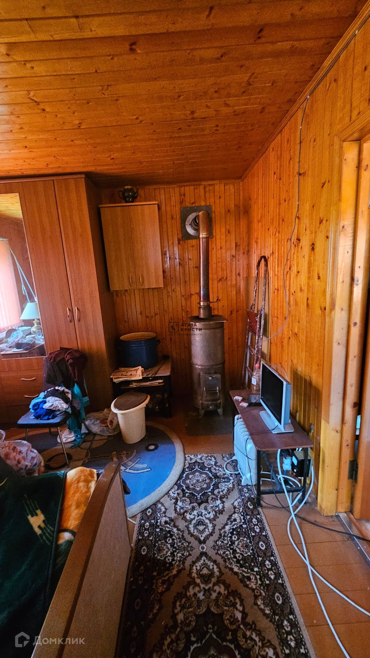 Дом 20 кв.м деревянный, отапливается печью. Подключен свет.