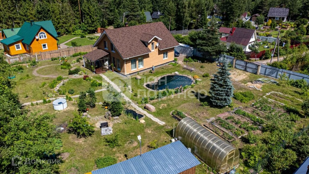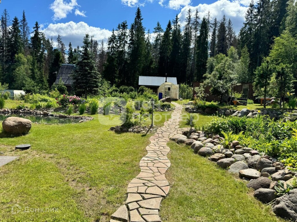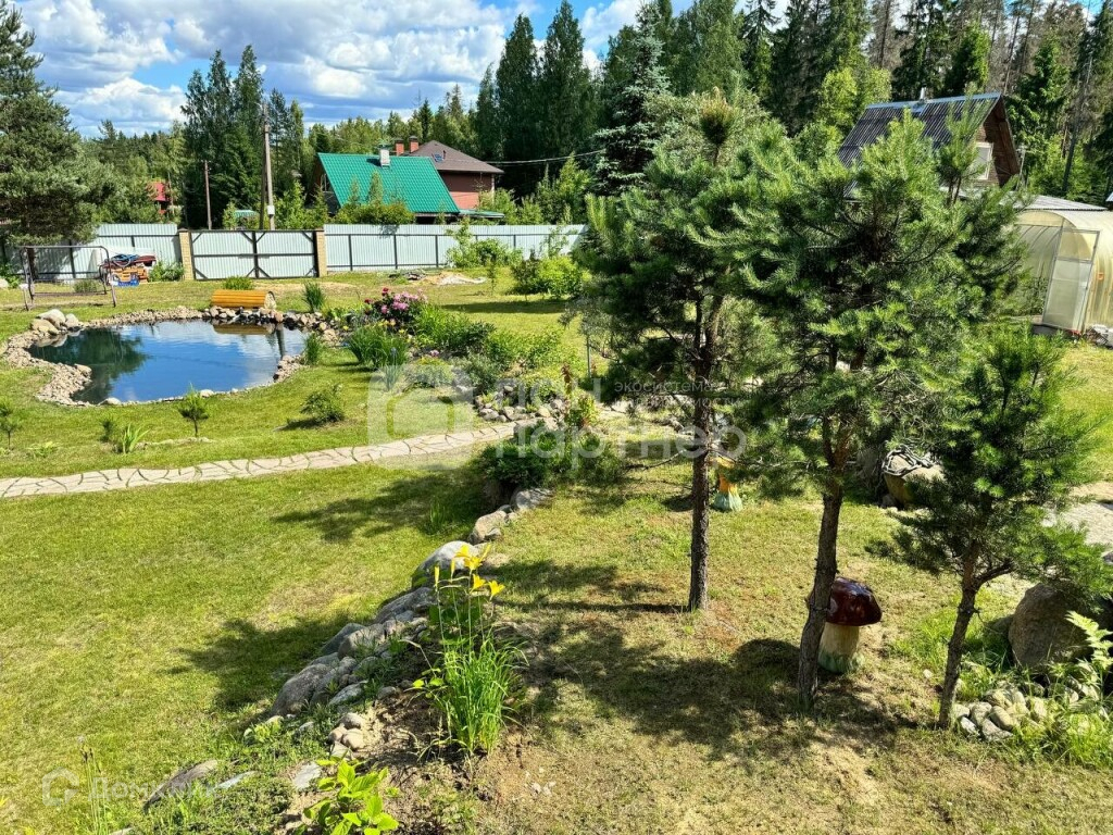 - выполнен дренаж и ландшафтный дизайн с дорожками, фруктовым садом с одной стороны и опушкой леса с другой, где можно собирать бруснику, чернику, грибы,