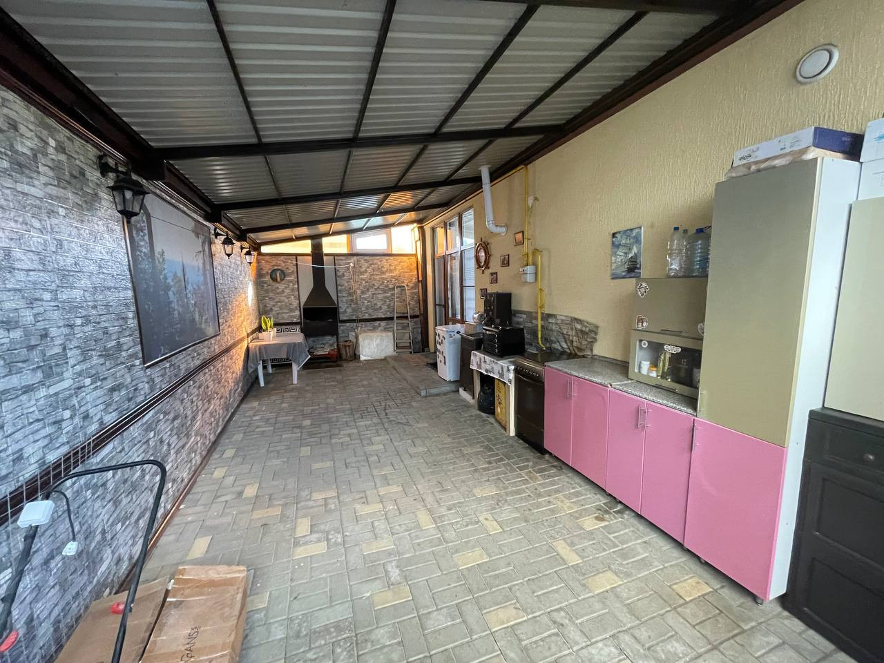 К дому пристроена летняя кухня 34 метра с кухней и мангальной зоной. Прекрасная дополнительная зона отдыха.