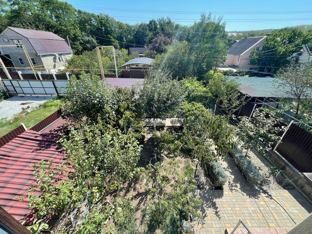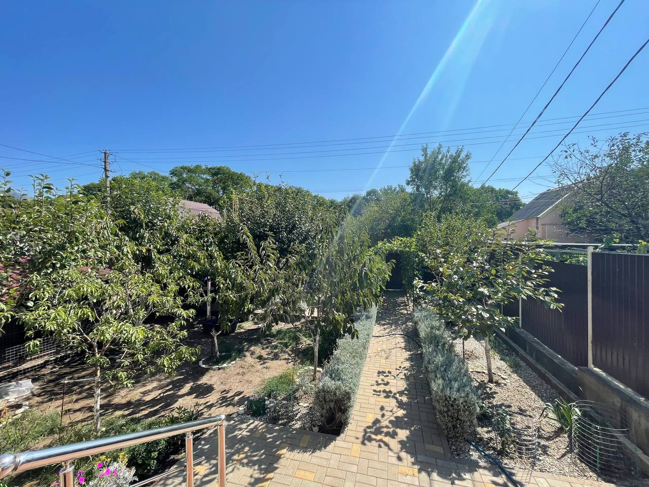 На участке высажены плодовые деревья и виноград, все плодоносит: хурма, инжир, яблони, сливы, черешни, груша, персик и другие южные вкусности.