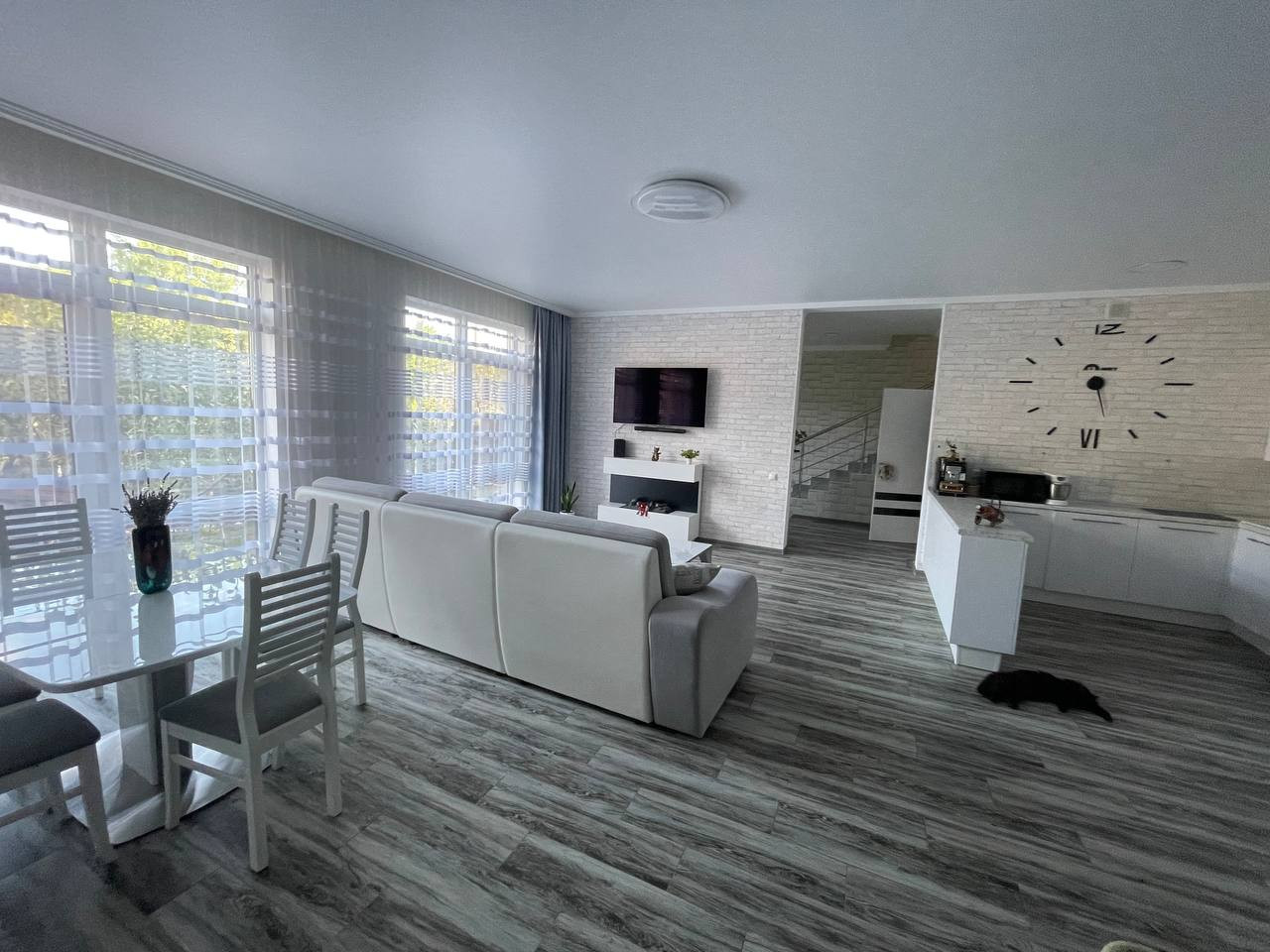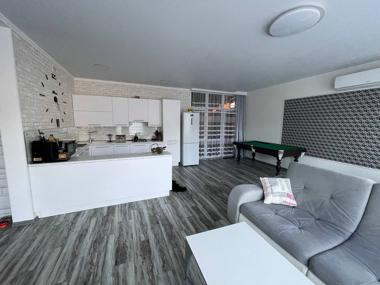 Ремонт в спокойных тонах из качественных материалов. На полу всего 1 этажа и в санузле 2 этажа теплые полы. Электрокамин в гостиной. Сплит системы.