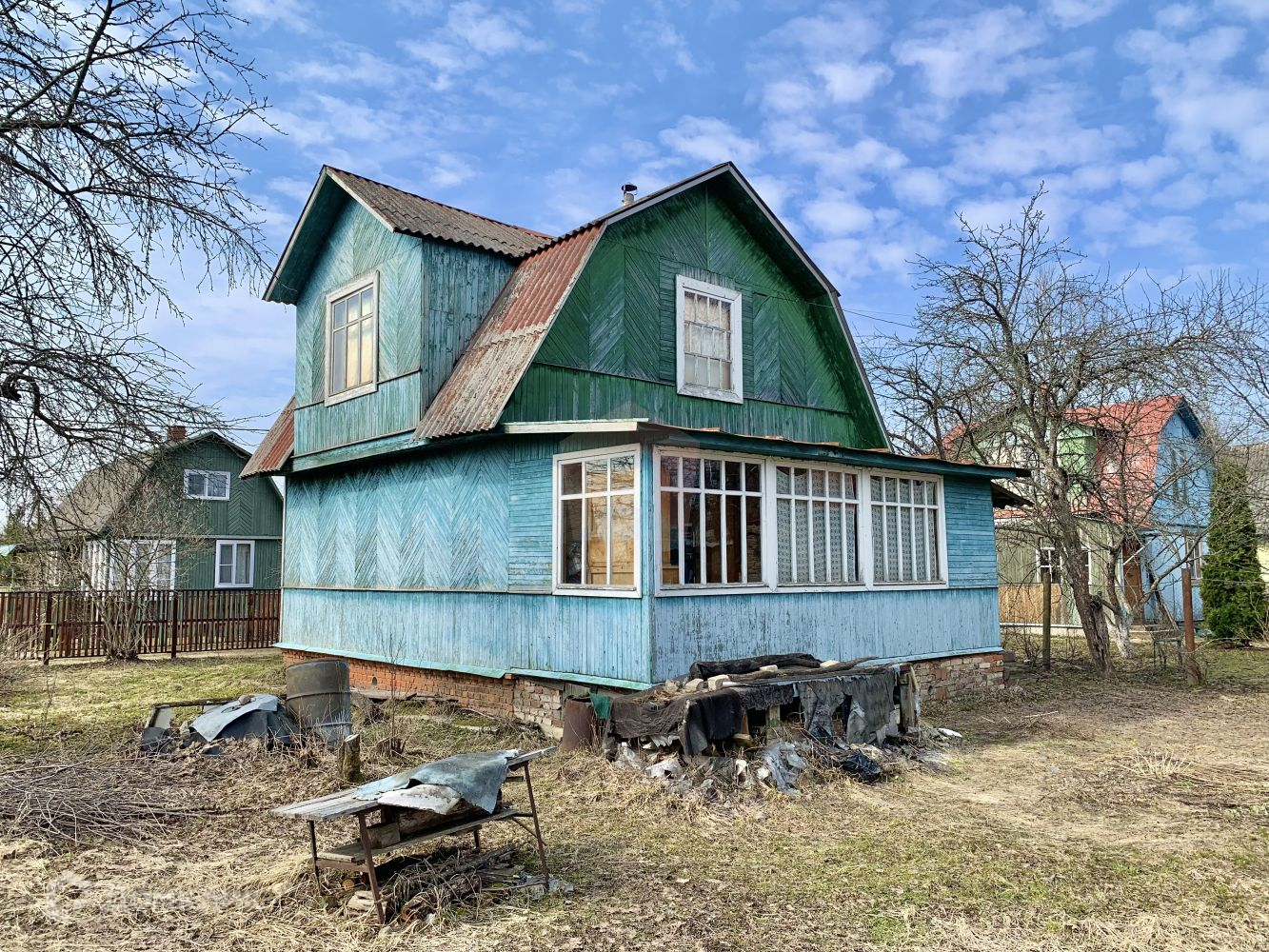 На участке построена летняя кухня 25 м2 ( щитовой дом ) требует небольшого косметического ремонта внутри. Была произведена замена крыши ( ондулин ), проложен новый пол из бруса. Заведено электричество.