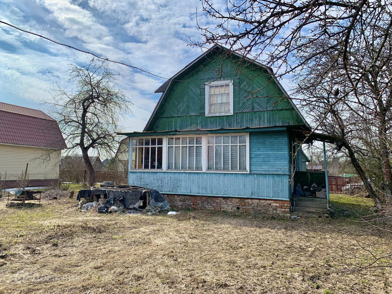 Участок 6 соток. Ровный, правильной формы, без уклона. СУХОЙ! Огорожен забором. На участке сезонный водопровод, можно завести в дом, туалет и летний душ. Растут пионы, яблони, 2 груши, черная и красная смородина.