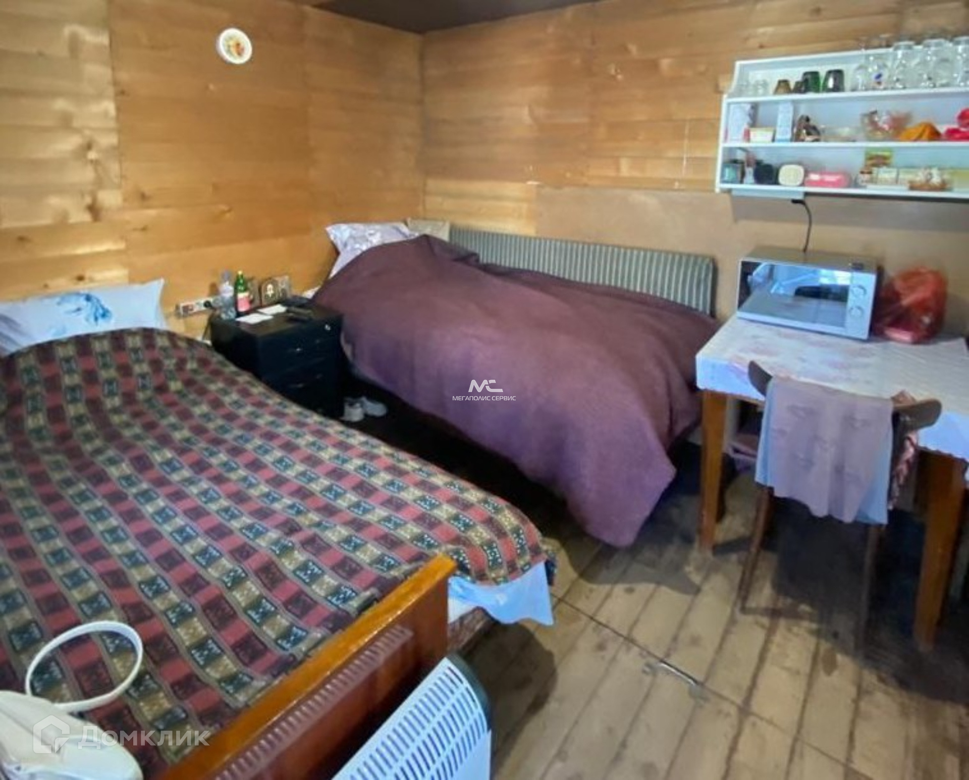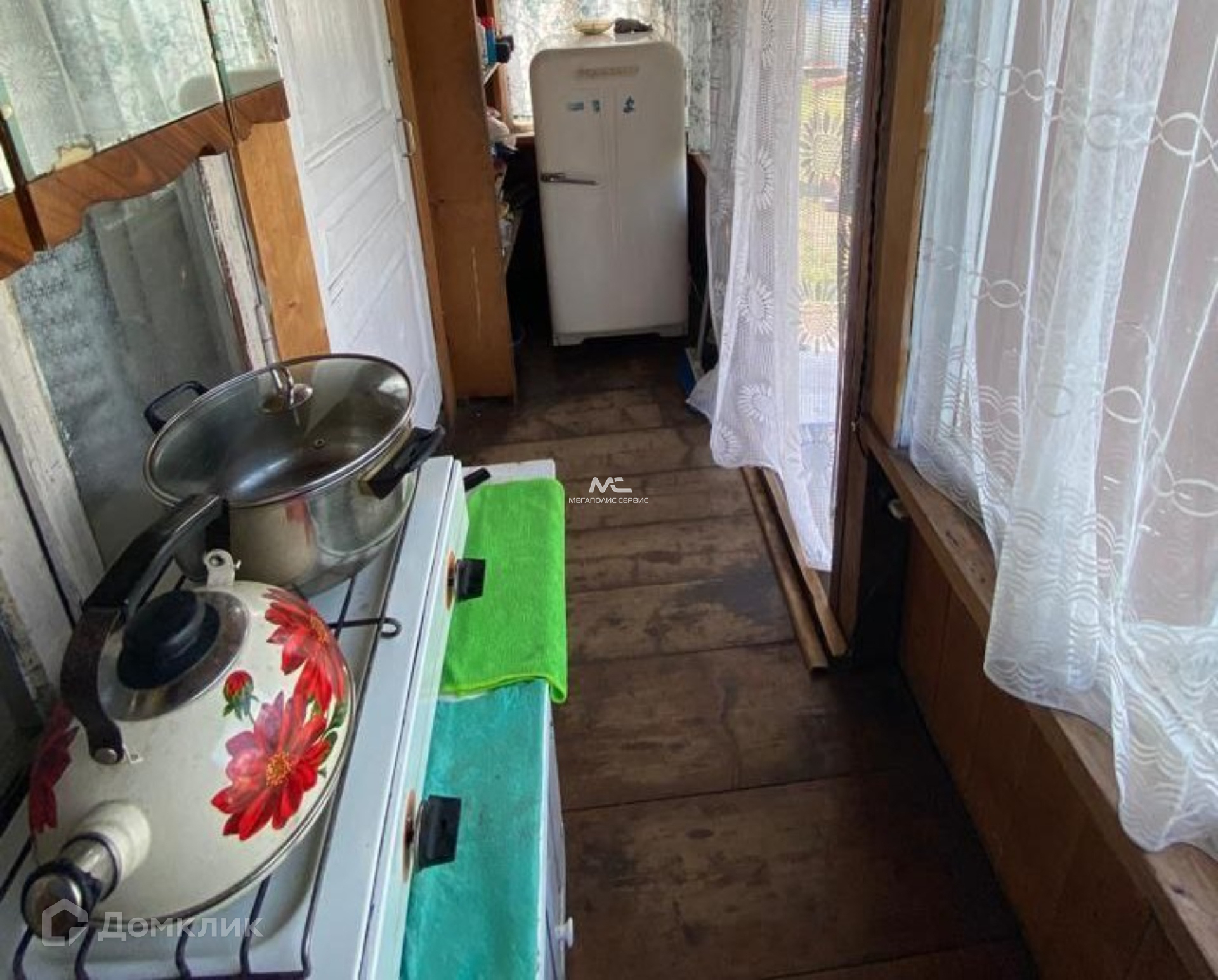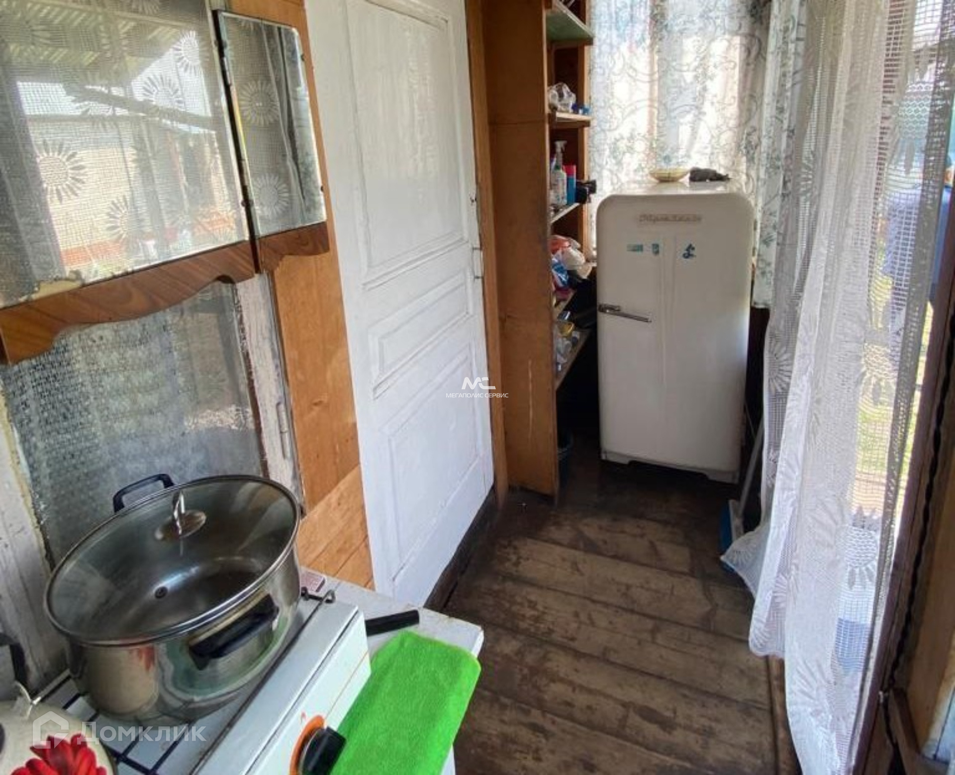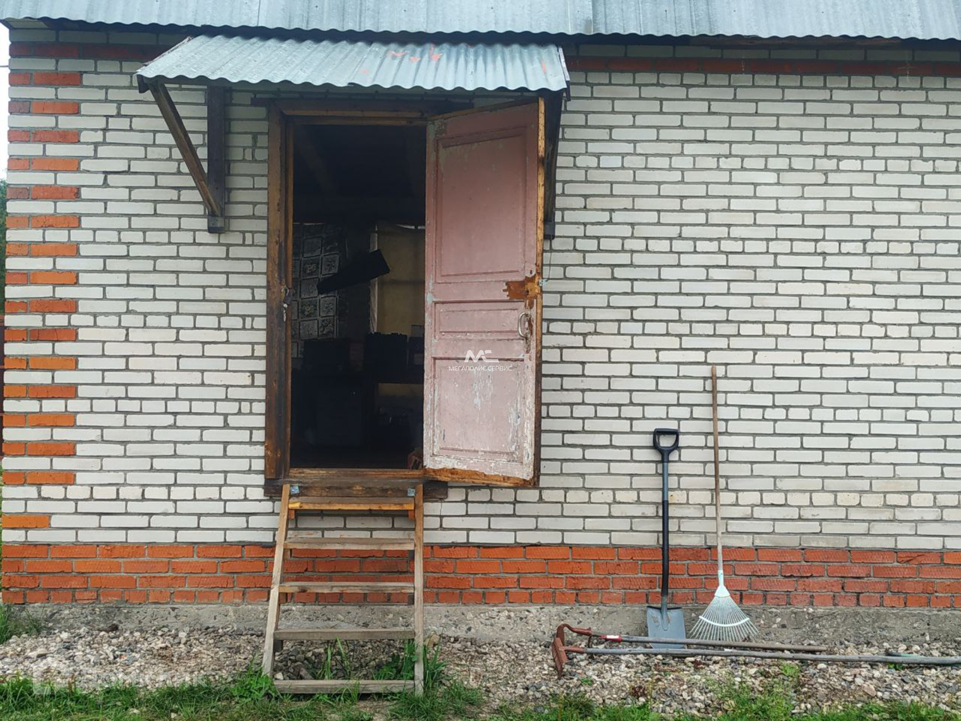 Будущим владельцам остаются строительные материалы. Также на участке расположен щитовой домик с печью и небольшой кухней, в котором можно жить круглый год.