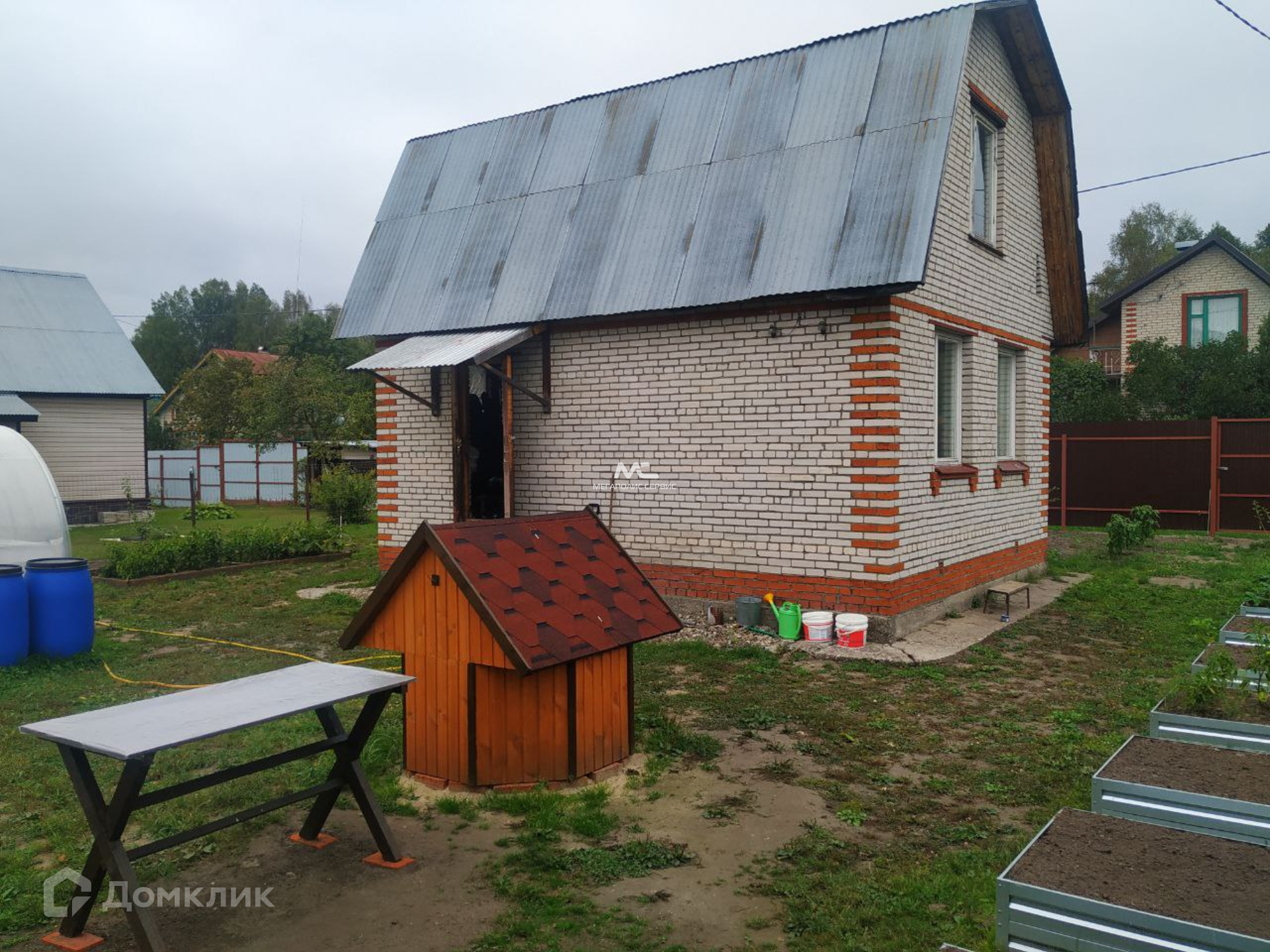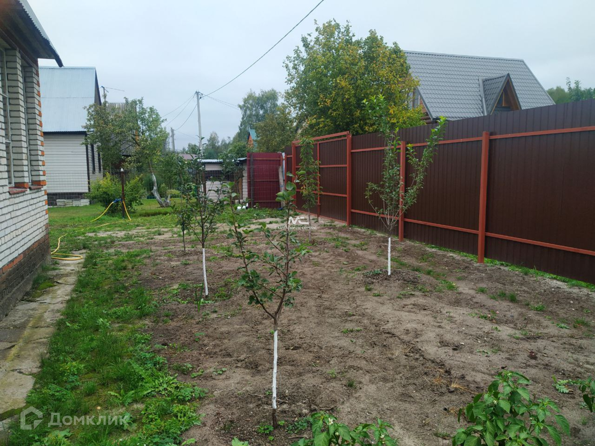 Подведен летний водопровод.  Участок шесть соток размежеван, огорожен, имеется заезд для автомобиля. Перед домом высажен сад: яблони, груши, абрикосовые деревья. Также растет вишня, клубника. В этом году собрали первый урожай винограда. Обустроены декоративные грядки для выращивания овощей и зелени на будущий год. Территория СНТ охраняется, въезд через автоматические ворота.