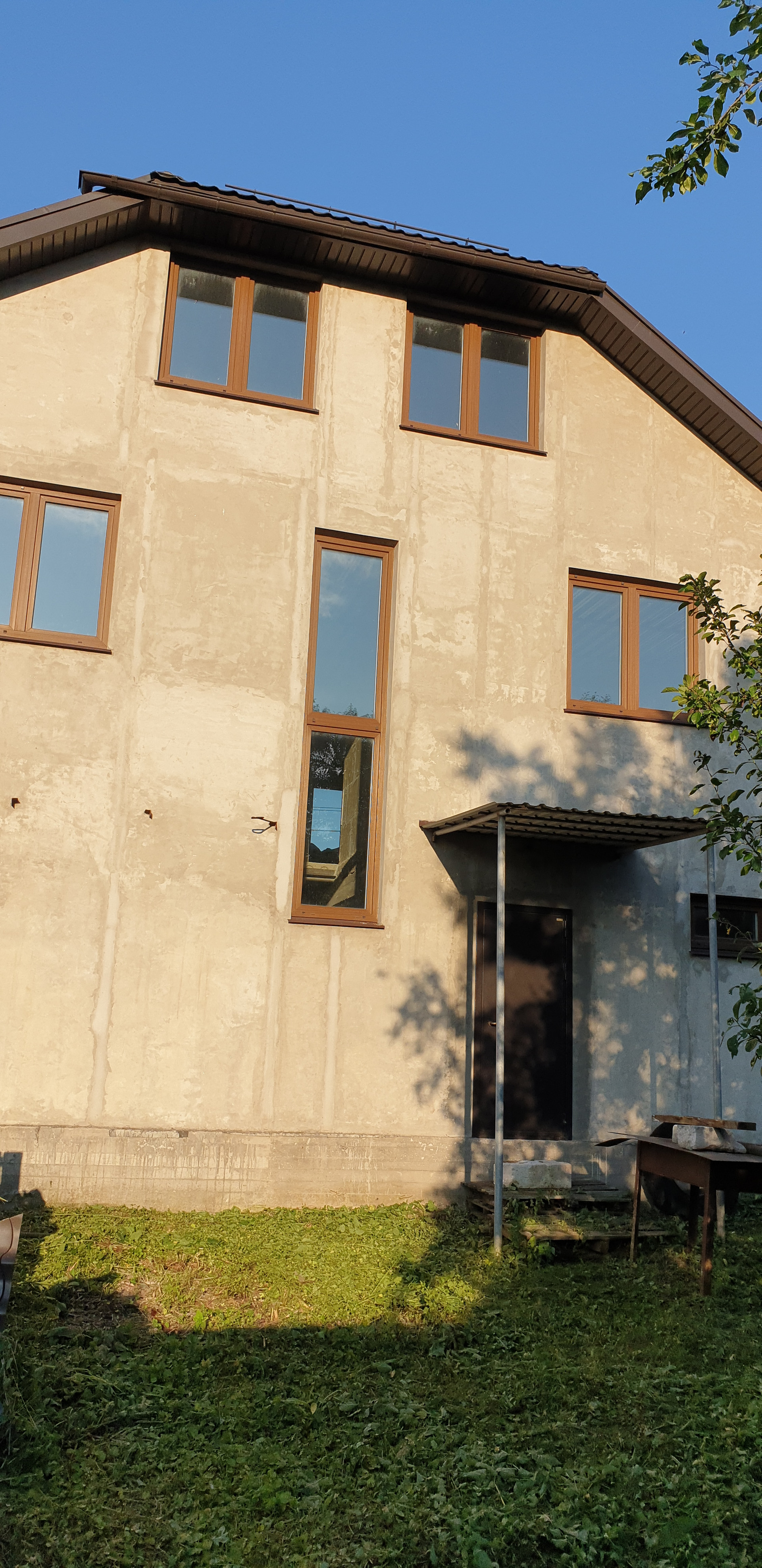 Дом строился для себя, очень качественно, соблюдая все технологии и нормы. Стены выложены из двух газосиликатных блоков, каждый толщиной 25 см, в середине - утеплитель 50 мм. Снаружи стены оштукатурены. Кровля выполнена полностью из металла (стропильные балки, обрешетка). Покрытие - оригинальная финская металлочерепица RUUKKI. Утепление мансарды выполнено. Окна немецкий профиль SCHUCO 70 с наружной ламинацией.