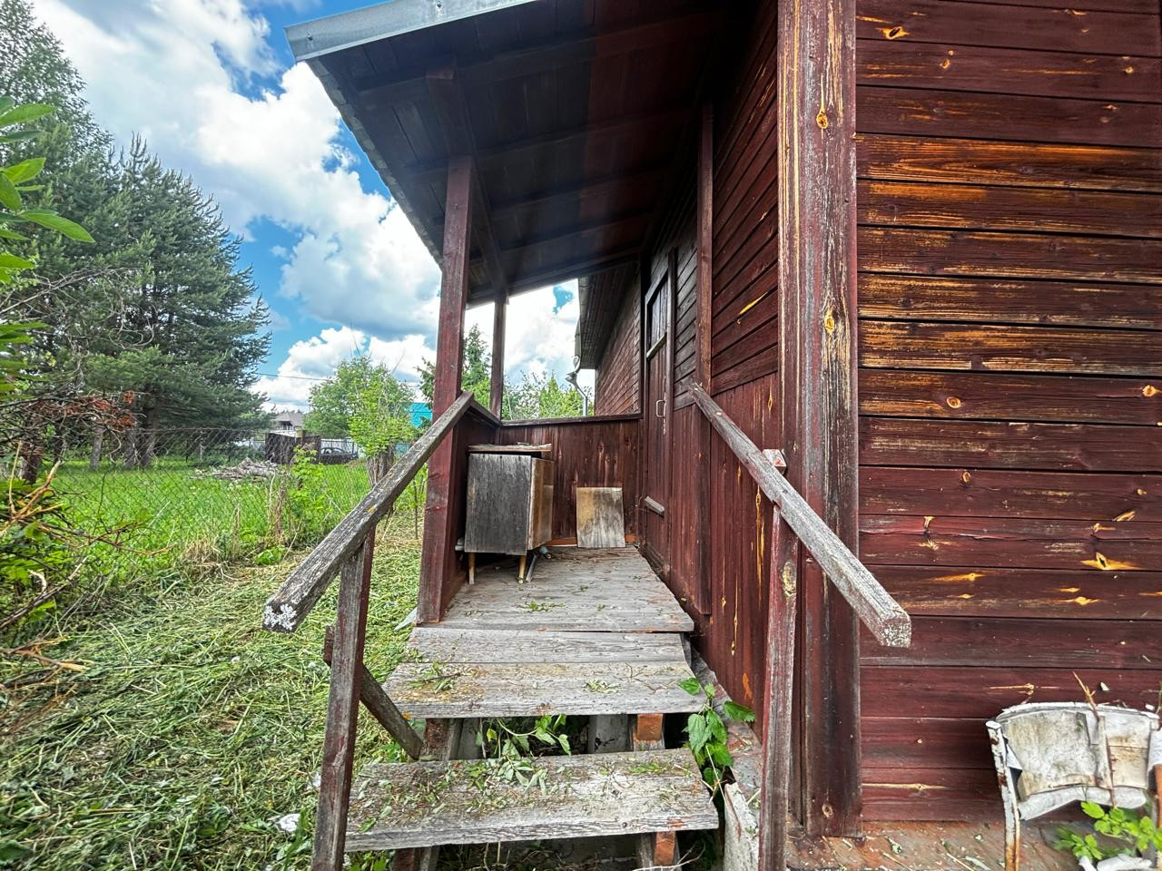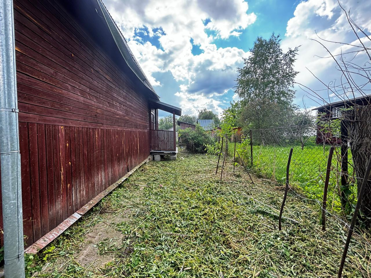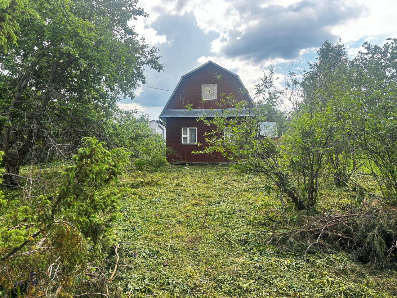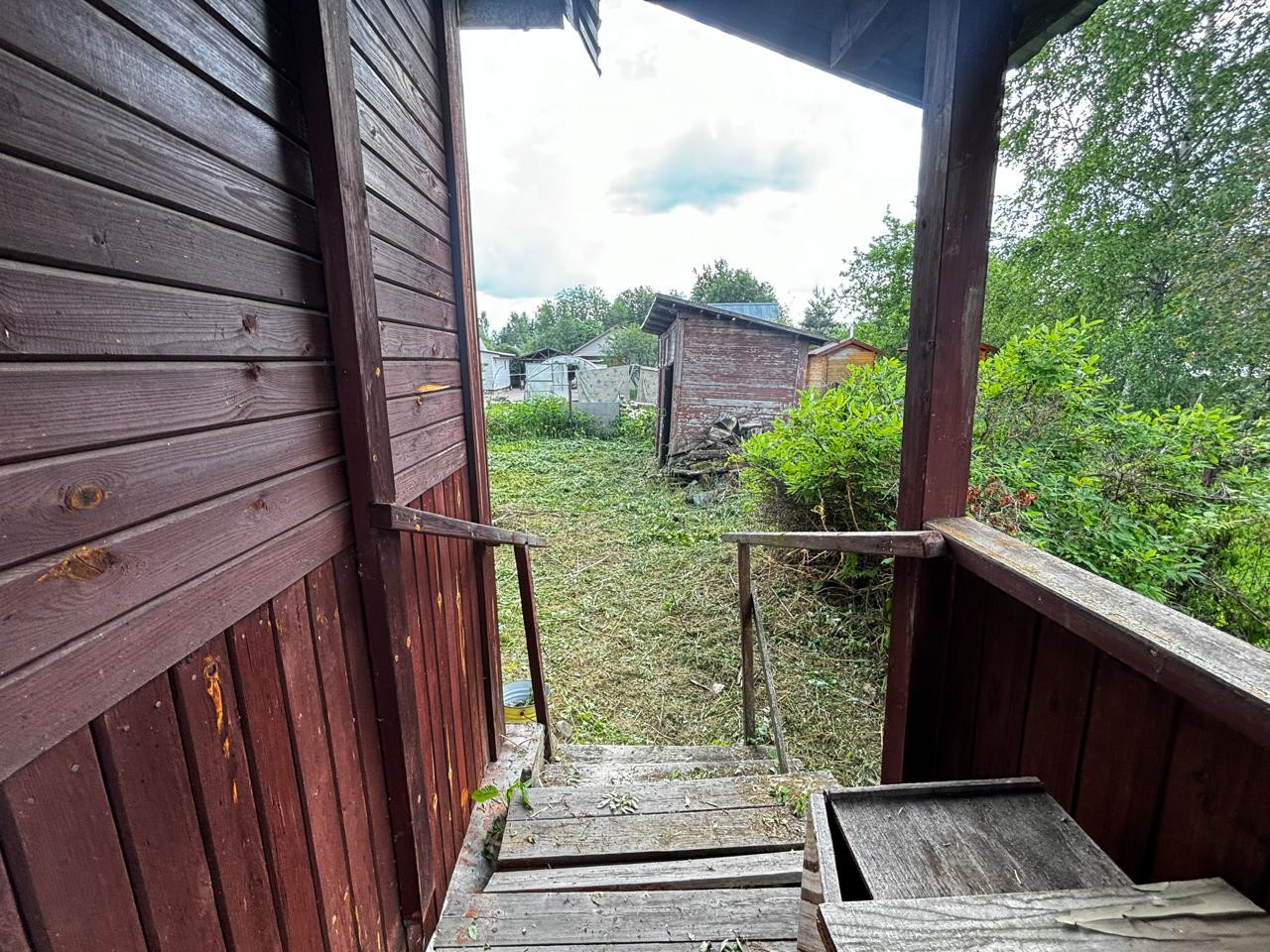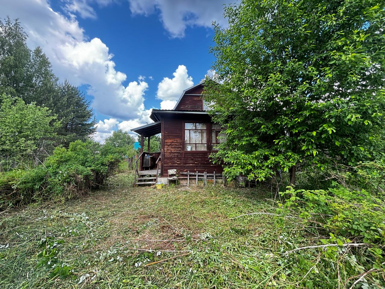 Участок 10 сот, ровный, прямоугольной формы. На участке стоит дом, хозблок из 3 отсеков (дровник, душ, с/у), имеются плодовые деревья и кустарники.