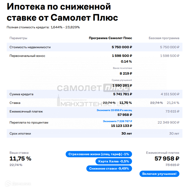 Арт. 75580640 Данный объект можно купить по субсидированной процентной ставке от 11,75%, что существенно снизит ежемесячный платеж по ипотеке!!! Расчет прилагается на последнем фото.