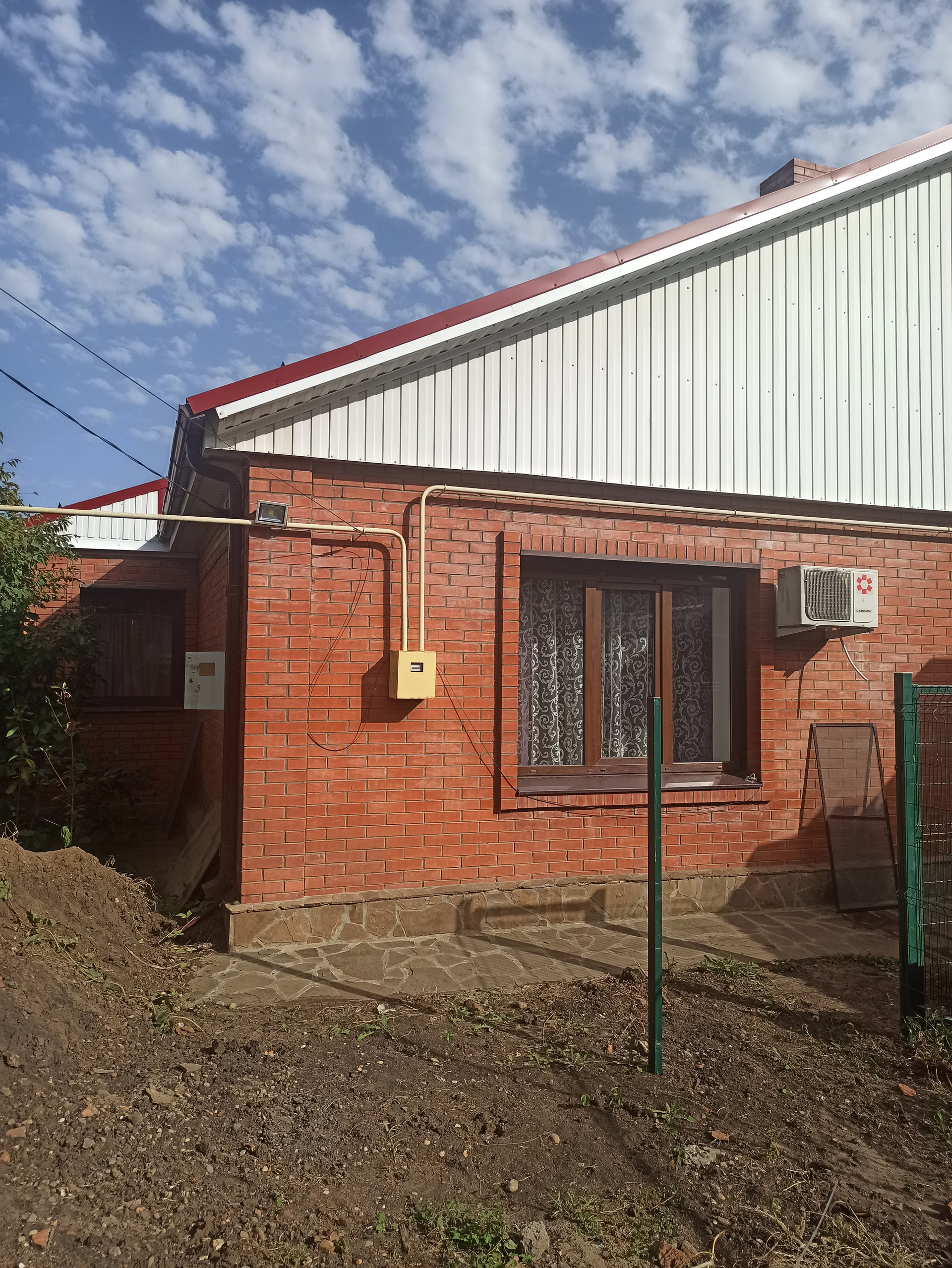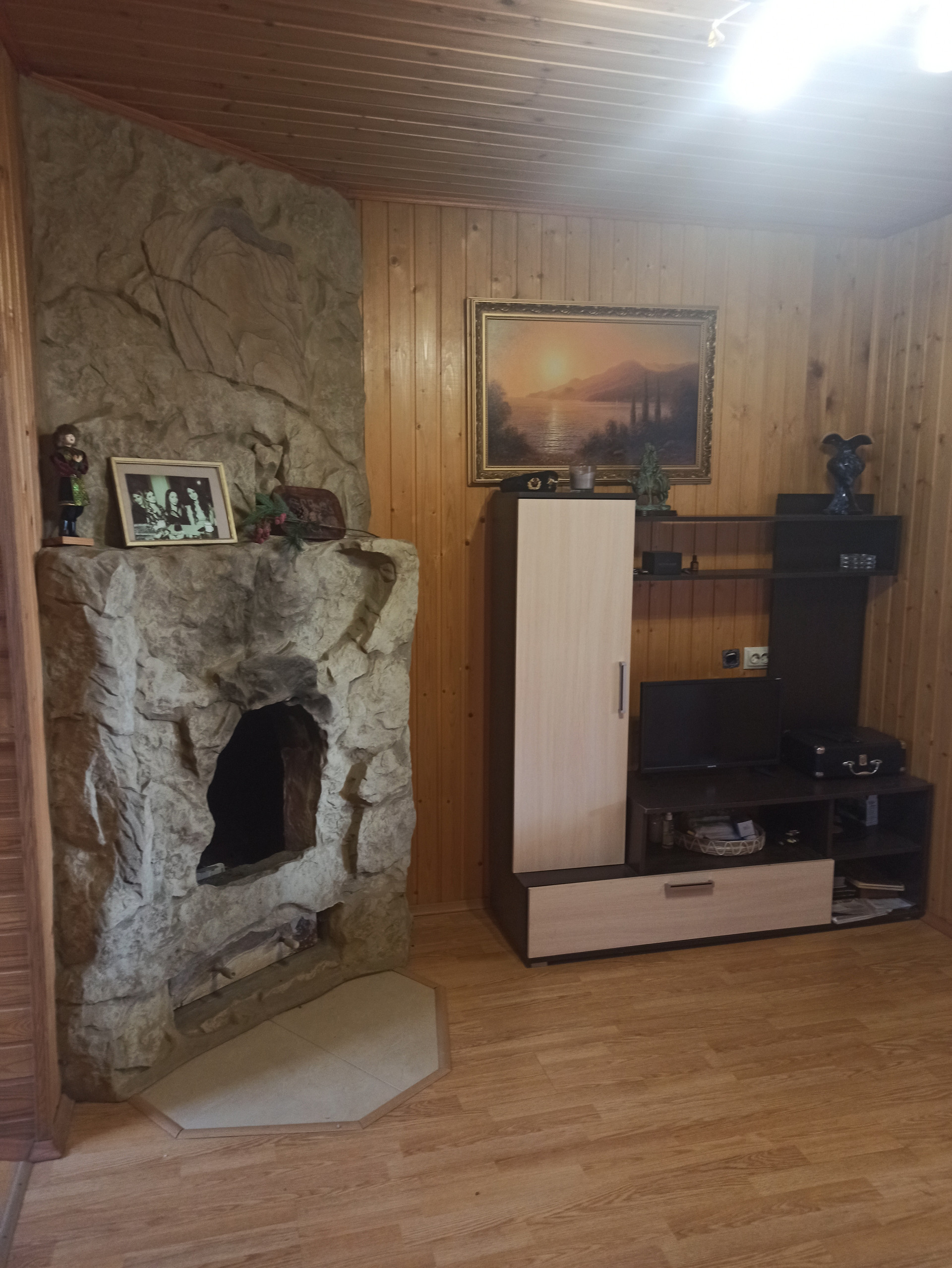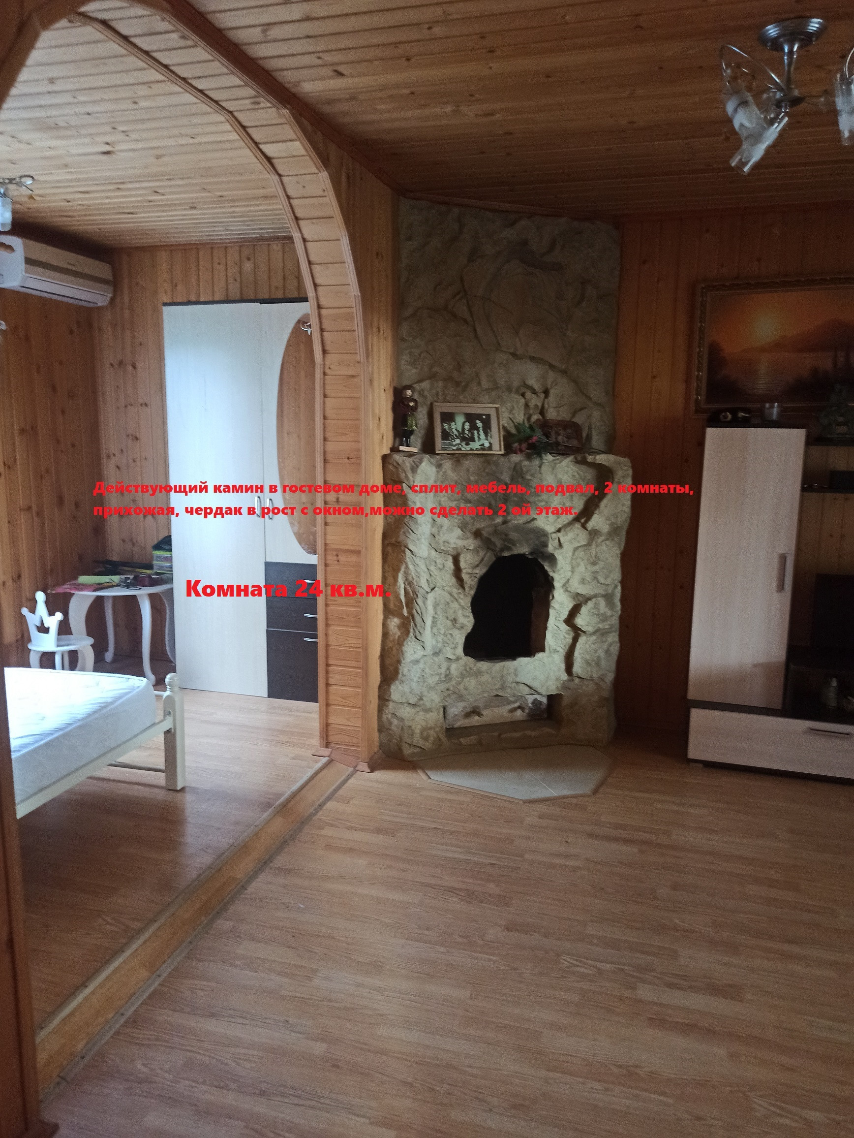 2- Гостевой дом 41 кв.м. с камином и сплитом, состоит из комнаты 12 кв.м., комната 24 кв., прихожая 5 кв.м., подвалом 41 кв.м. и чердак с окном в рост, так же для 2го этажа, терраса 30 кв.м.