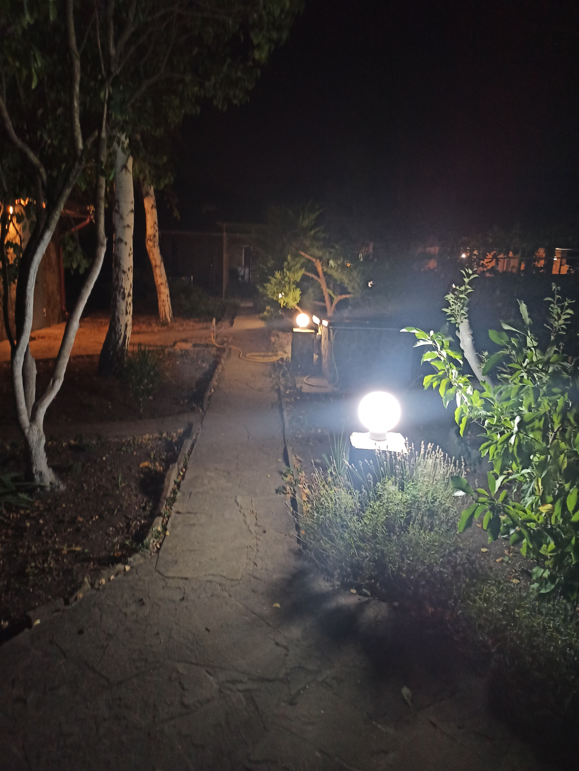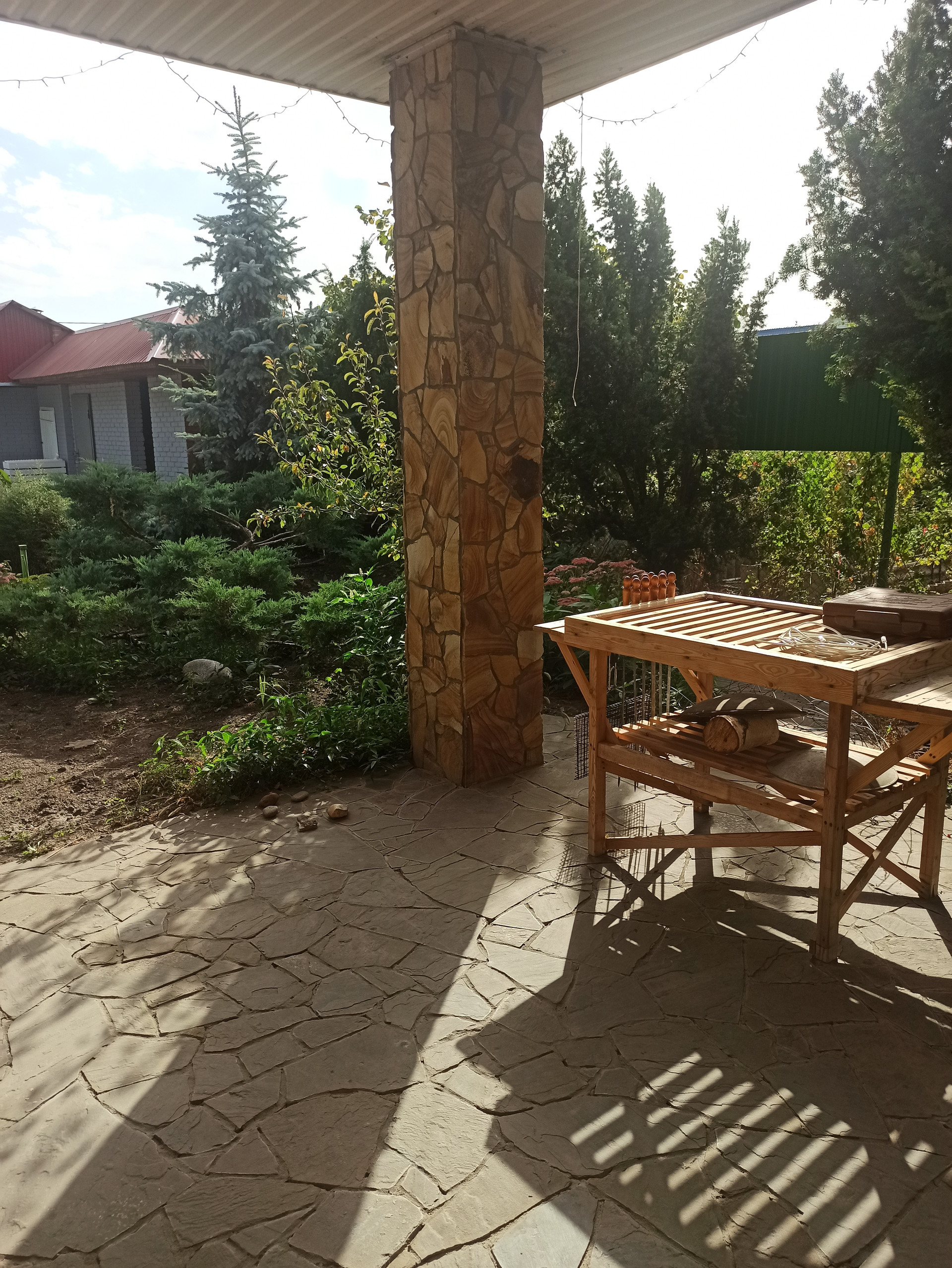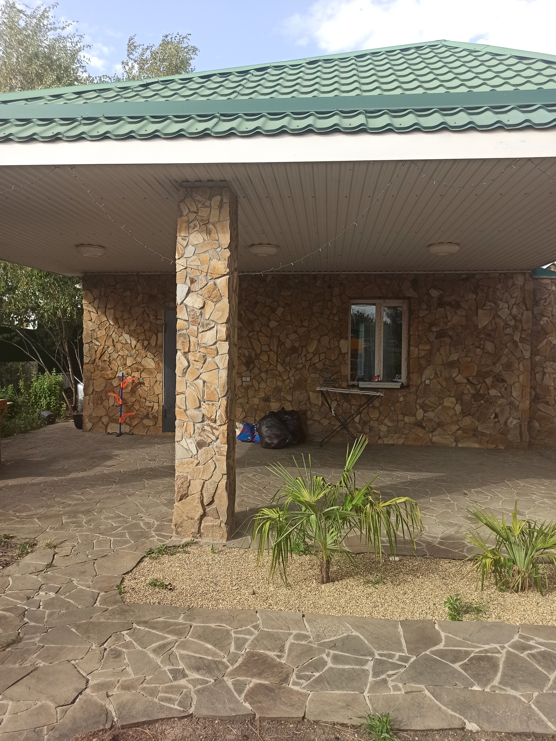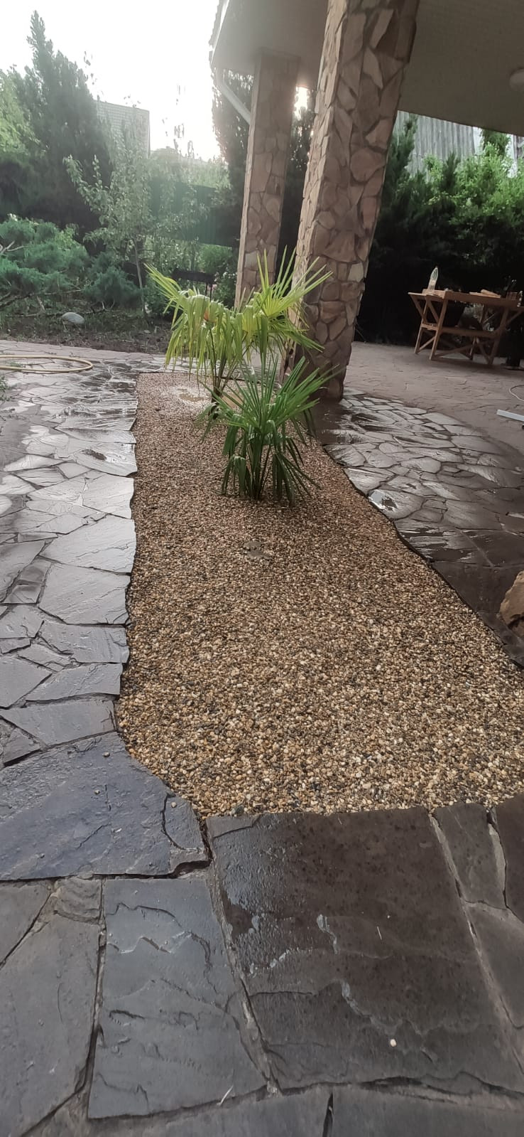 Все дорожки выложены диким камнем.