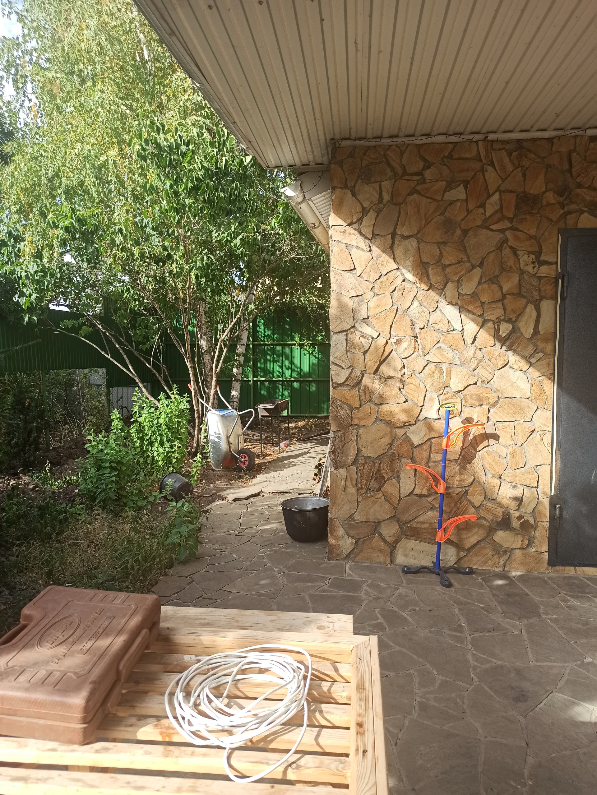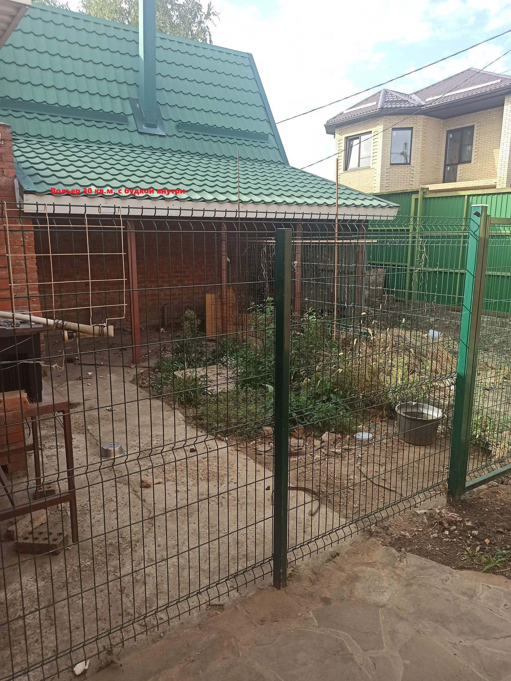 Вольер для собаки 30 кв.м. с огромной будкой. Очень много места под огород за домом ( земля завезена хорошая).