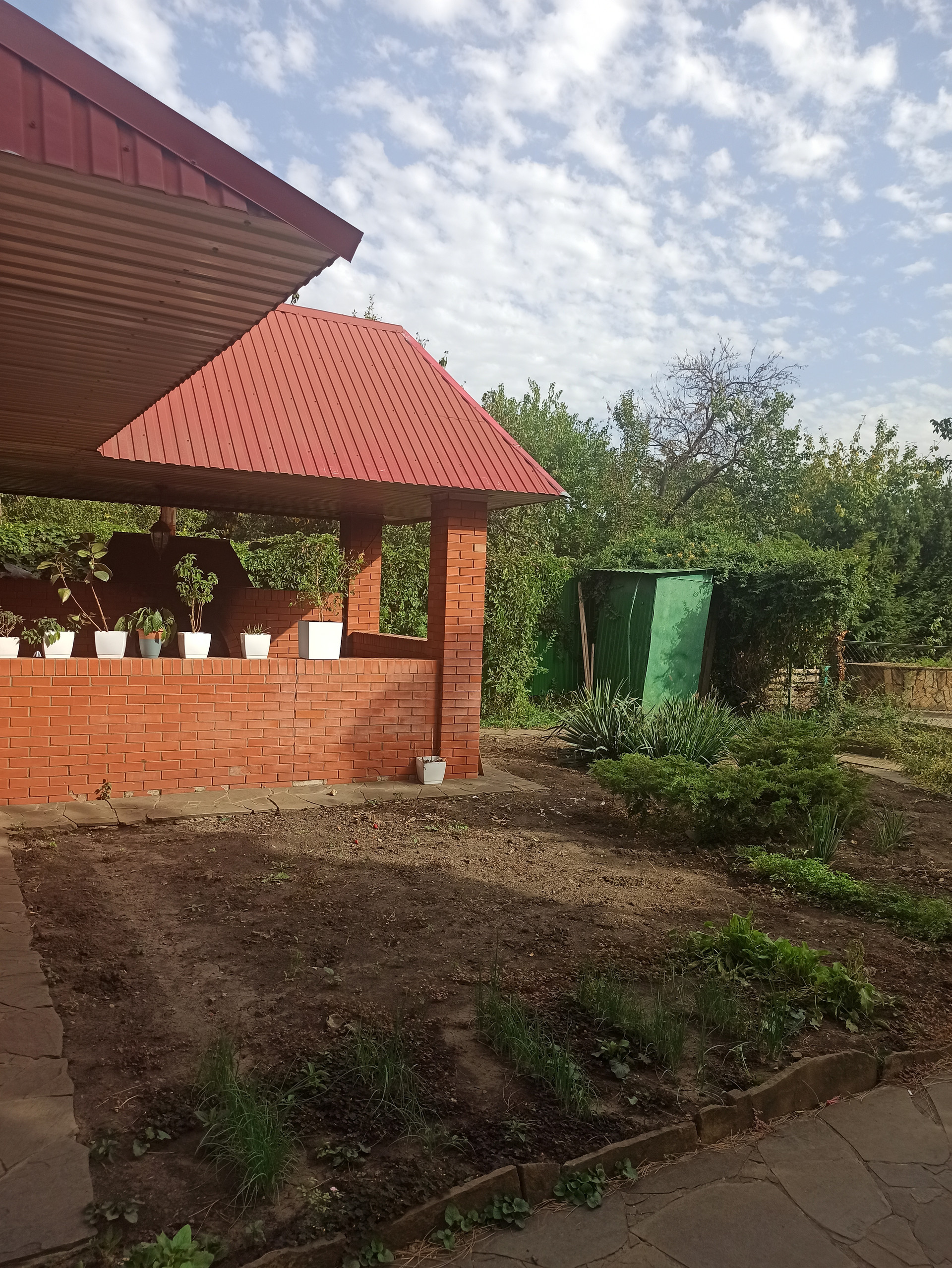 Уличный туалет, место под летний душ в плитке со сливом готово.