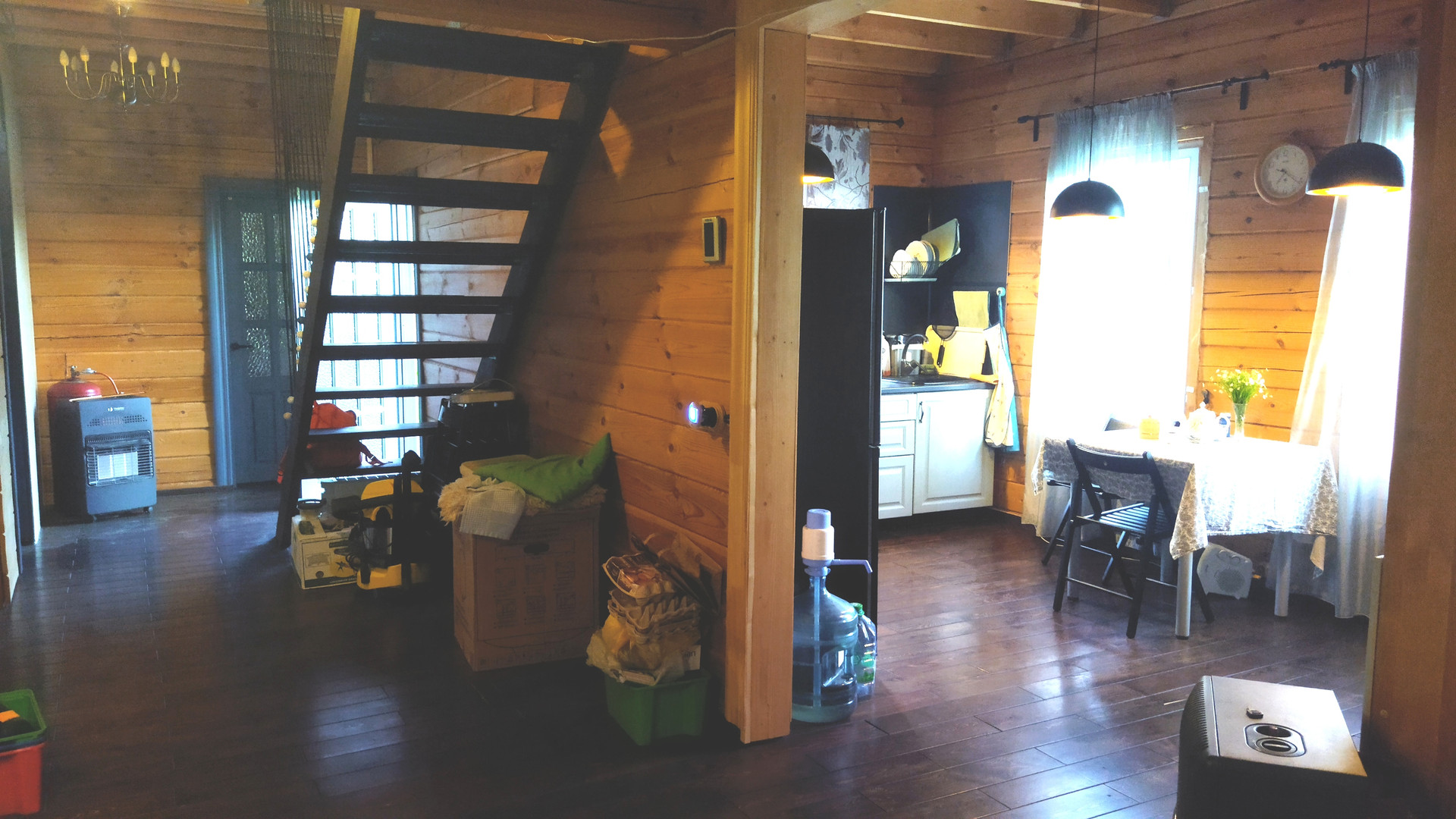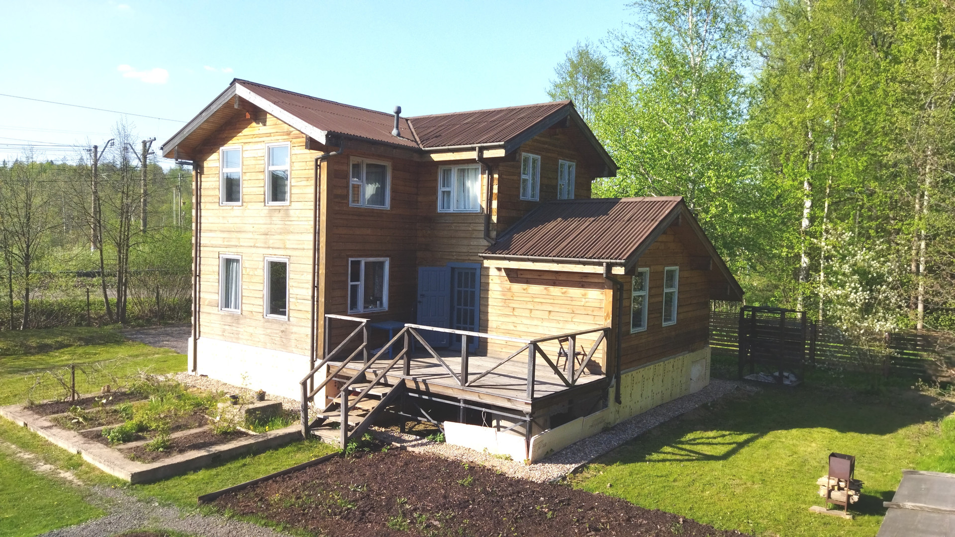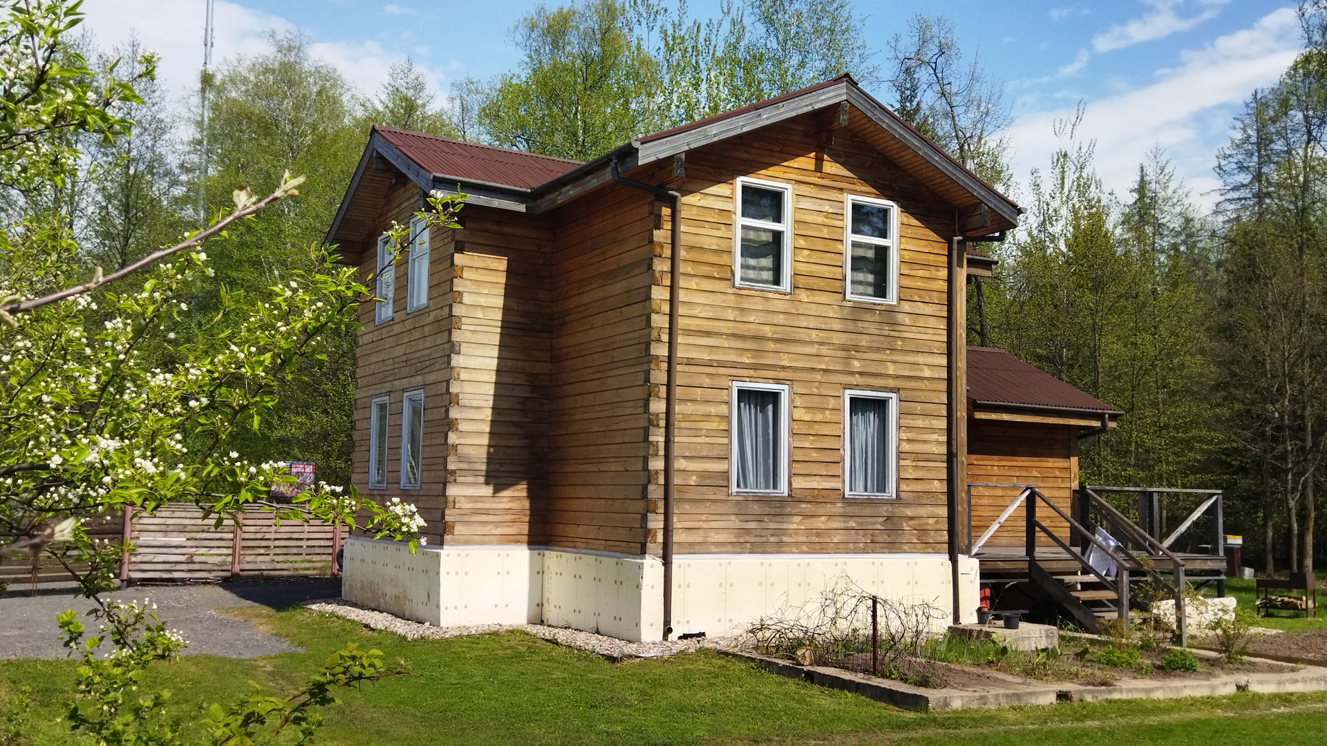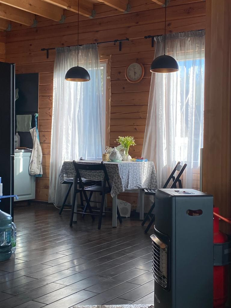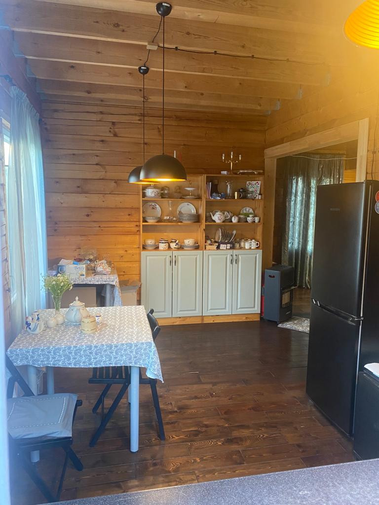 Дом – двухэтажный, 2016 г постройки. Высота этажа 2,8 м. Площадь с террасой – 146,9 м2. Стены – профилированный брус 150х200. Фундамент – свайный, формирует цокольный технический этаж высотой 1,0 м. Крыша – ондулин, утепление 200мм. Окна – деревянные. Пол 1 этажа – доска лиственницы по балкам 200 мм с утеплением, 2 этажа – ламинат по балкам 200 мм. Планировка: 1 этаж – Прихожая, гостиная, кухня-столовая, спальня, санузел, коридор с выходом на террасу, котельная с отдельным входом; 2 этаж – холл, 2 изолированные комнаты, санузел. Водоснабжение – автономное, напорное (насос, гидроаккумулятор 50 л.) от колодца 5 колец. Горячее водоснабжение – от бойлера 110 литров с электрическим тэном 2 кВт. Канализация – автономная, станция ТОПАС-8. Электричество – трехфазное, 15 кВт. Отопление – электрическое. Интернет – оптоволокно.