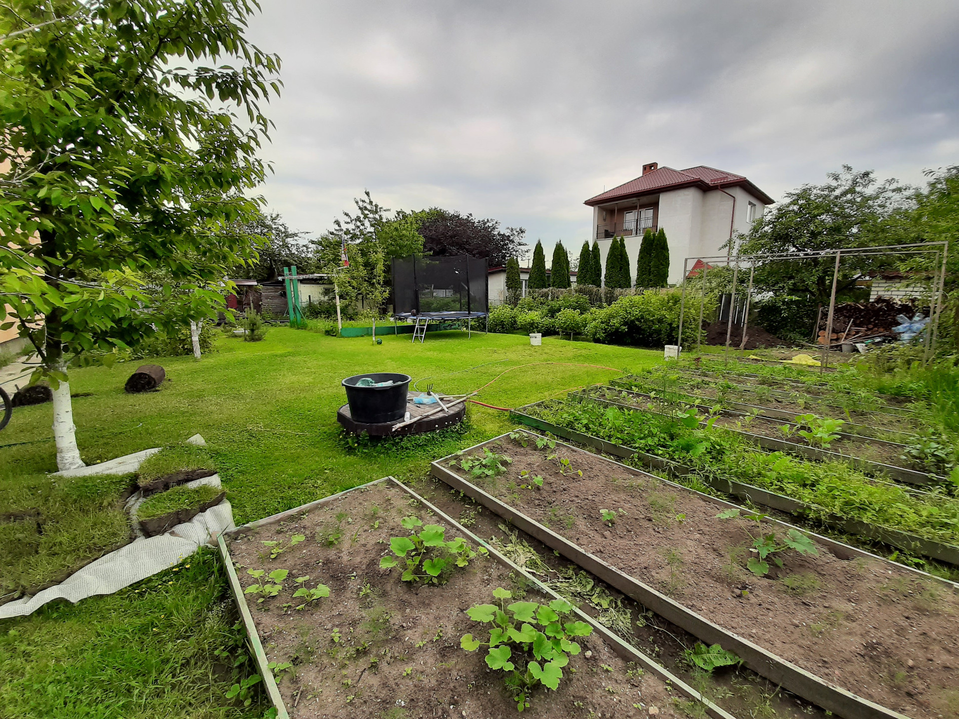 Земельный участок ухожен,  газон, растет очень много кустов смородины ( красная, черная, белая), крыжовник, малина, черешня, яблони, сливы. Также на участке уже есть место под баню. Летом набирают бассейн. А какой чистый воздух здесь! Одним словом Красота!!! Все соседи. порядочные. и дружные.