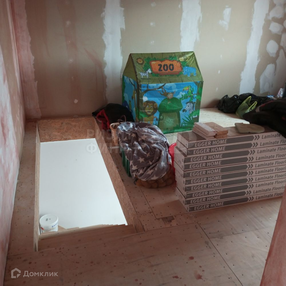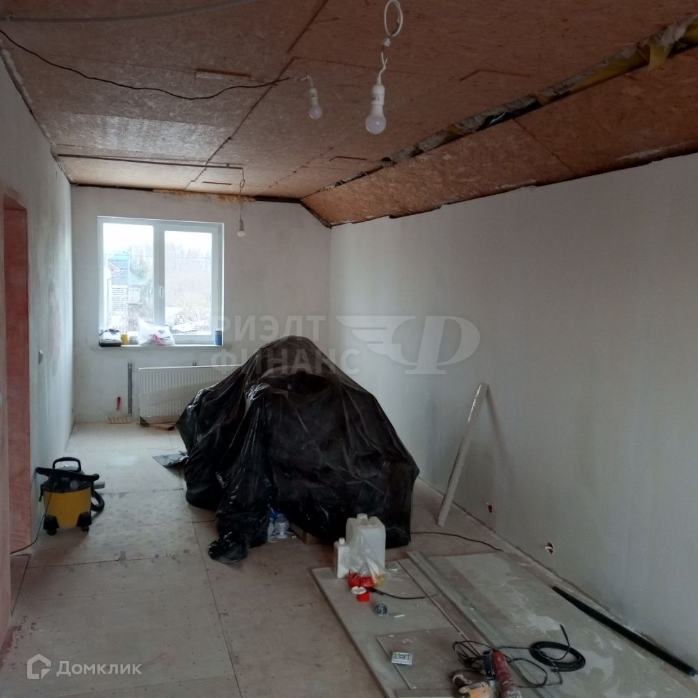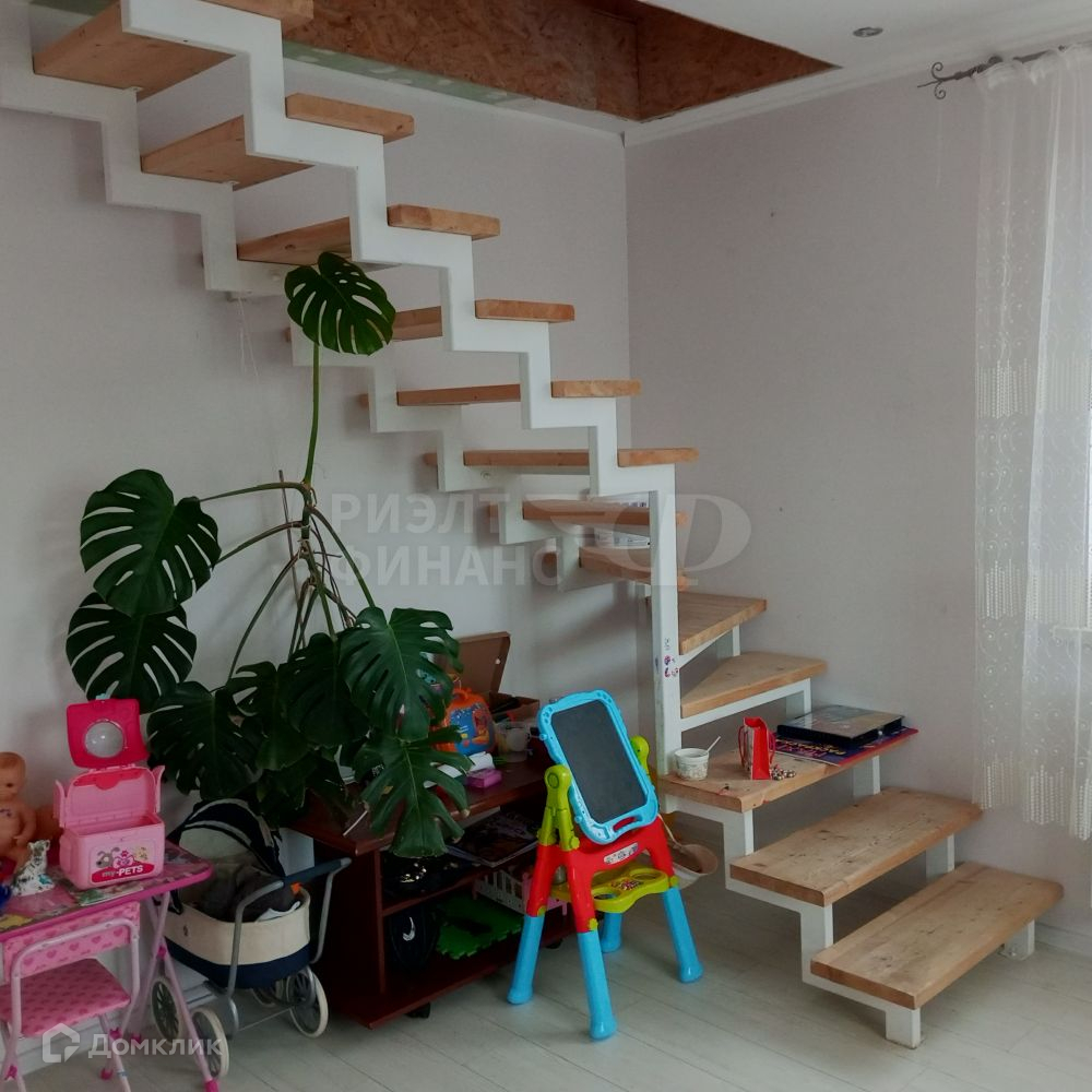 Металлическая лестница на второй этаж с массивными сосновыми ступенями. На втором этаже три помещения: 18,9, 15,8 и 27,3 кв.м. Стены оштукатурены, потолок требует доработки.