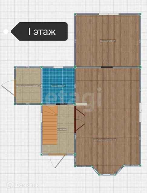 прихожая с лестницей на II этаж, санузел, гостиная (при необходимости можно выделить отдельную комнату), кухня